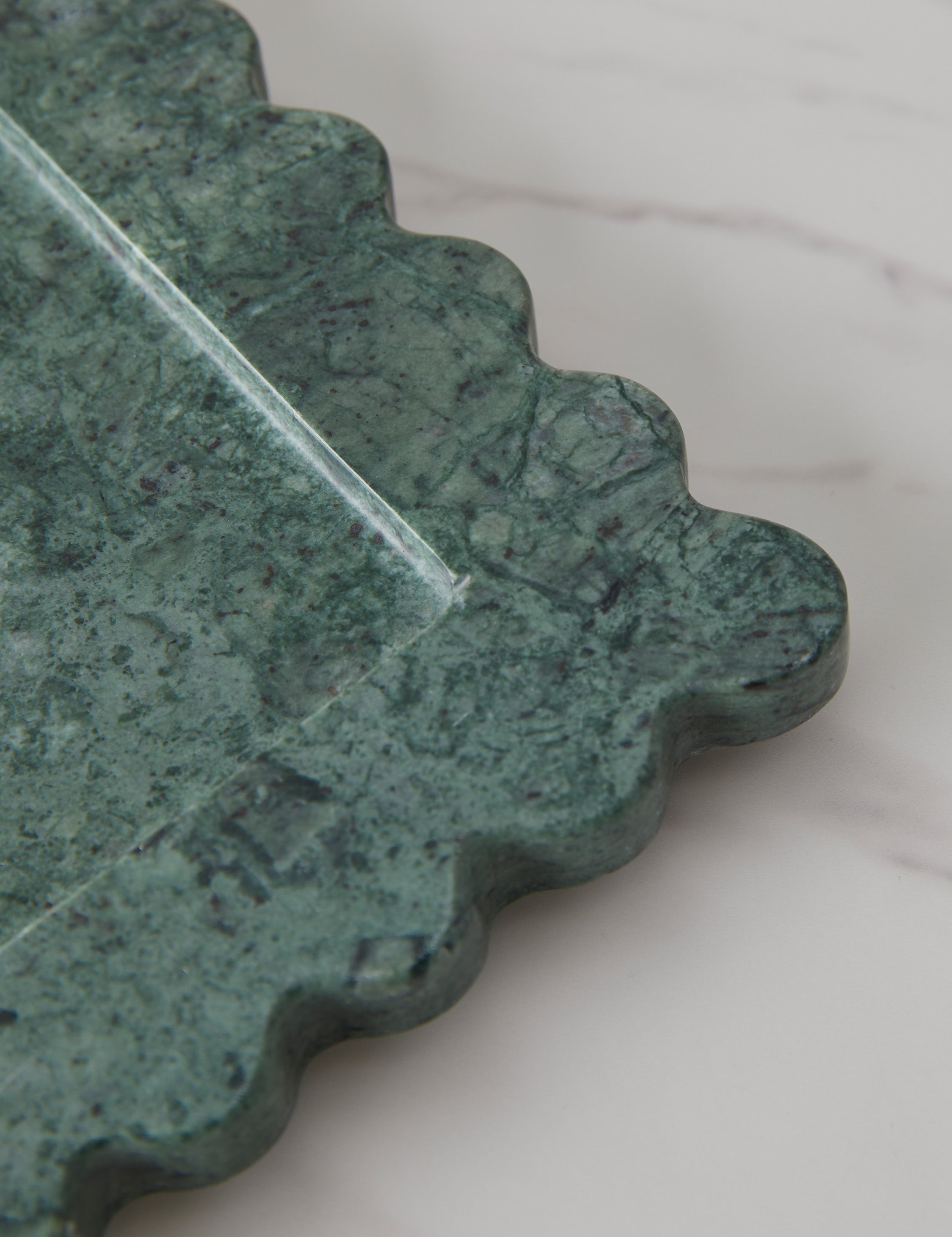 Anastasio Home works with craftspeople around the world to bring limited-run accessories and upcycled luxury goods to your home. The 810 tray adds a functional touch and sculptural appeal to any tablescape or counter. The scalloped form is cut from a single piece of stone and hand-finished in a stone atelier in Rajasthan, India. This heirloom-quality piece shows the unique marks and imperfections of the artisan's process.