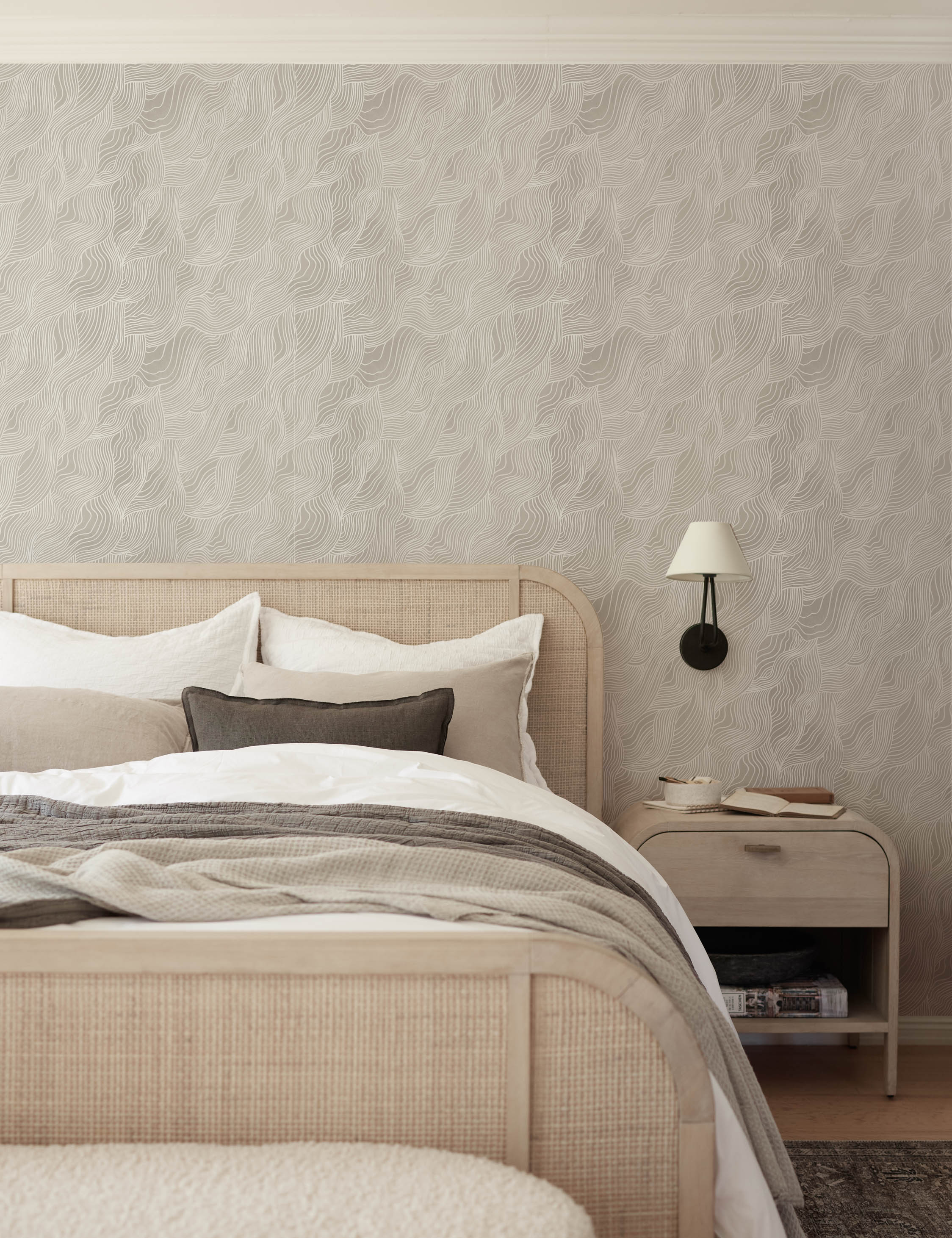 Stylish, abstract waves soothingly ripple to create this geometric Alina Wallpaper. The intricate line work elegantly combines with its neutral color palette to make for a standout, versatile print. Whether styled in a bedroom, home office, or powder bath, we love this home wallpaper for adding polish to your space..