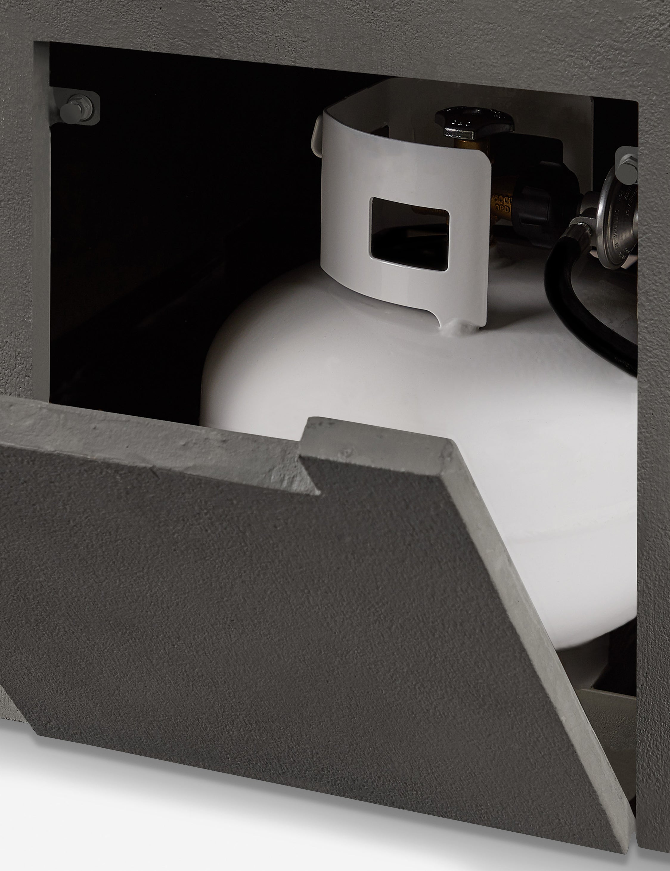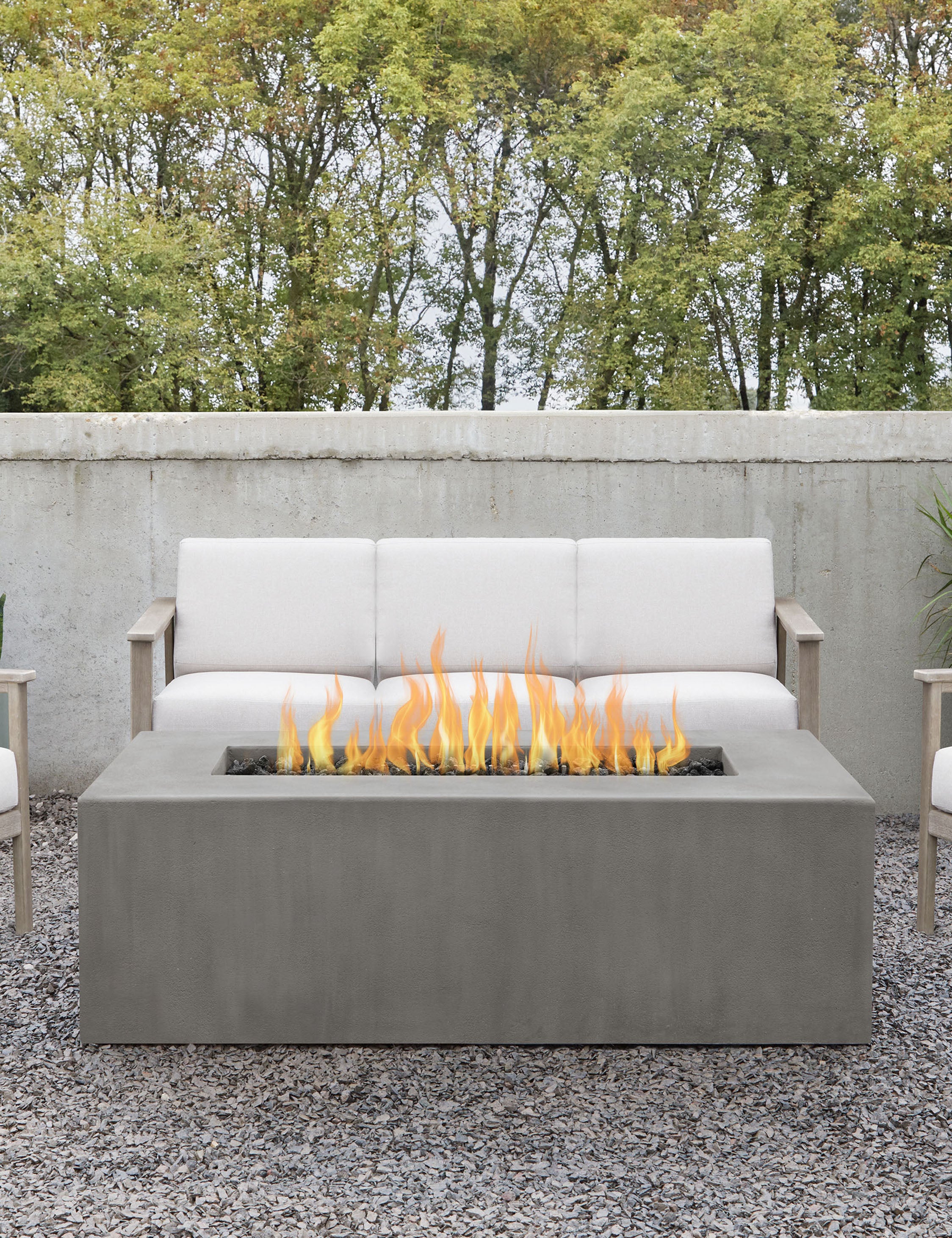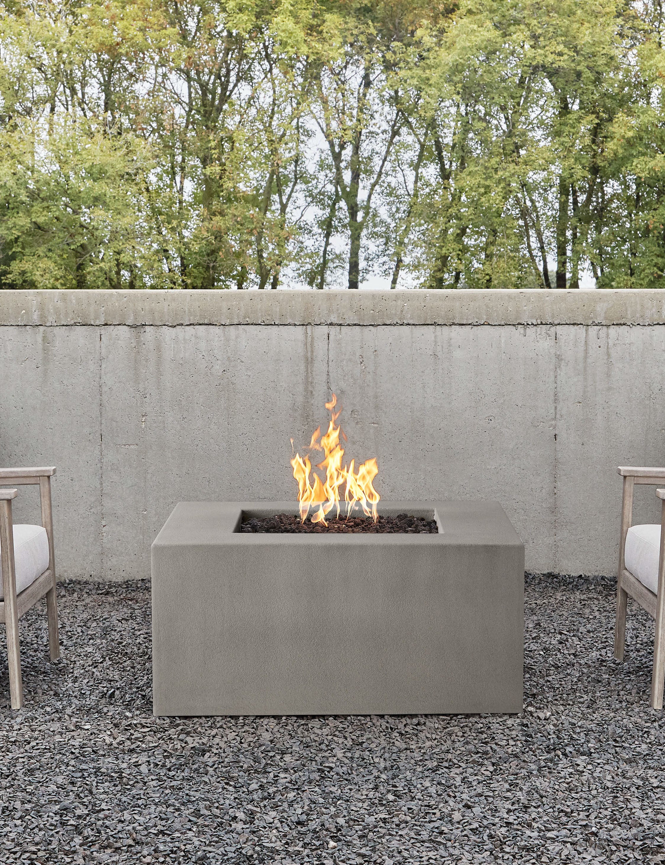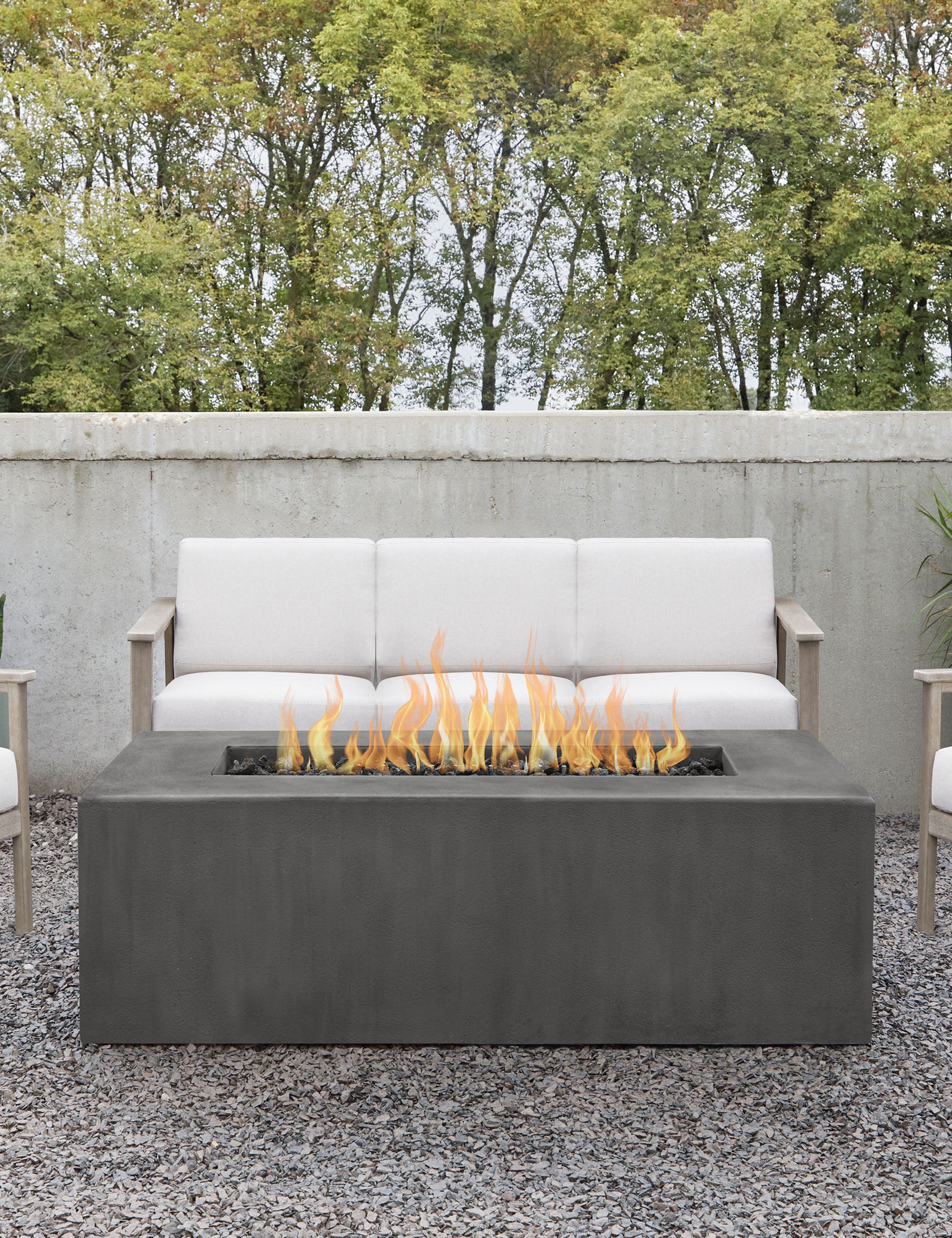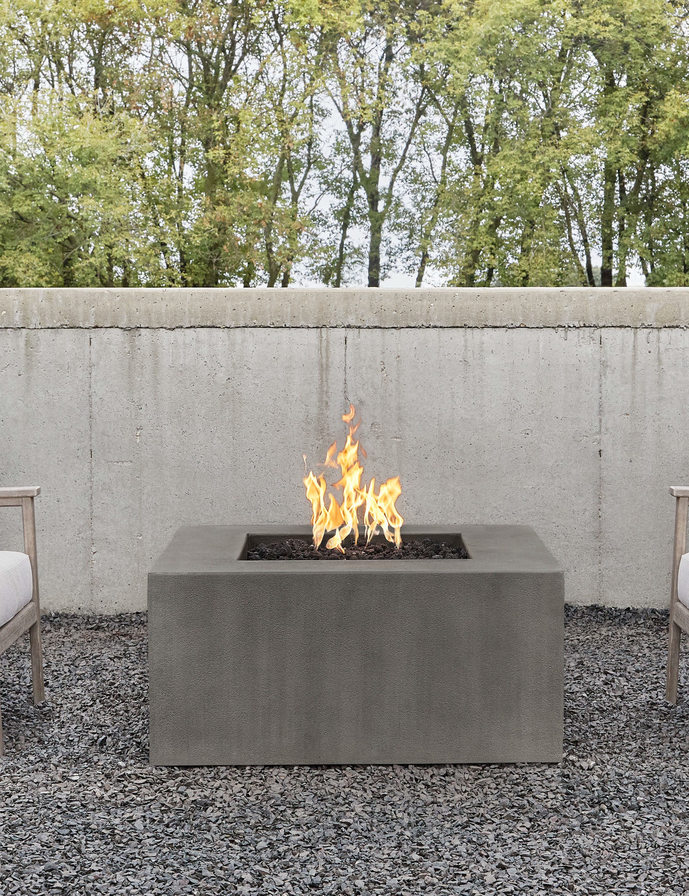 Bring a stylish edge to your outdoor space with the clean lines and monolithic appeal of the Auberon fire table. The strong and even flames offer the perfect focal point for warm hospitality and quiet nights alone. Each fire bowl pit is fashioned with glass fiber reinforced concrete and fitted with an efficient burner system to offer seamless functionality in a lasting design.