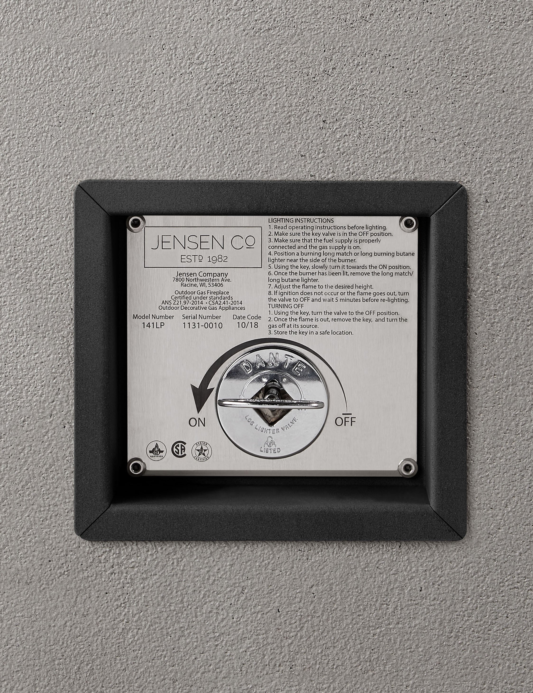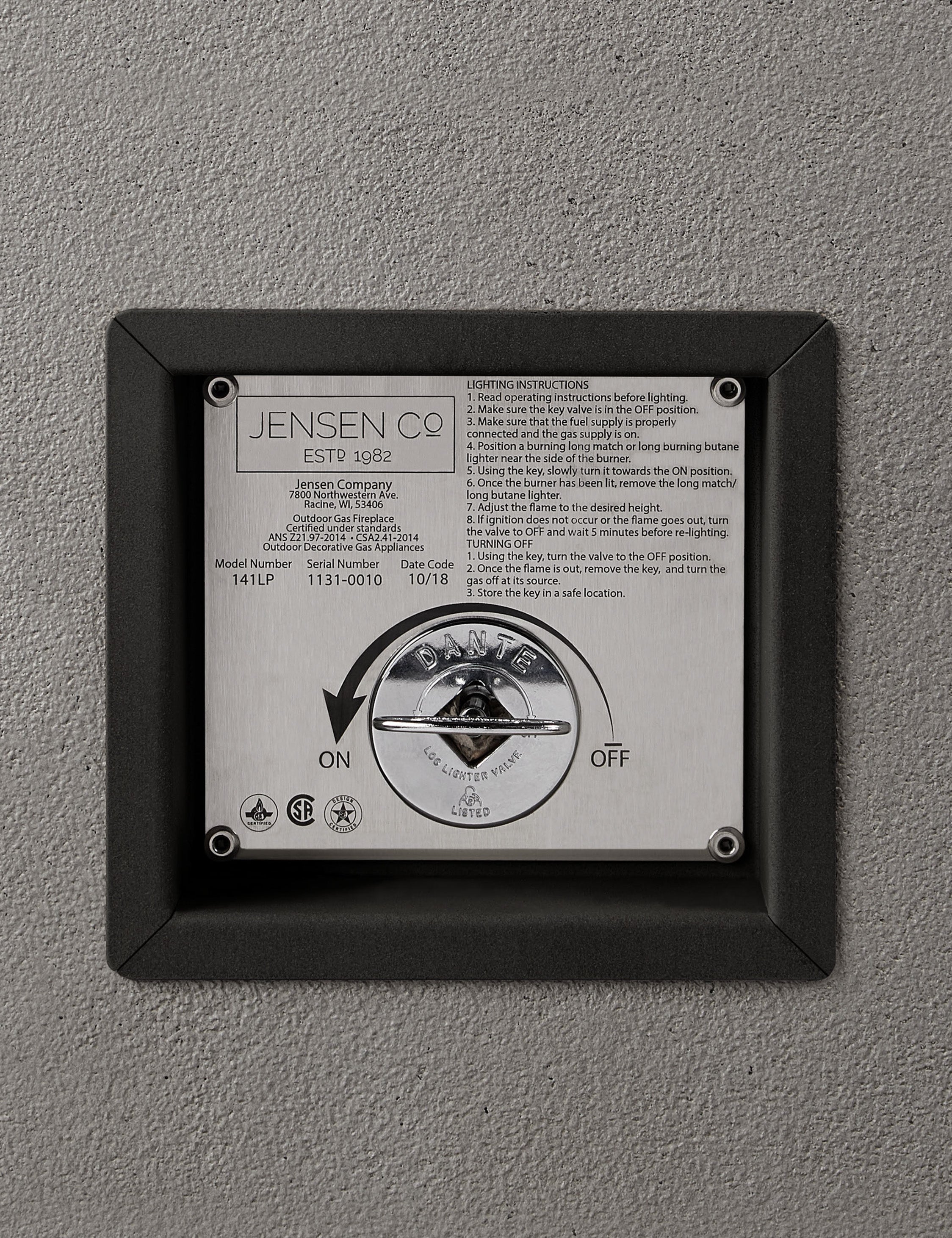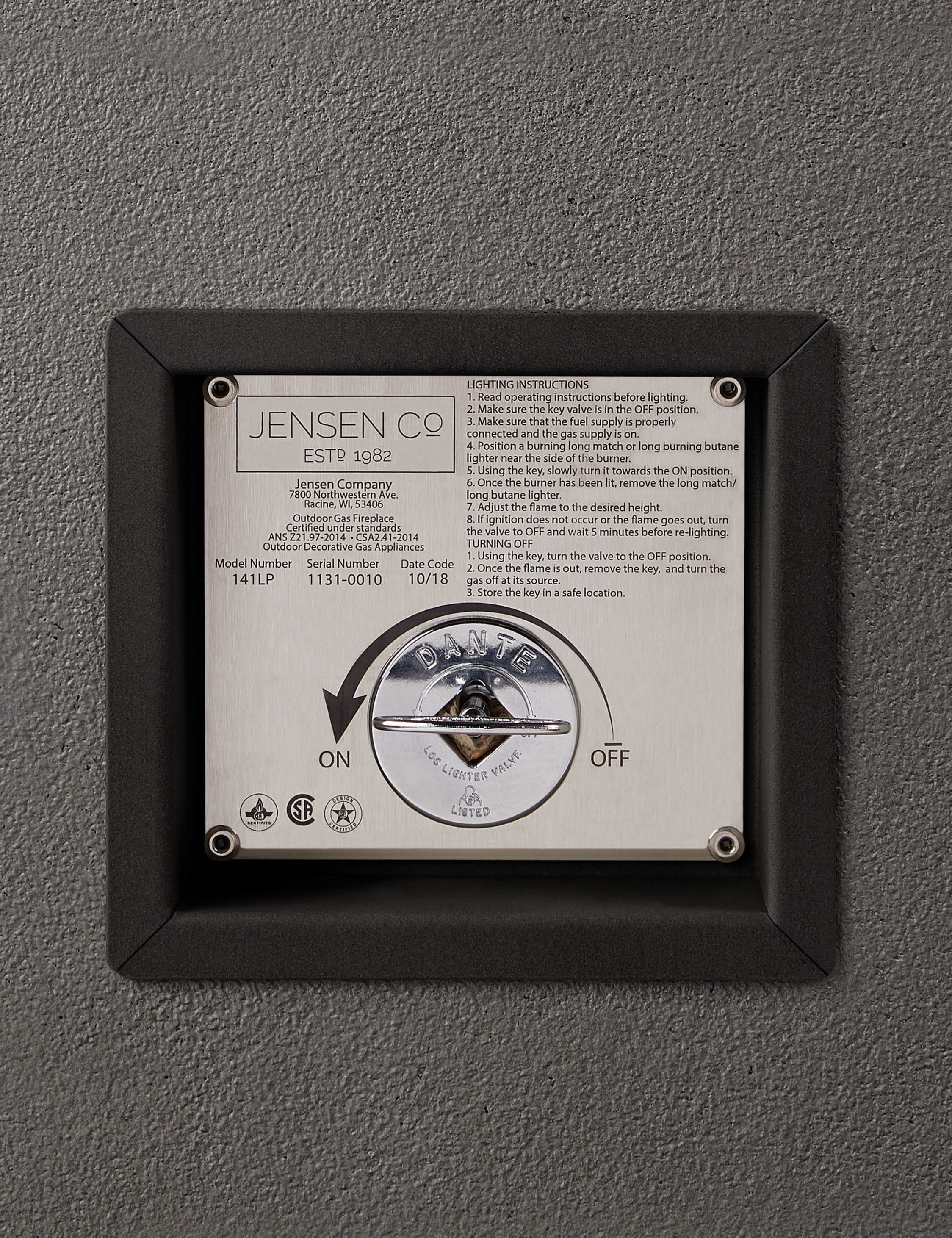 - Includes fire table with brass burner, black lava rock filler, valve key, polyester storage cover and 8' NG hose with quick connect socket