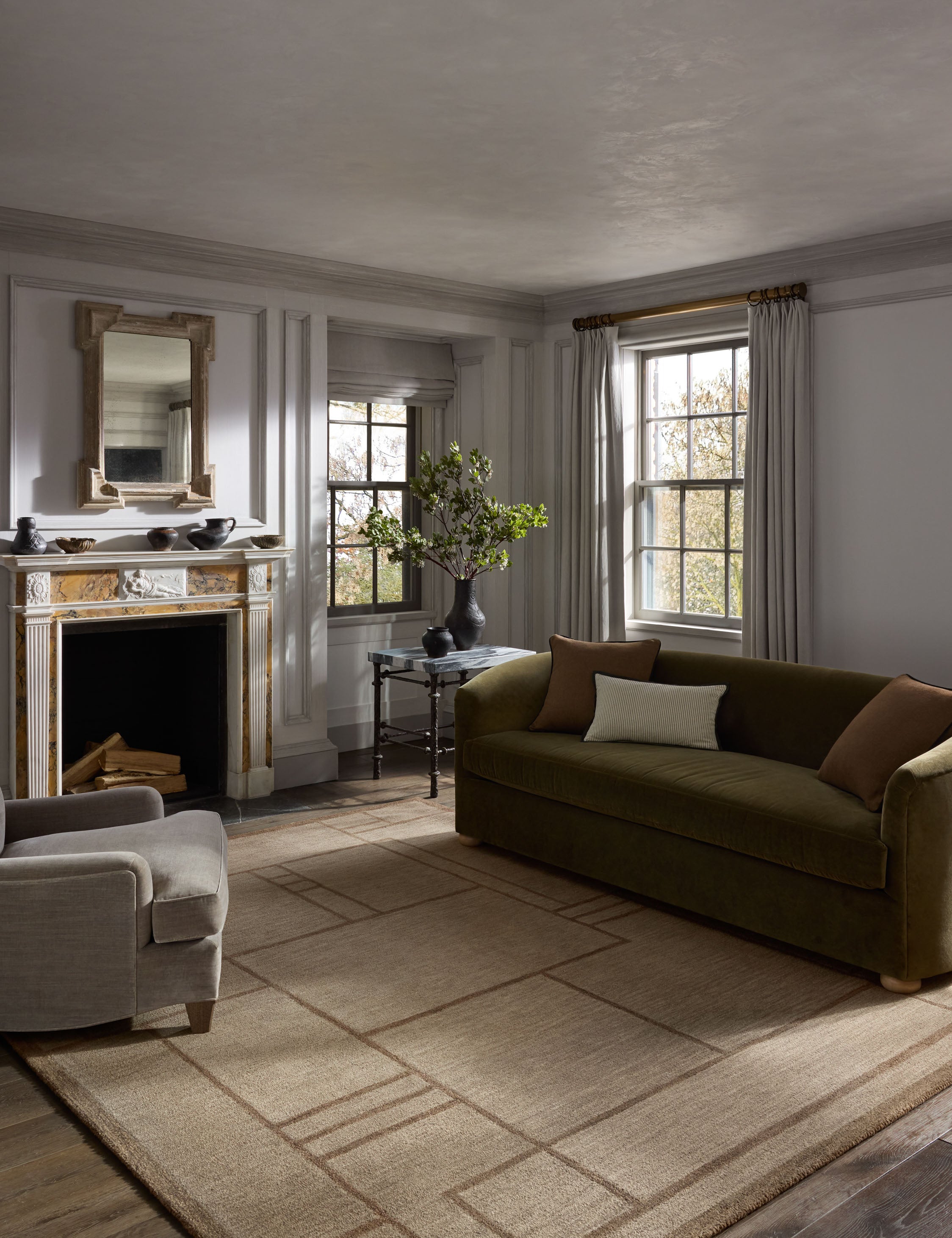 Jeremiah Brent has a talent for shaping spaces around people, grounding high design in a sense of personality and intention. In this collaboration with Loloi, he brings that approach to a collection of rugs marked by strong lines, meticulous craftsmanship, and a quietly bold style. The Barrow rug's motif balances modern art with classic architecture, hand-tufted with a wool-jute blend for natural texture and stability underfoot.
