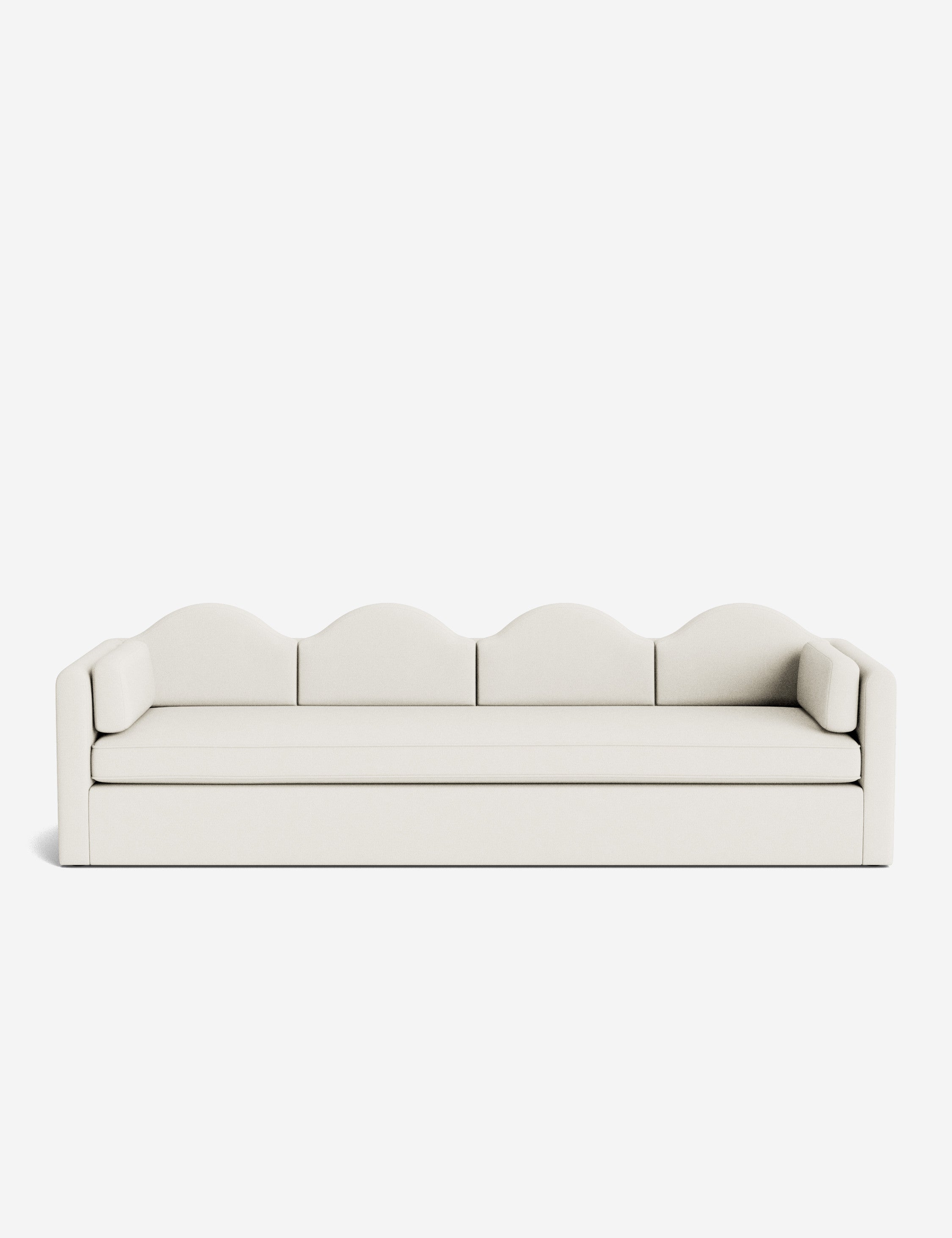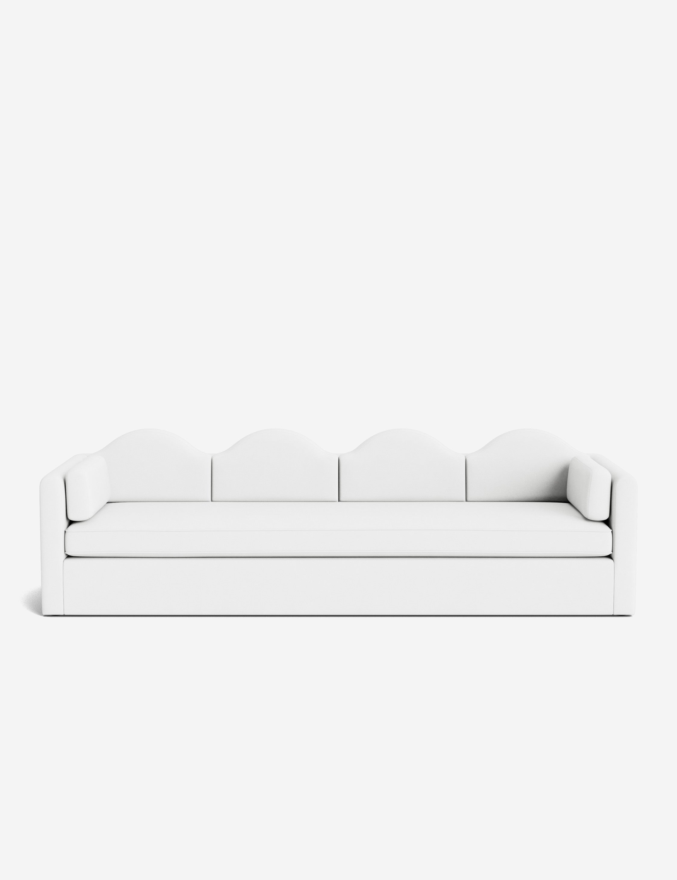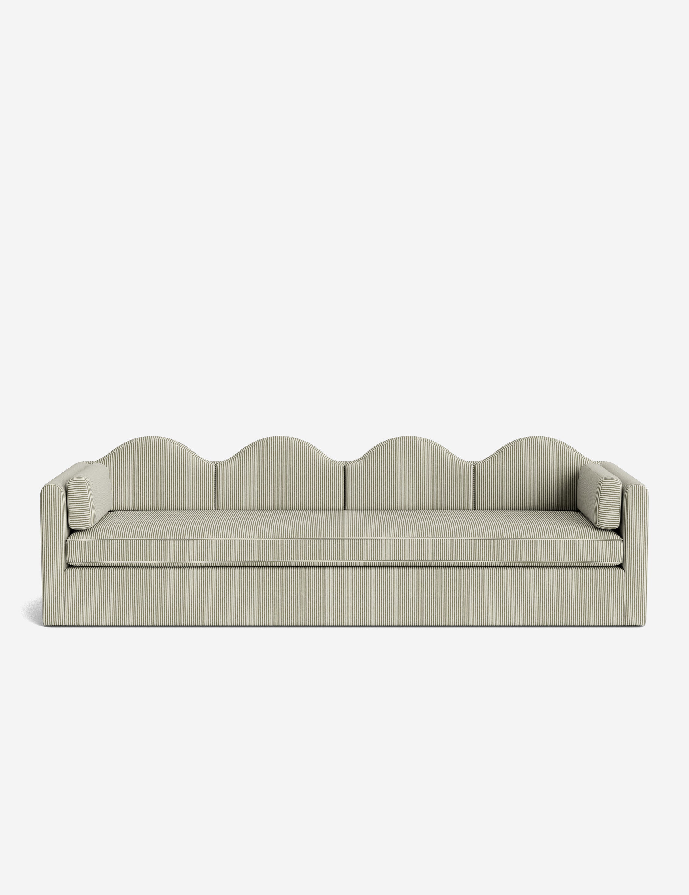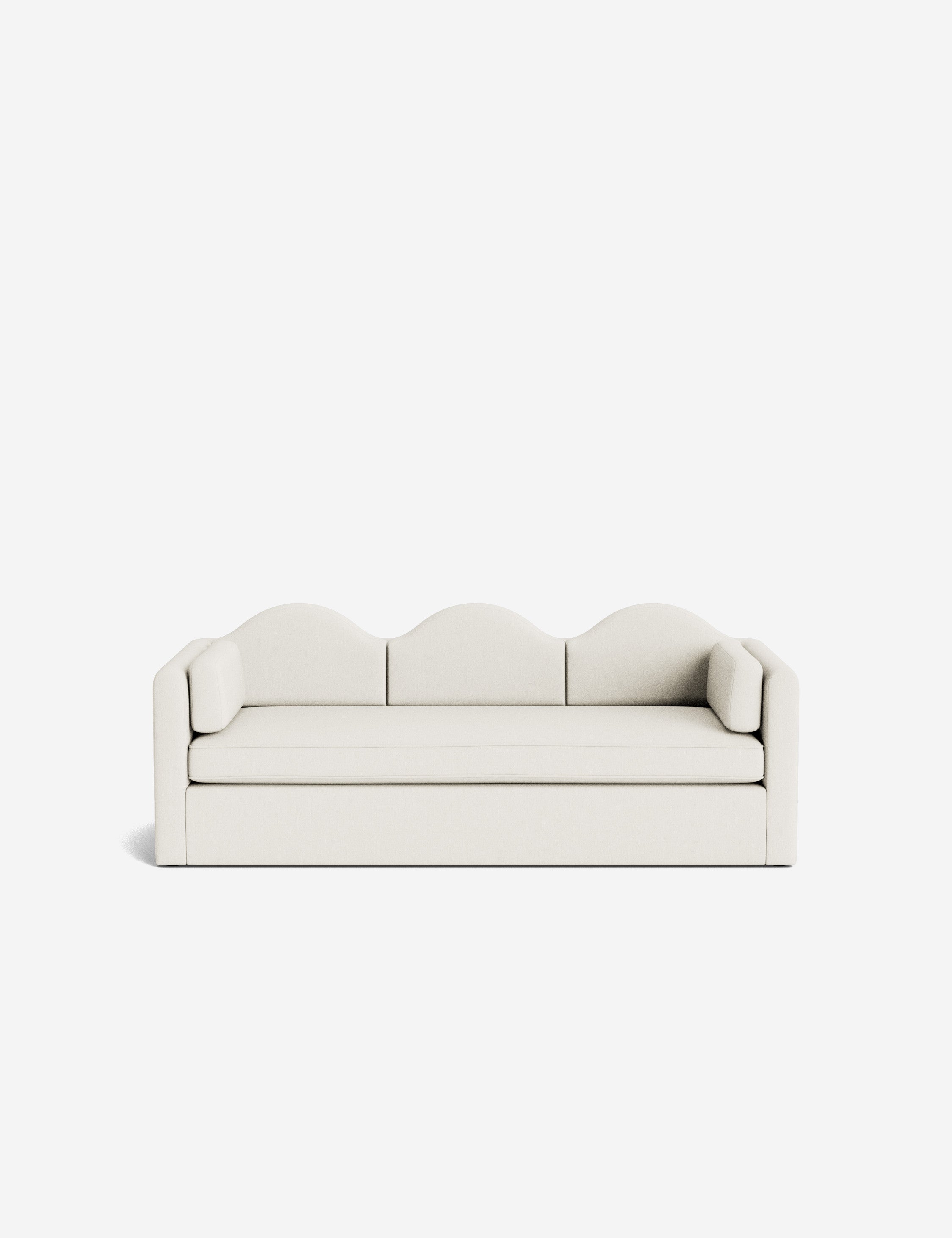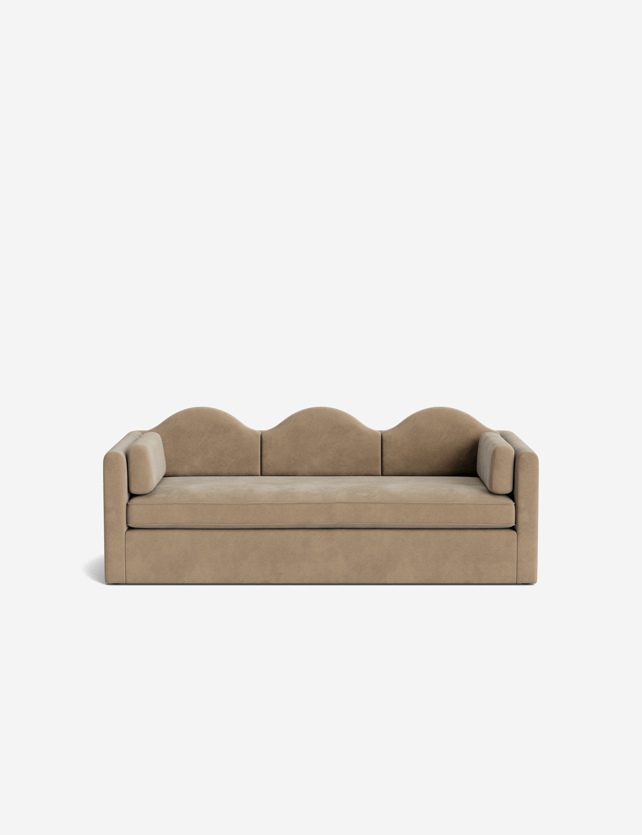 The Bernadette sofa strikes a sculptural statement with its scalloped profile and crisply tailored lines. Custom fabric lets you style the look with a signature touch to anchor your space with the perfect tone and texture. This modern sofa is from our exclusive Sarah Sherman Samuel collaboration and features all the trademarks of her warm, edited style.