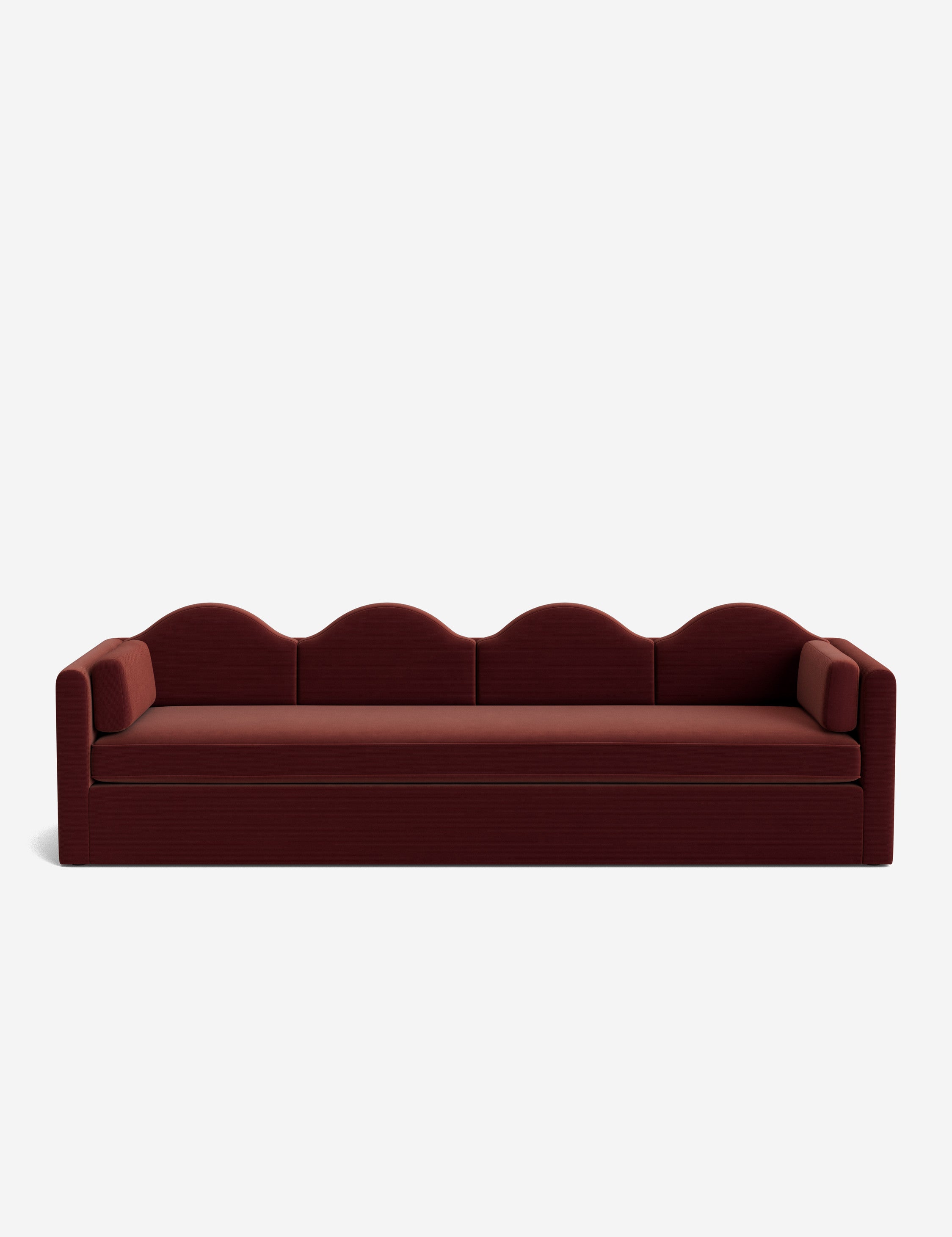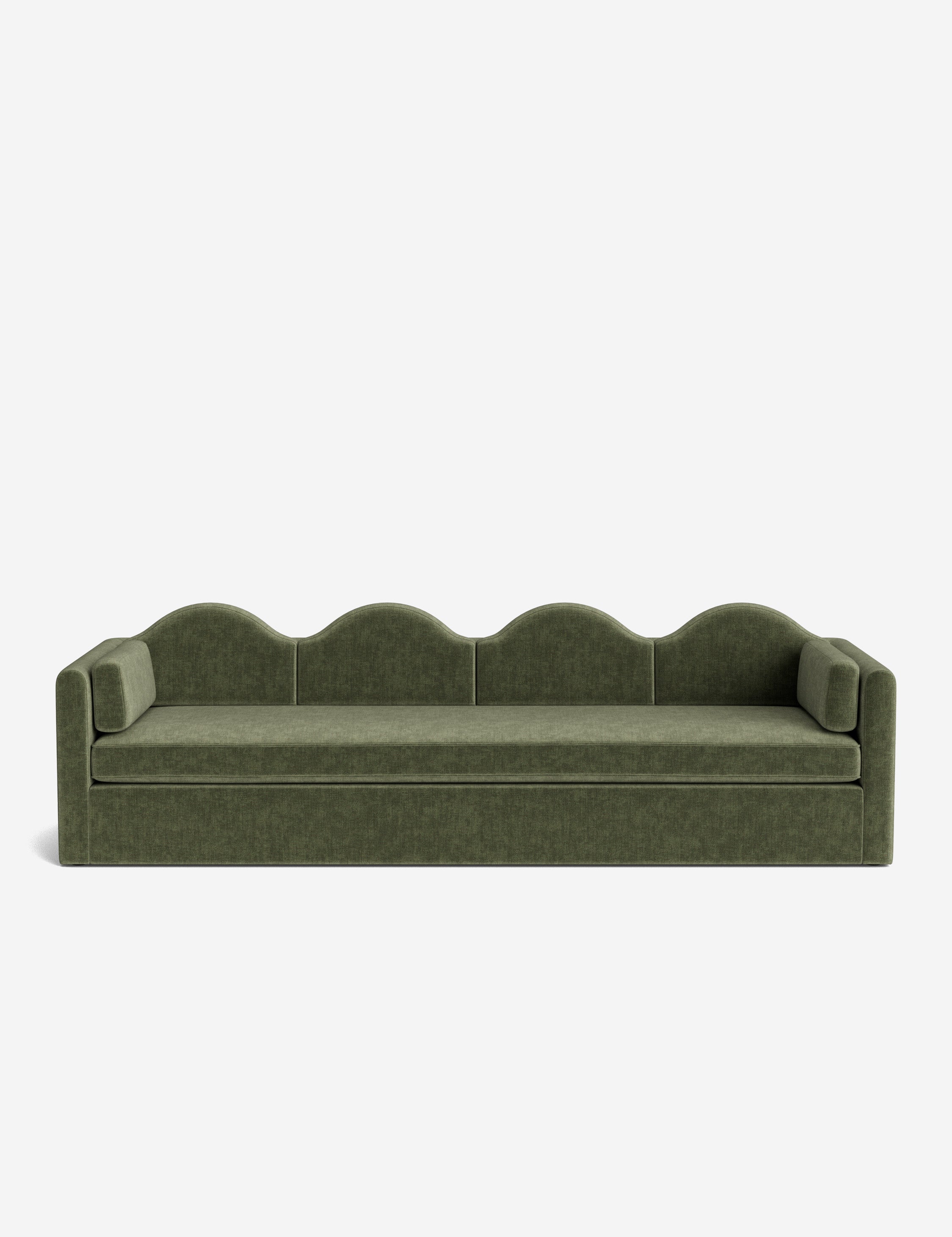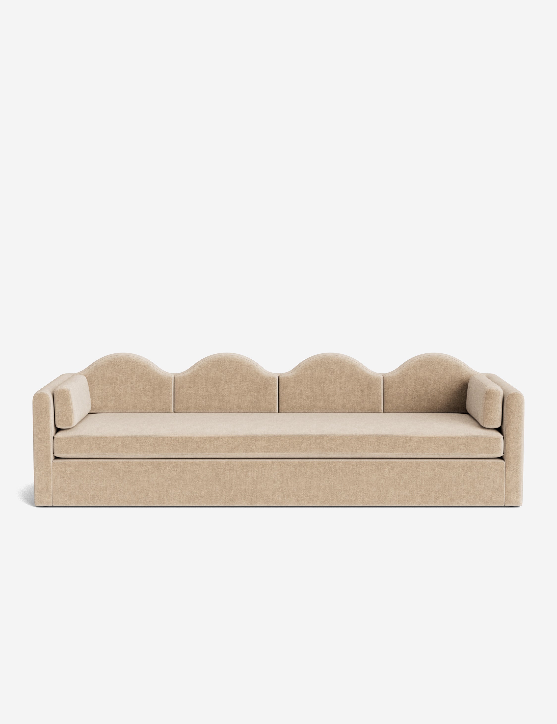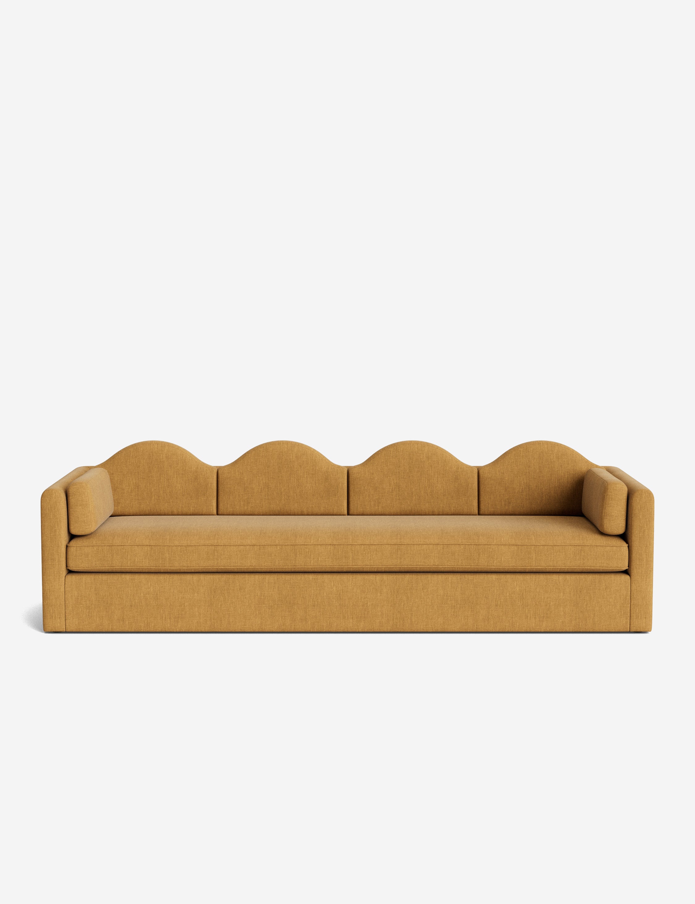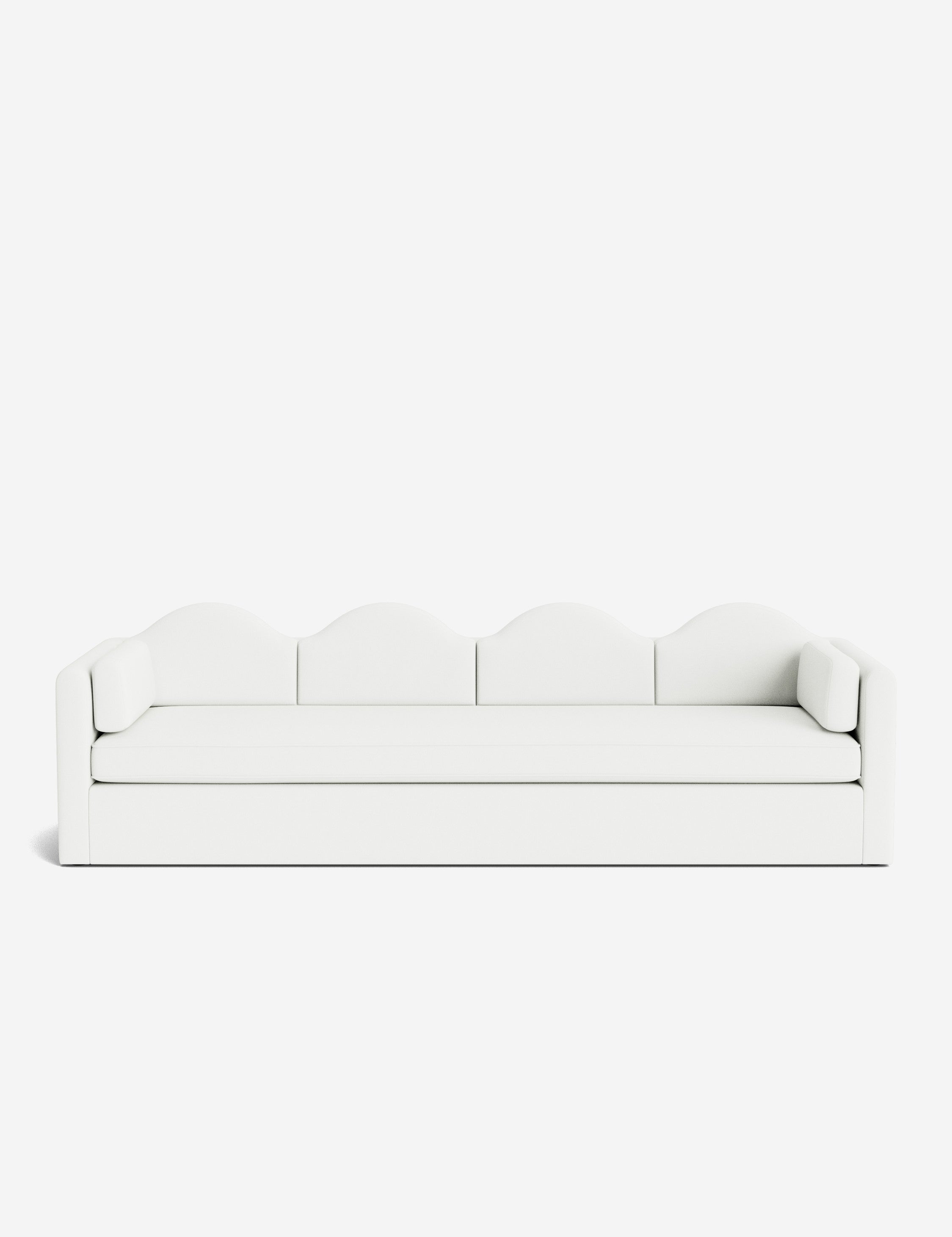 The Bernadette sofa strikes a sculptural statement with its scalloped profile and crisply tailored lines. Custom fabric lets you style the look with a signature touch to anchor your space with the perfect tone and texture. This modern sofa is from our exclusive Sarah Sherman Samuel collaboration and features all the trademarks of her warm, edited style.