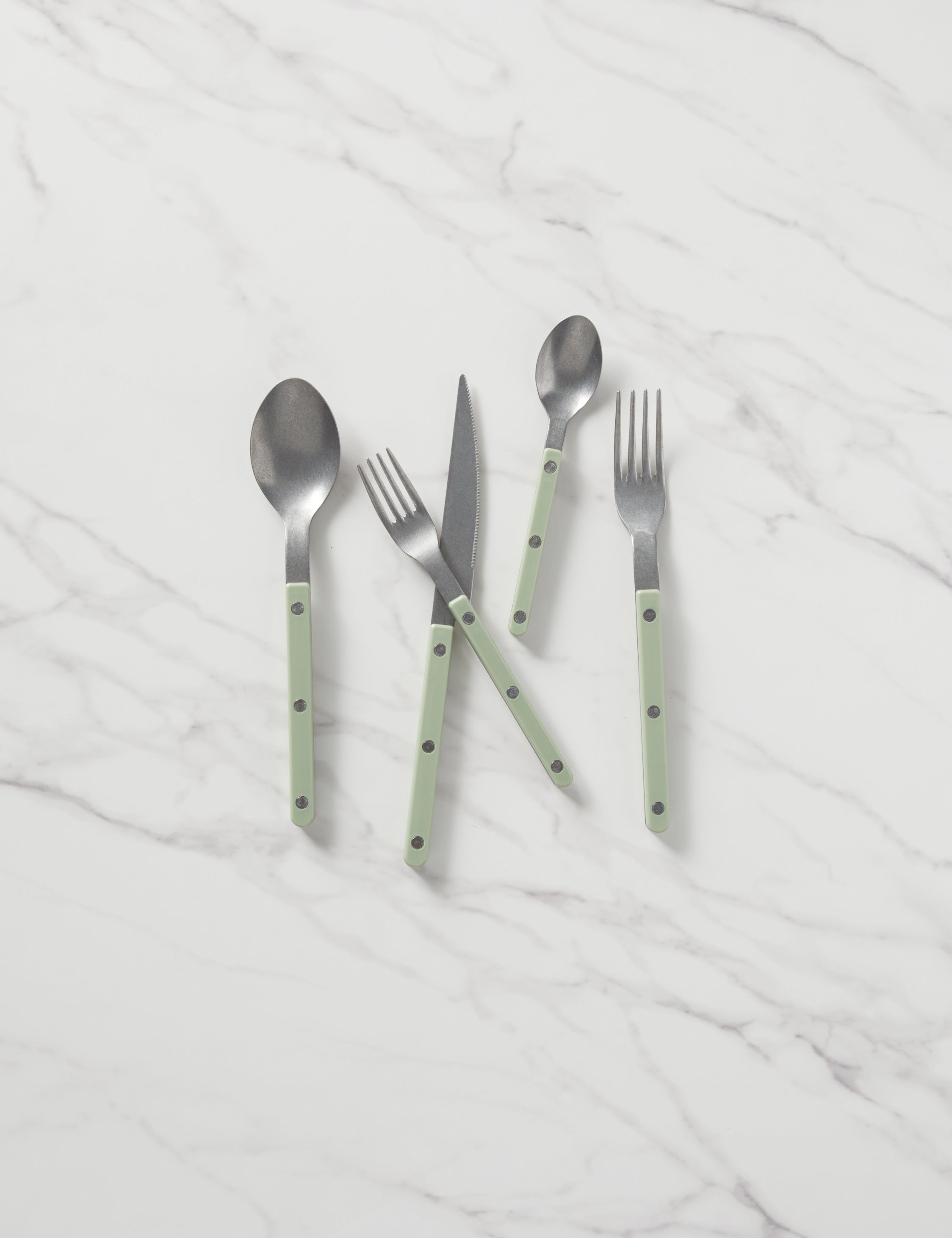 Bring a unique touch to your tablescape with truly distinctive cutlery. Whether enjoying a bistro-style brunch or gathering for al fresco dining with friends, these flatware elements will add a little continental flavor. Made in France, each 5-piece set includes full-course silverware for a single-place setting.