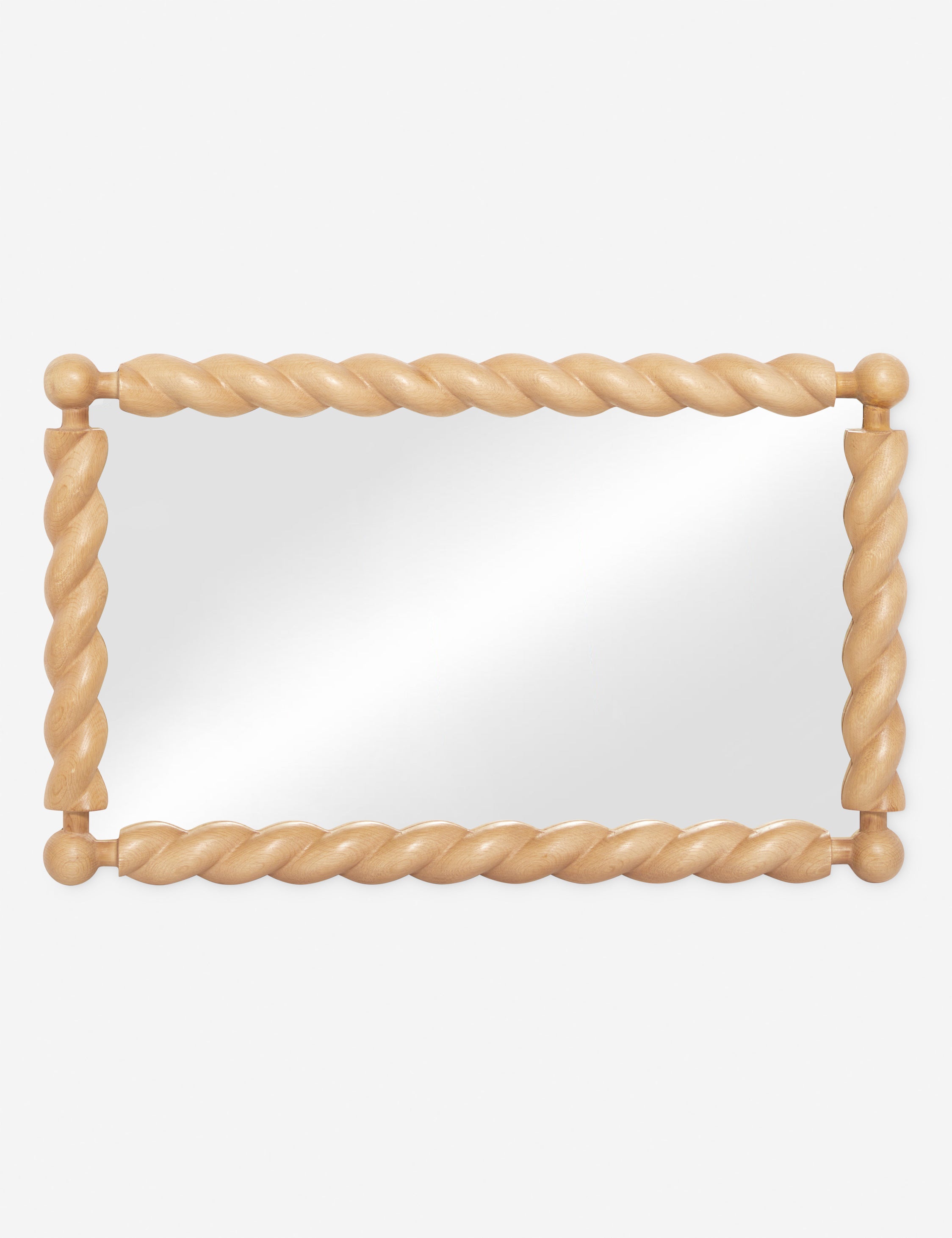 In this stylish mirror, light oak provides natural grain texture with a twist. The braided wood frame is decorated with ball finals, bringing a fresh dimension to the room with a chic look and feel. This wall mirror is from our exclusive Sarah Sherman Samuel collaboration and features all the trademarks of her warm, edited style.