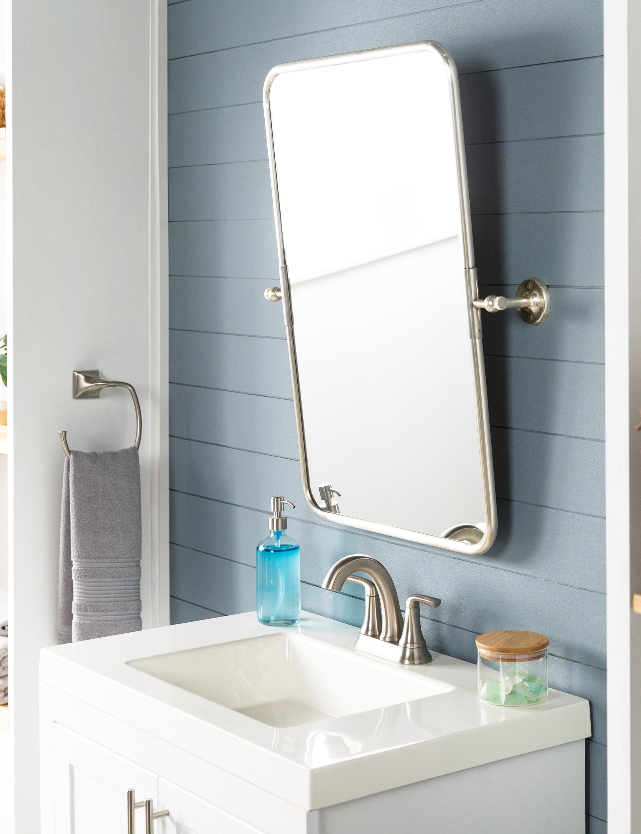 The Caferro mirror pairs a sleek look with industrial detailing in a clean, modern design. A slender metal frame surrounds the glass with sleek bracket mounts offering a refined touch. Style this decorative mirror in a hallway or over a powder room vanity to brighten the space with a polished finish.