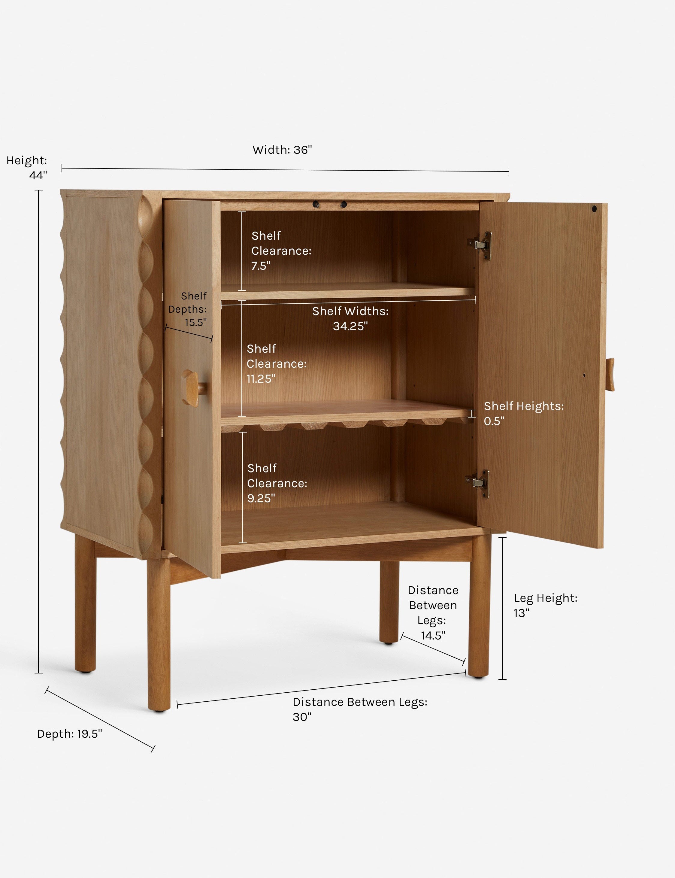 - Overall Dimensions: 36"W x 19.5"D x 44"H