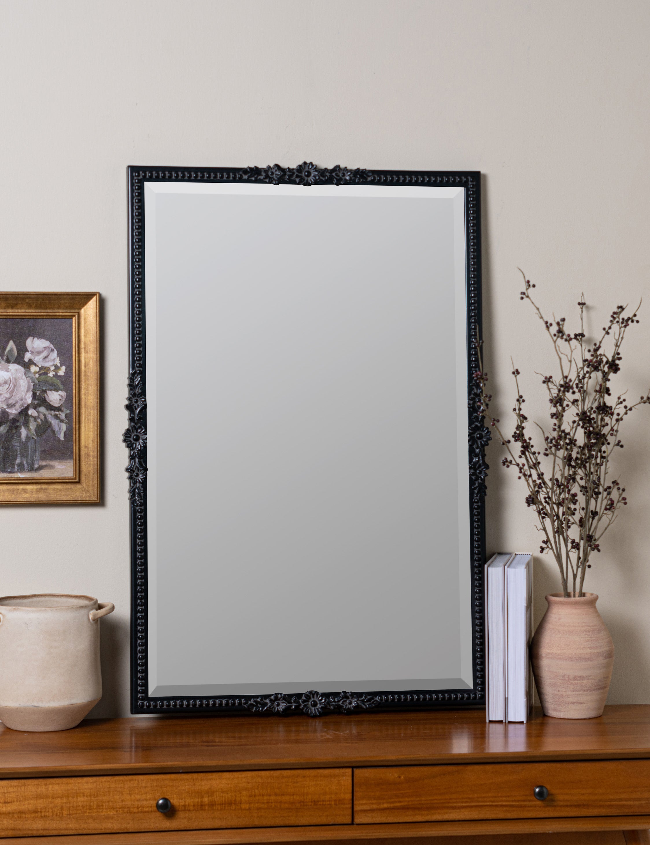 Beauty is in the small touches when it comes to traditional design. Whether you want to add light and depth to the room or need a functional accent for your entryway or powder room, the Cantara mirror is a stylish showstopper. A beaded border with floral details brings endless charm to this decorative mirror—setting the tone for transitional appeal.