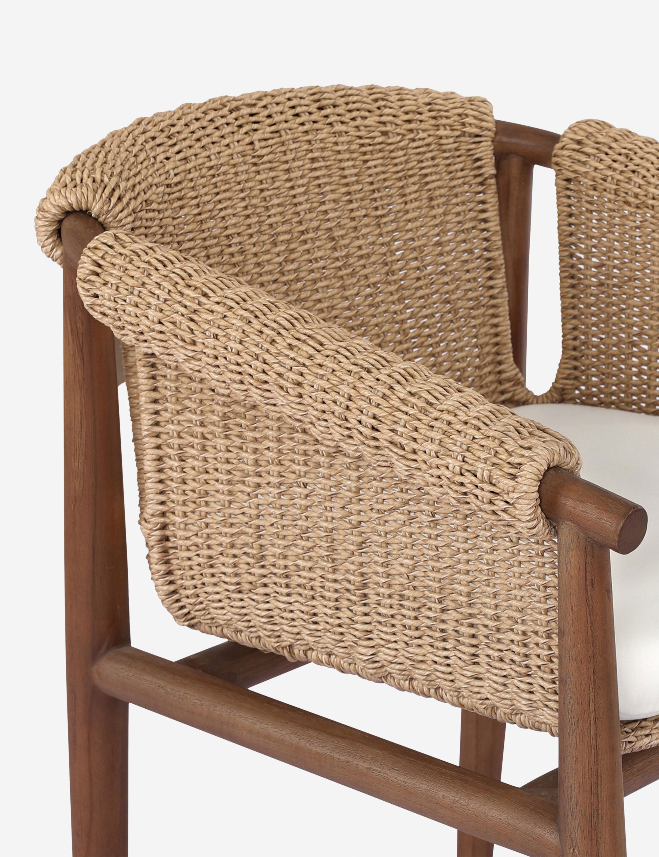 Crafted for outdoor living with a chic vintage style, the Cantrelle dining chair pairs sculptural curves with artisan texture. Its sling-style back and tightly woven all-weather fibers bring comfort and character to a durable design. Perfect for your al fresco table, this dining seat balances casual ease with a refined touch.