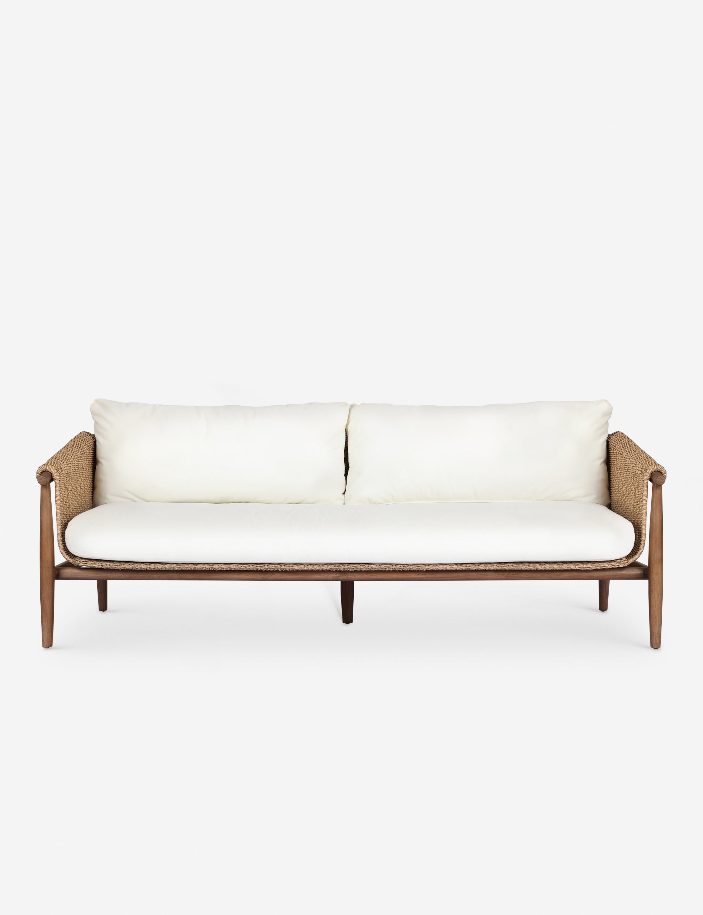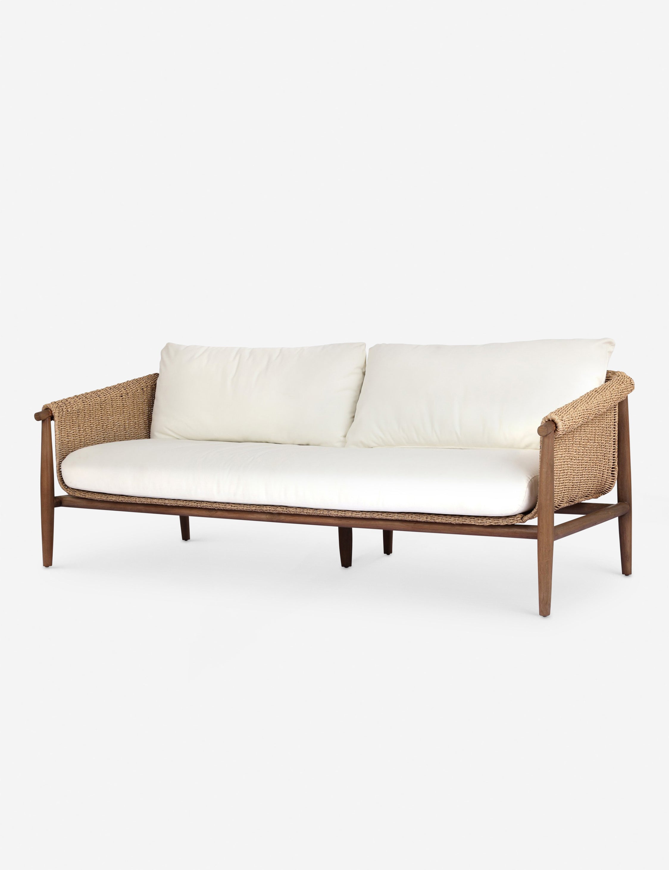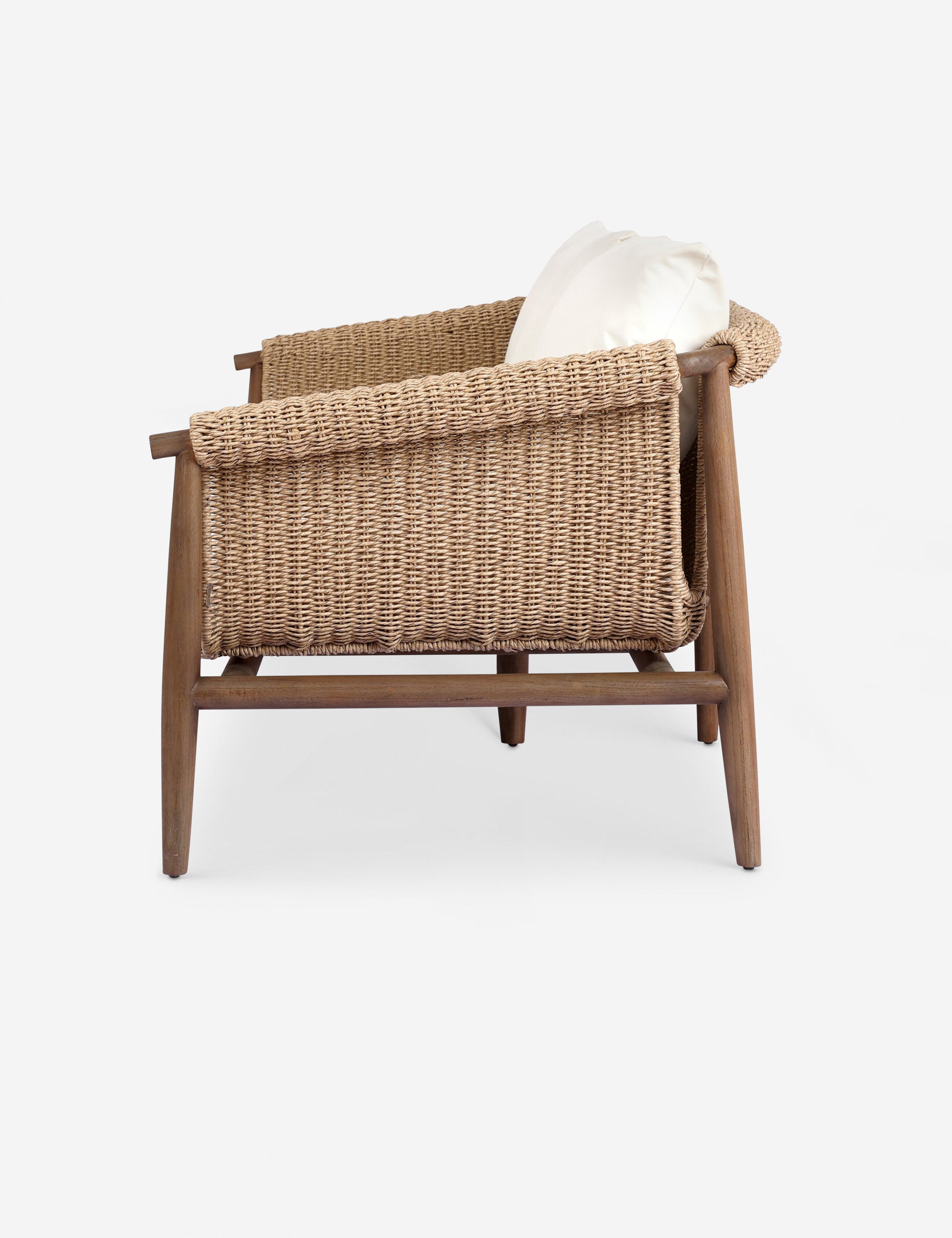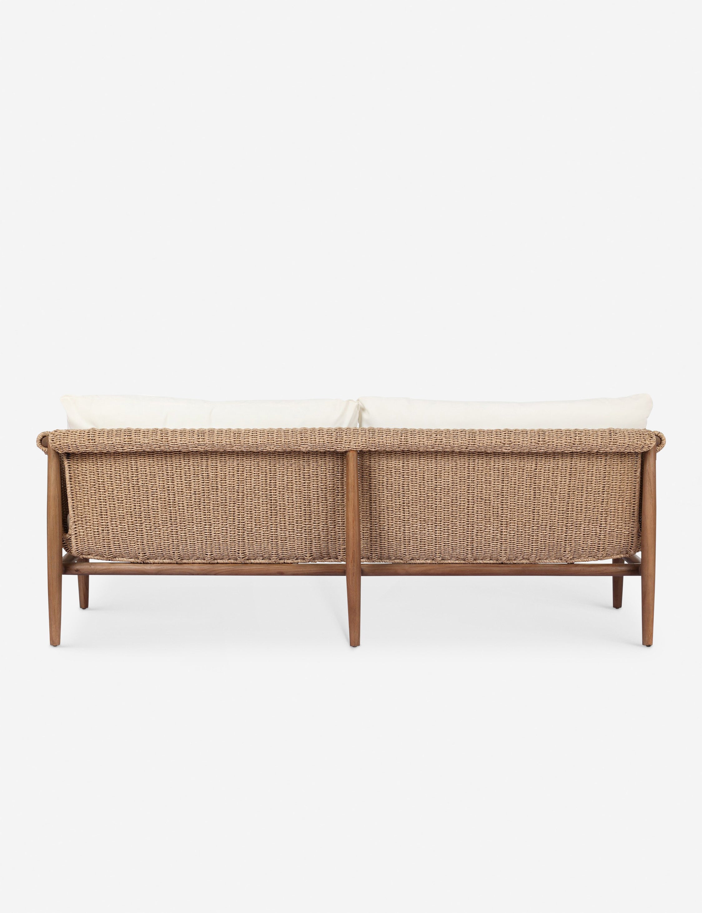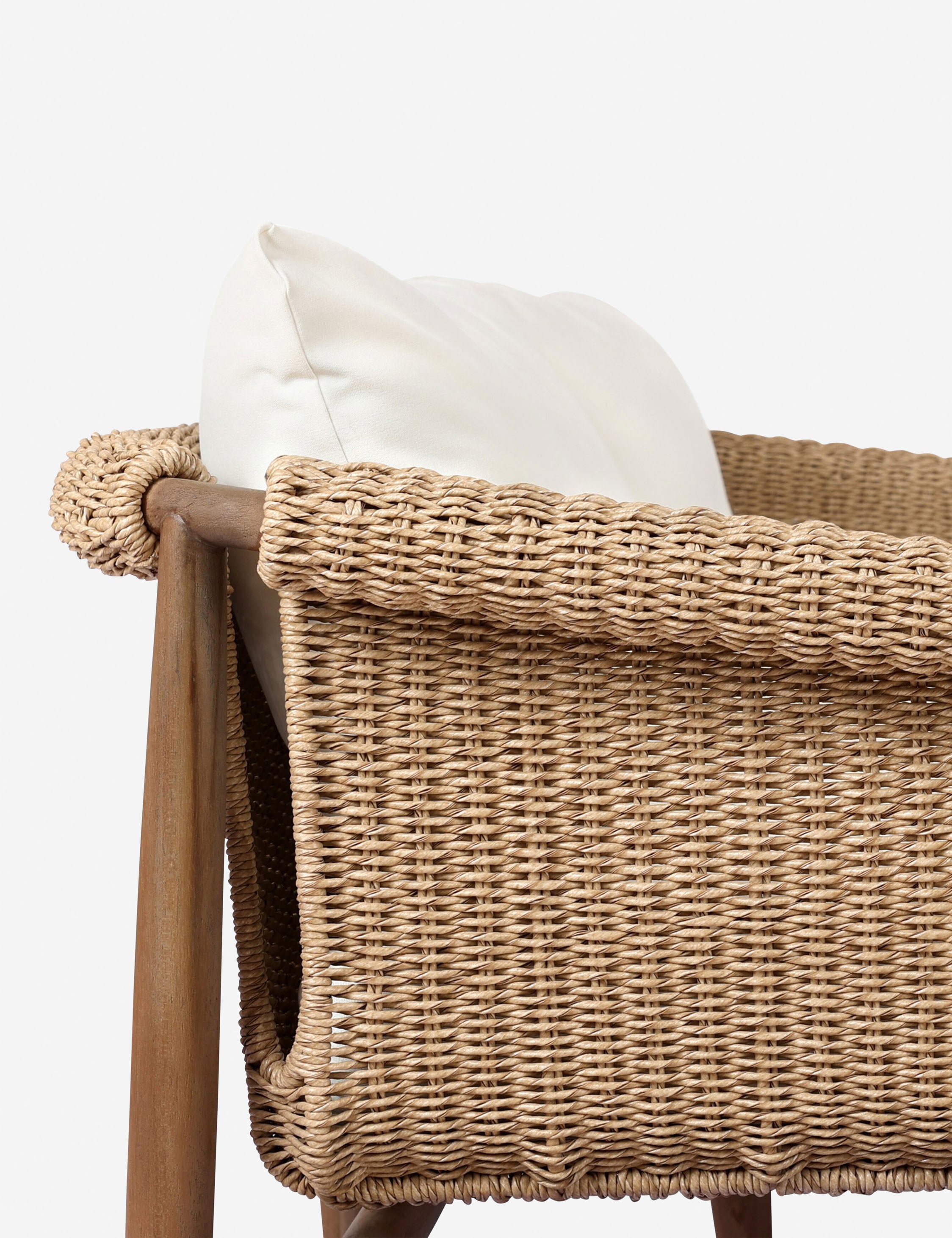 Crafted for outdoor living with a chic vintage style, the Cantrelle sofa pairs sculptural curves with artisan texture. Its sling-style back and tightly woven all-weather fibers bring comfort and character to a durable design. This outdoor sofa offers roomy comfort with a refined, wraparound feel, perfect for outdoor lounging.