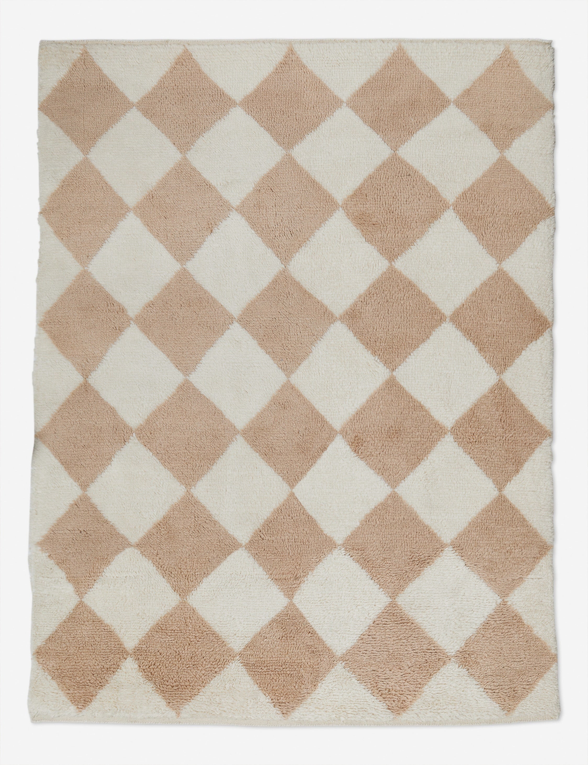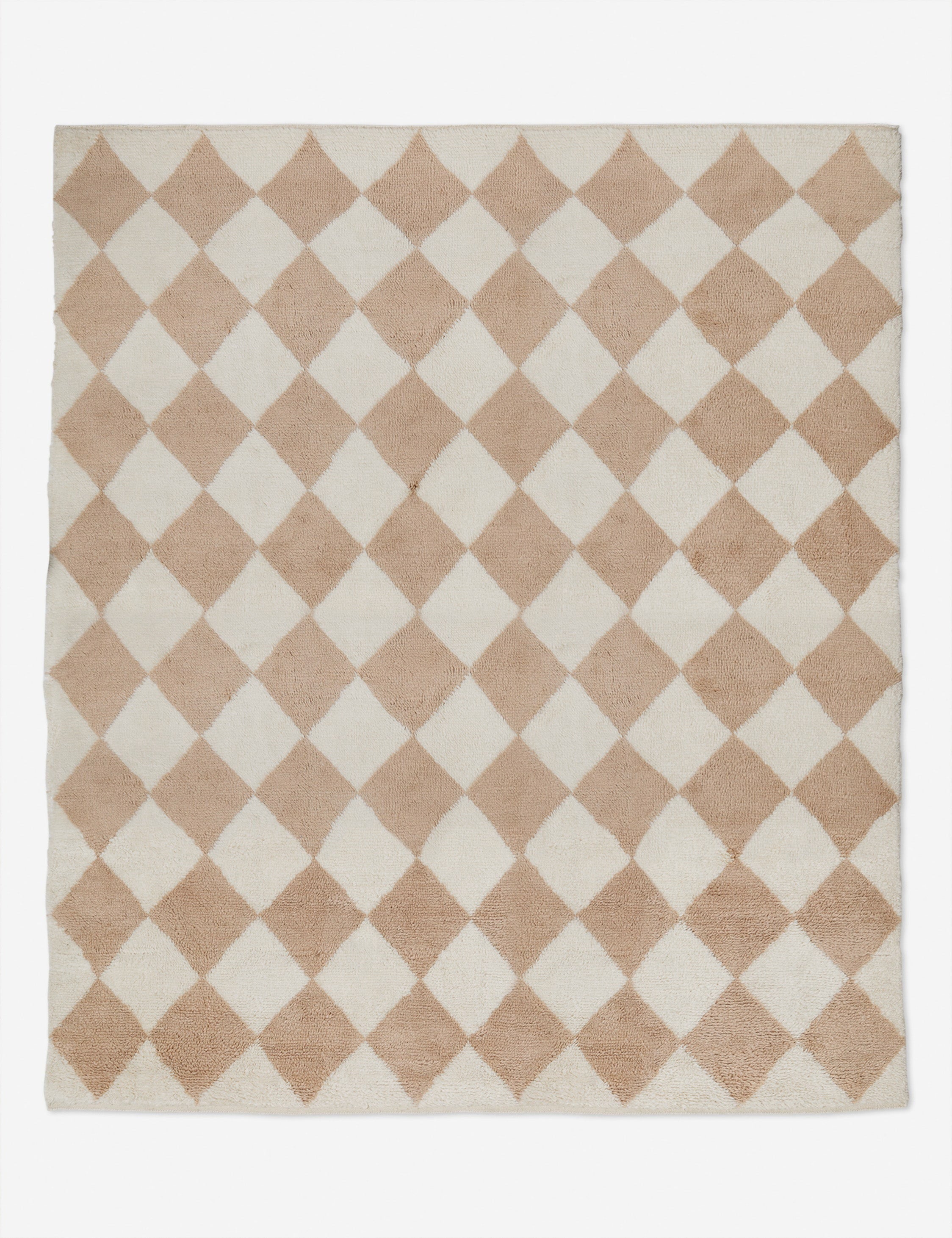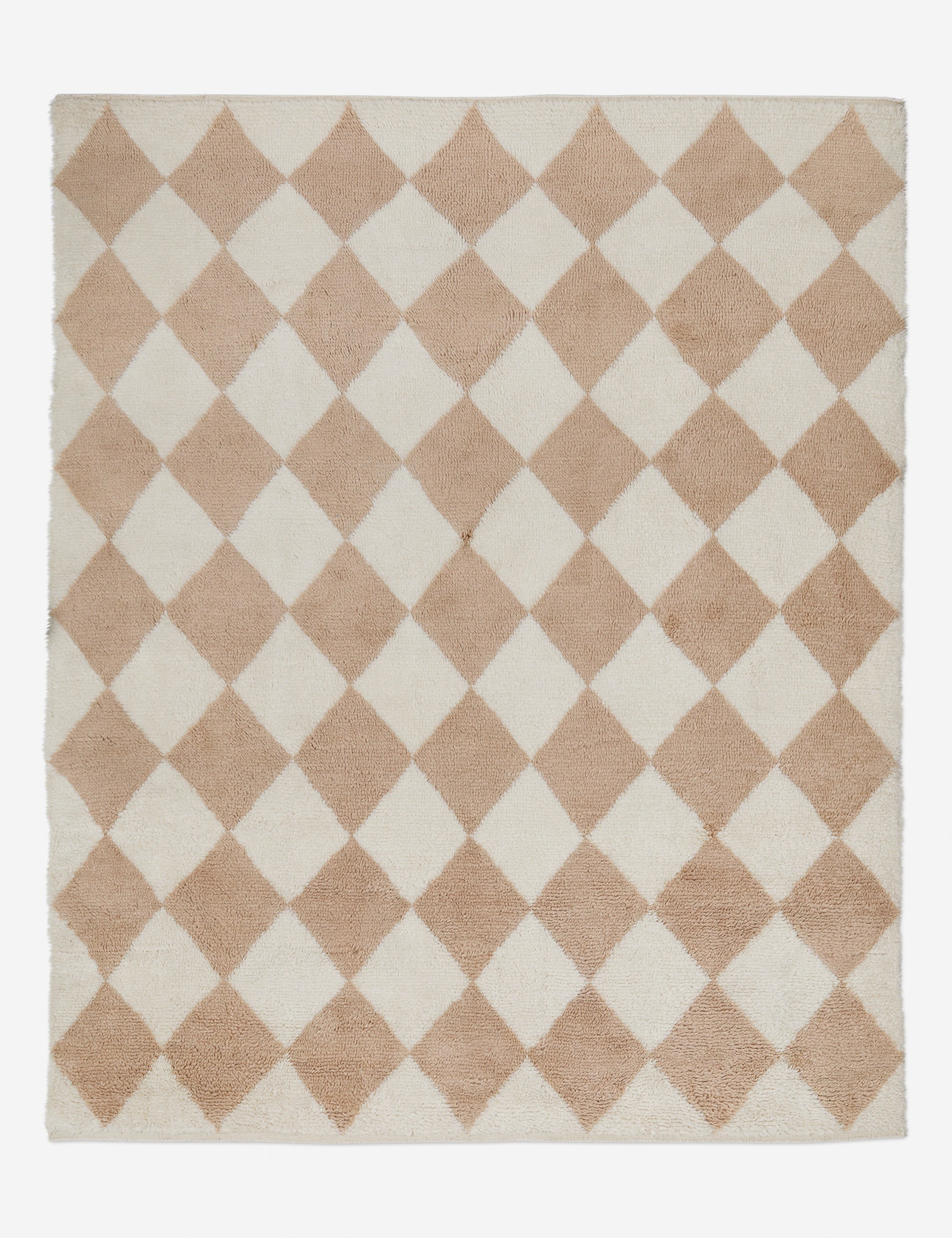 With its bold diamond pattern, this Moroccan shag rug layers your look for chic comfort from the ground up. The thick wool pile offers a naturally plush touch underfoot, while its intricate hand-knotted construction provides a durable foundation for livable style. This eye-catching area rug is set for immediate impact with lasting appeal.