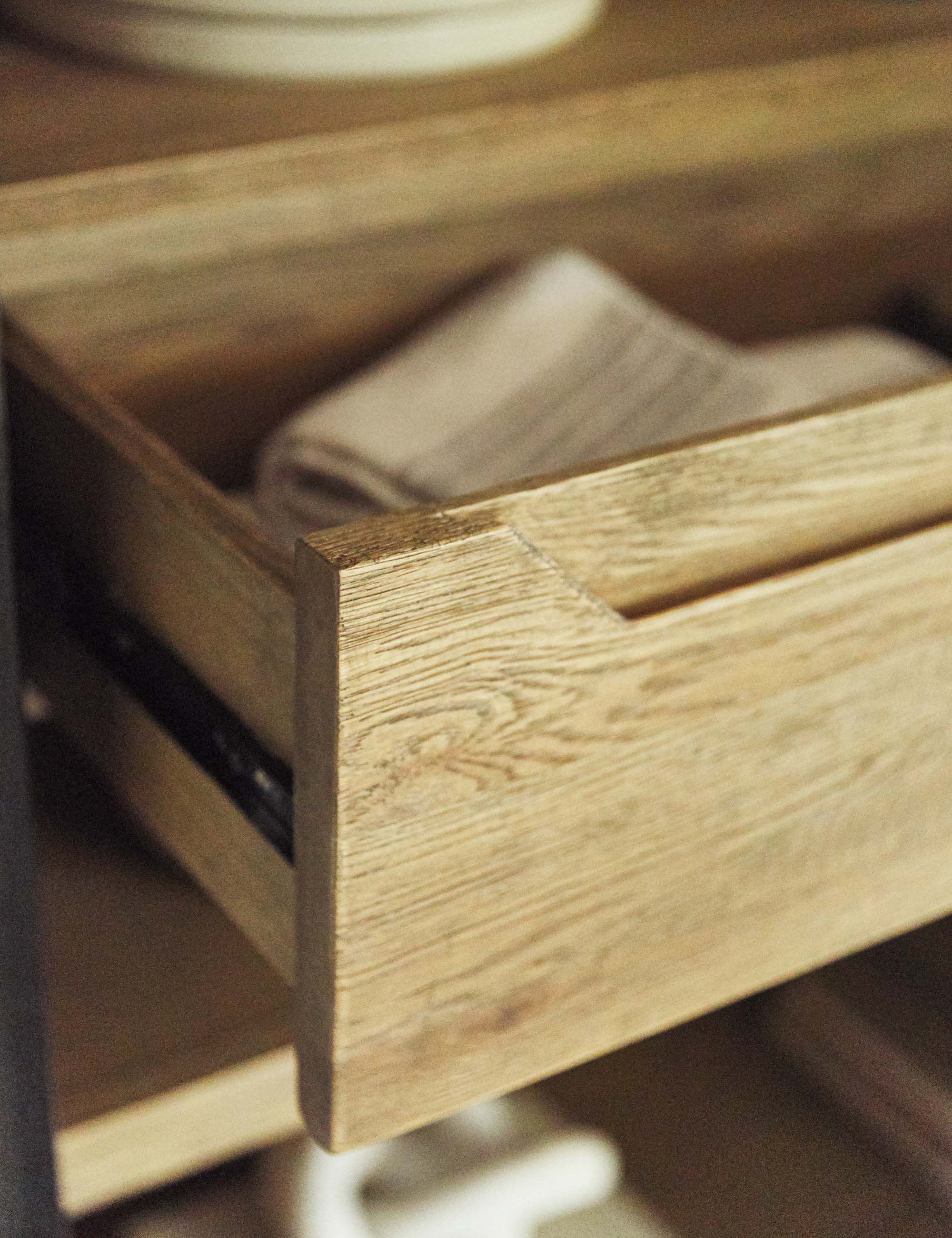 - material: Solid Oak Wood, Oak Veneer, Tempered Glass