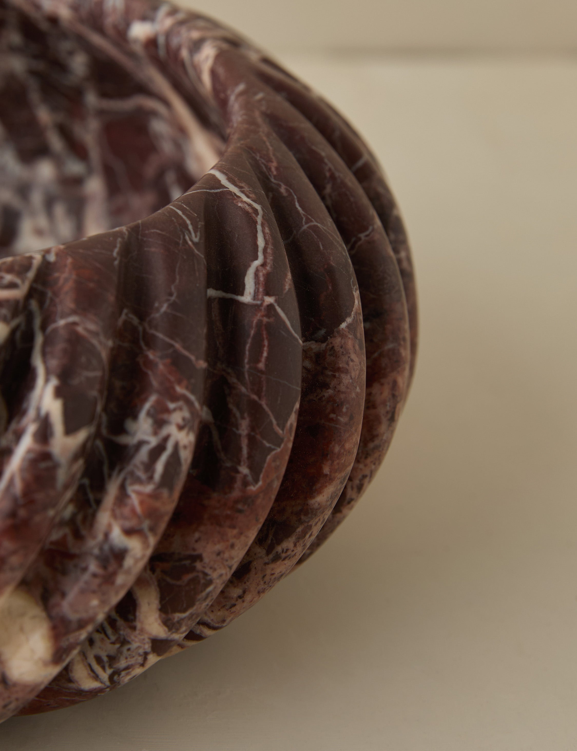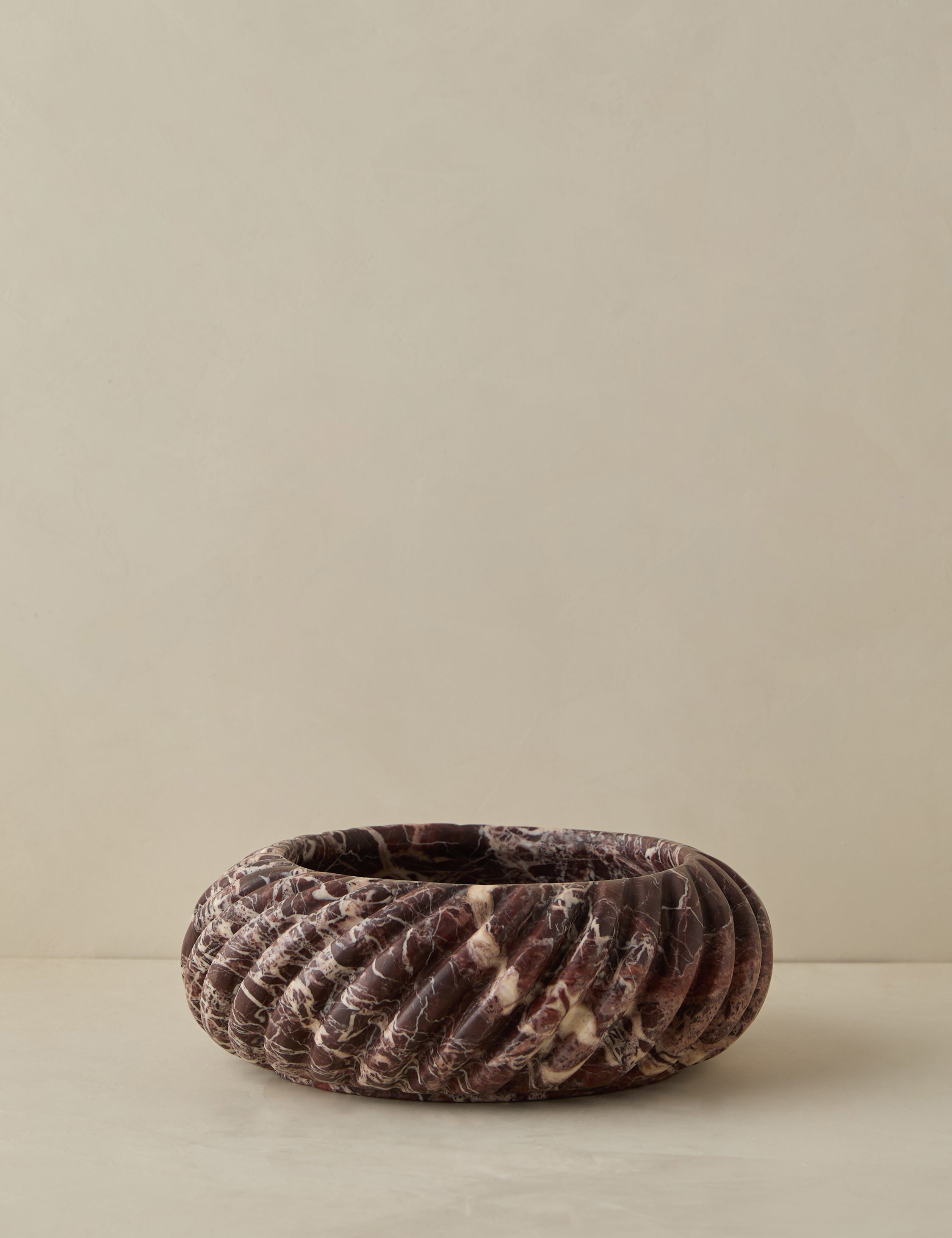 Anastasio Home works with craftspeople around the world to bring limited-run accessories and upcycled luxury goods to your home. The Cruller bowl is cut from a single piece of stone and hand-finished by artisans with a twisted rope motif—a sculptural standout that can fold into functional tabletop decor. This heirloom-quality piece shows the unique marks and imperfections of the artisan's process.
