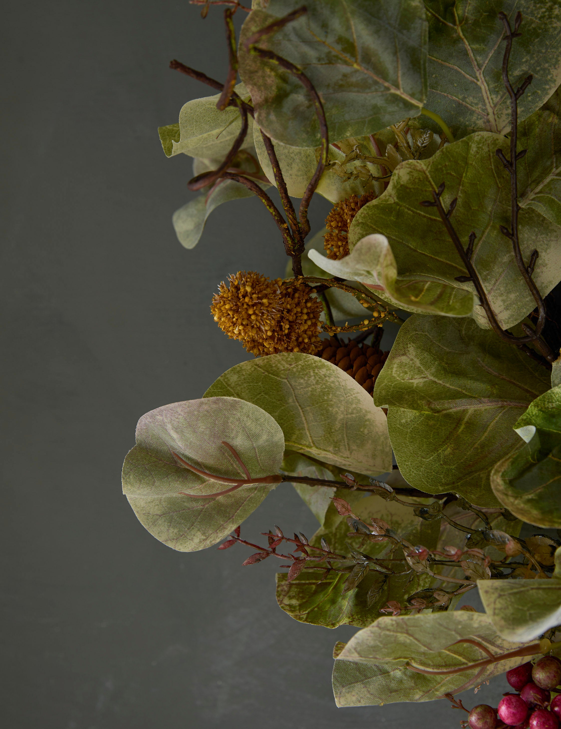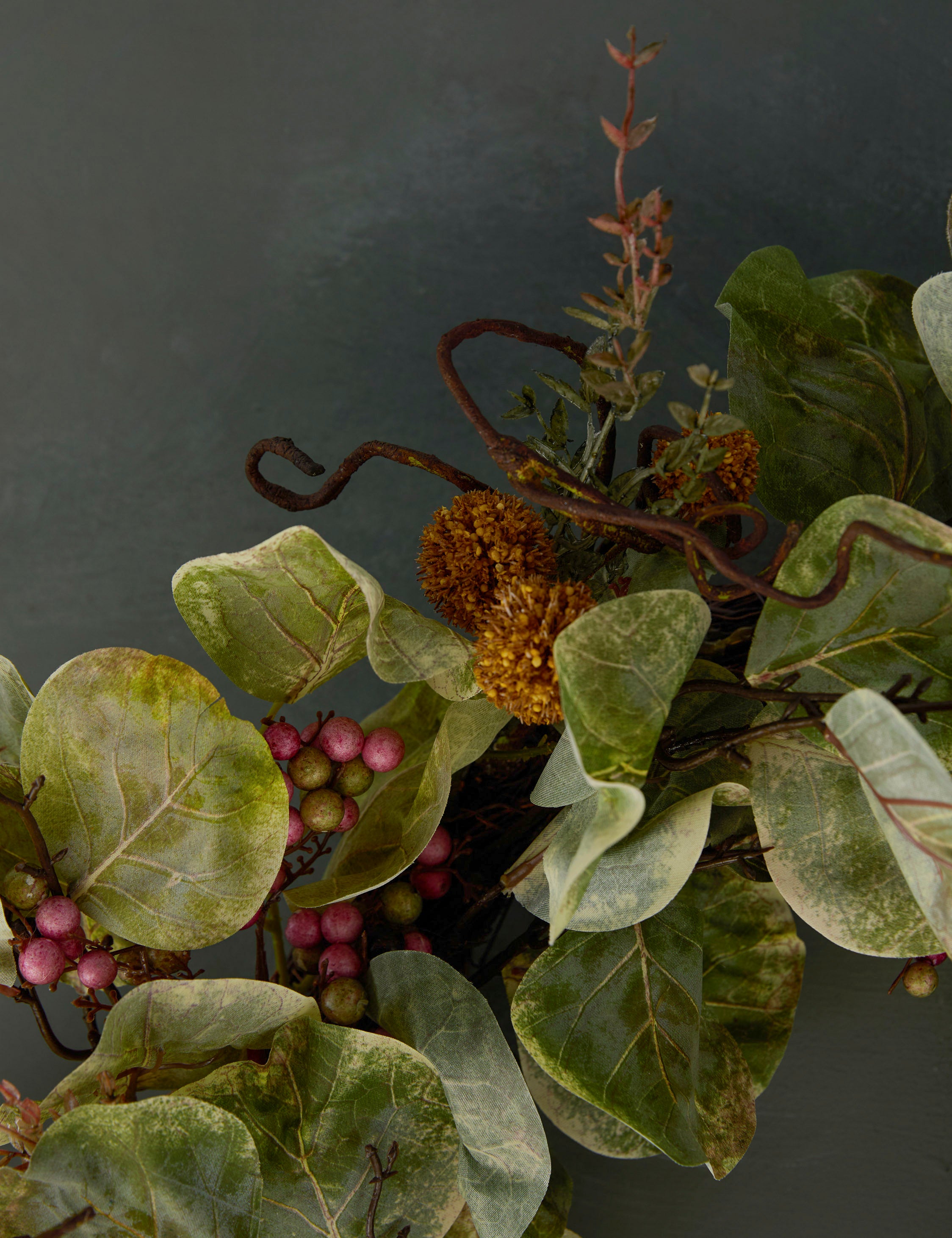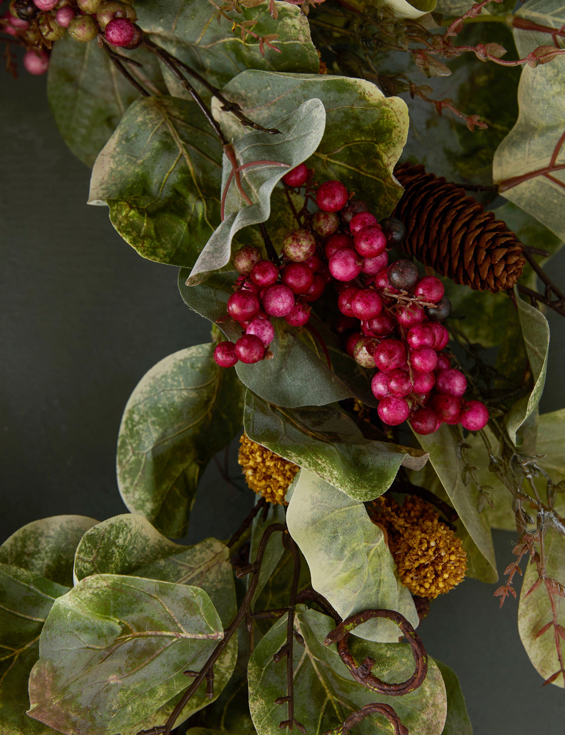 Create a warm reception this season with the textures of the outdoors. This faux wreath will brighten your wall decor or tablescape with a touch of woodland charm for seasons to come.