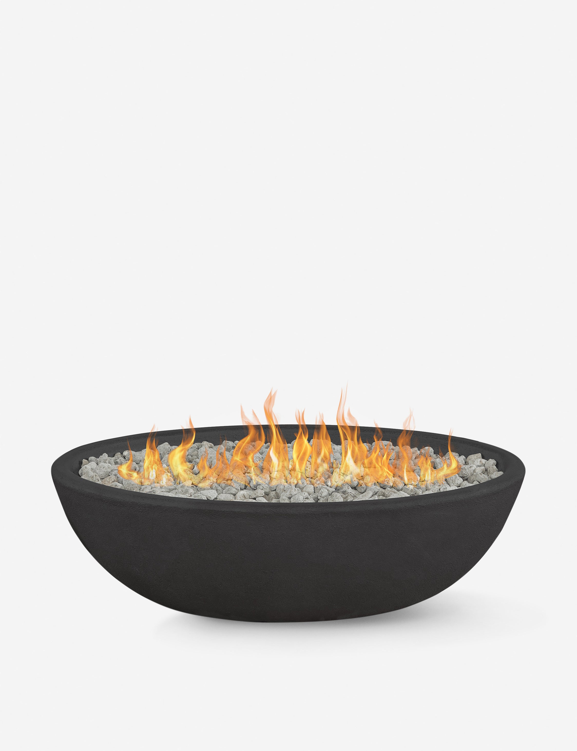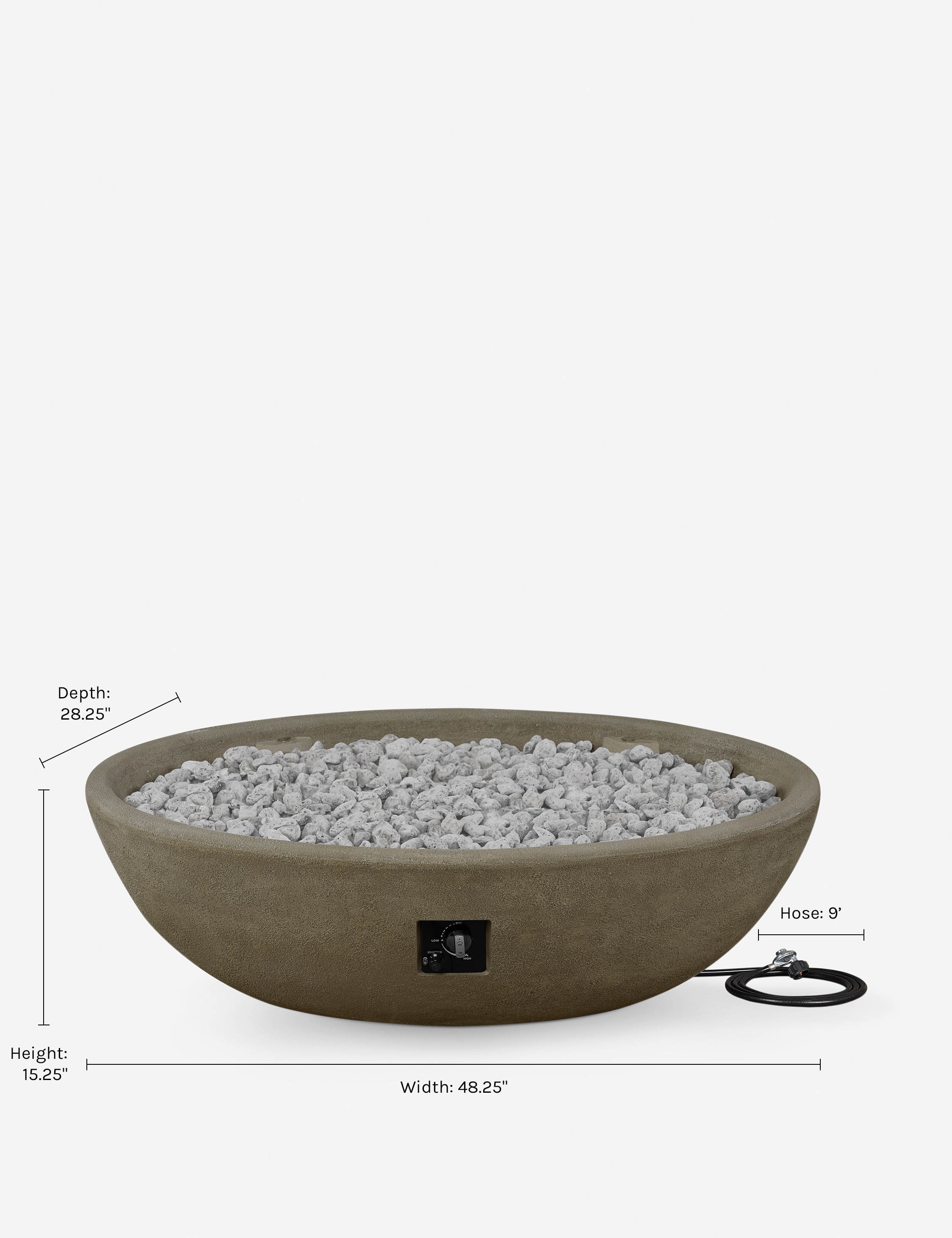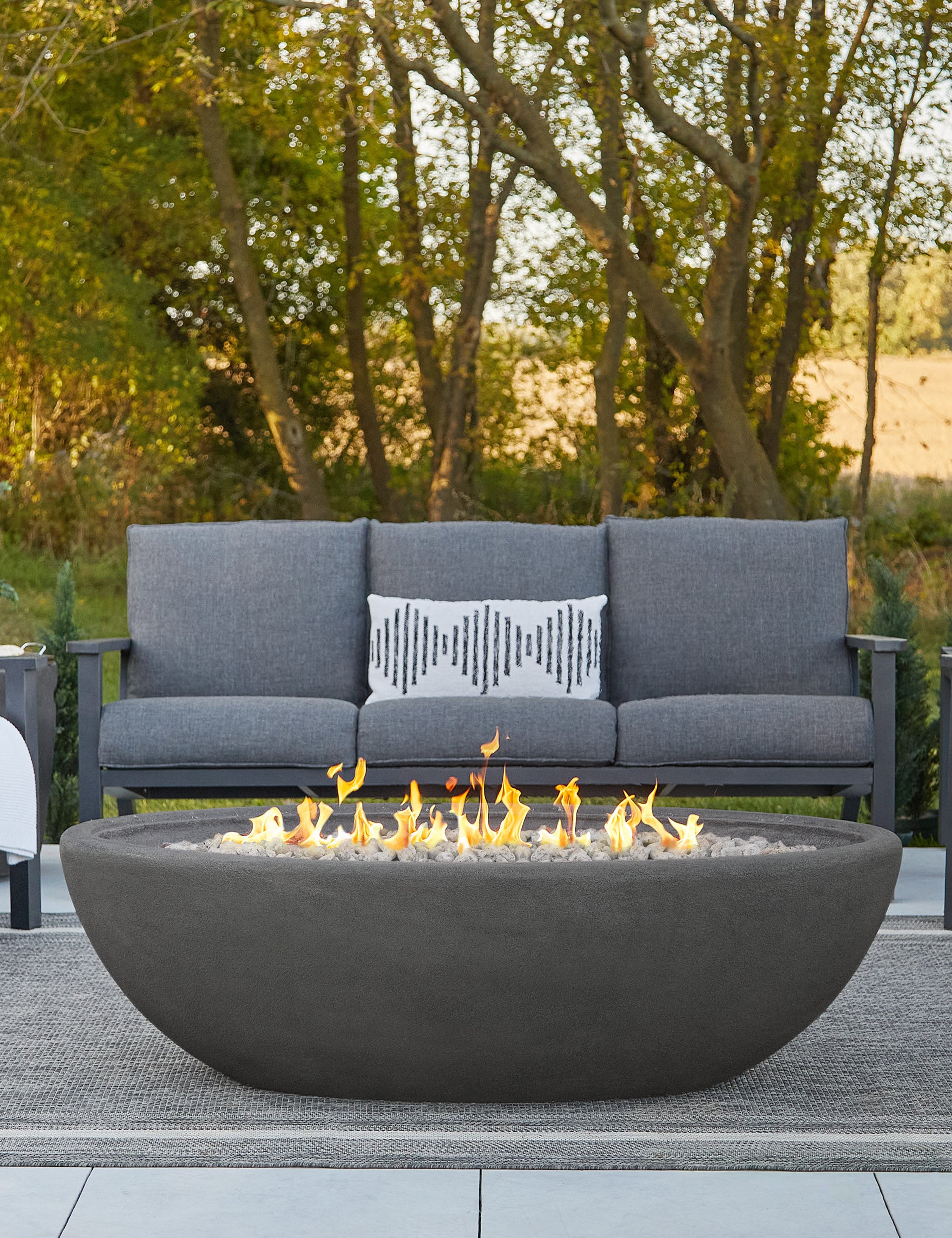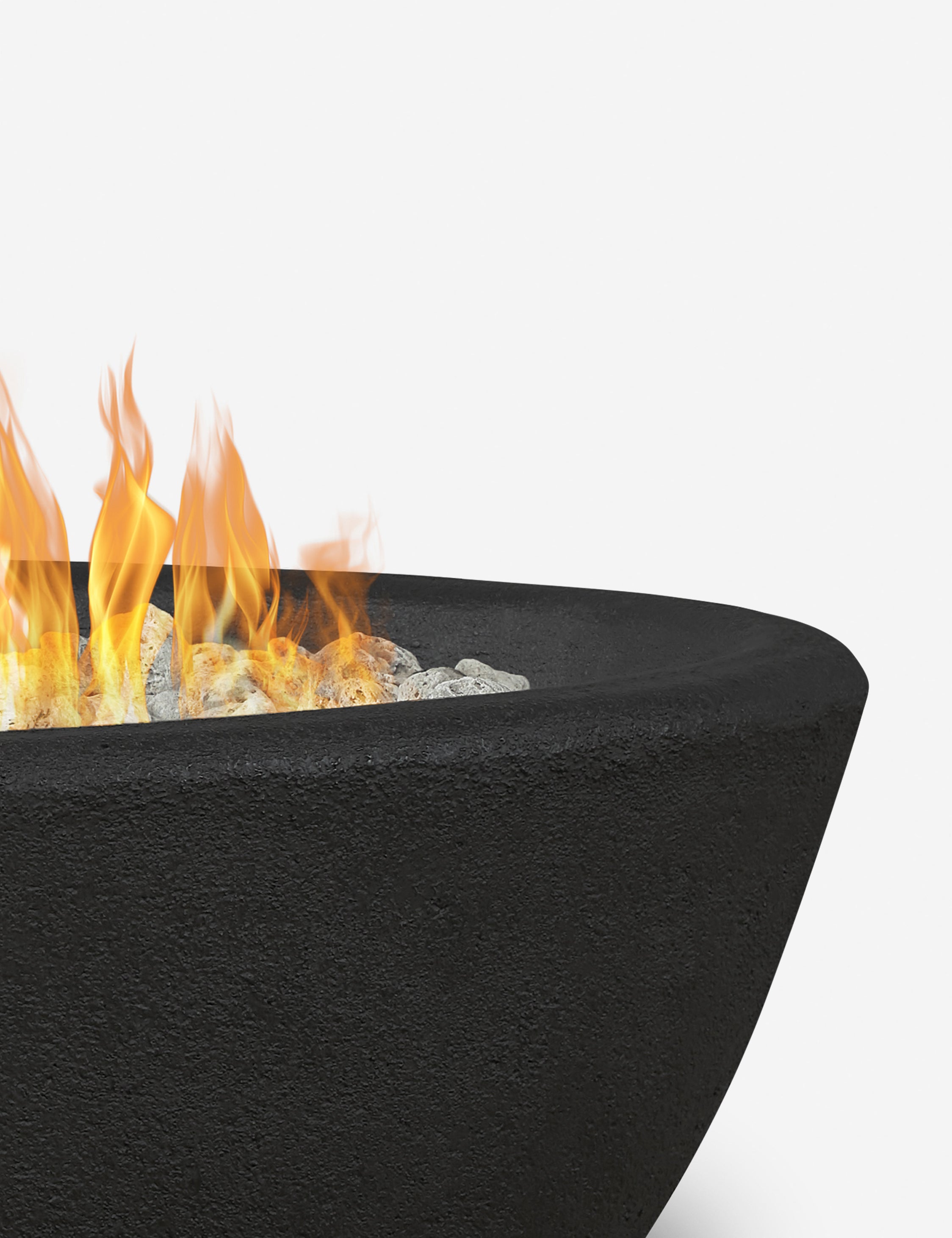 Soft lines and a rustic finish make this fire bowl a warm and stylish focal point for your outdoor space. Gather around with friends or enjoy a quiet night to yourself with this inviting patio feature. Crafted with durable concrete and fitted with a stainless steel burner featuring push-button ignition, this fire table pit offers seamless functionality in a lasting design.