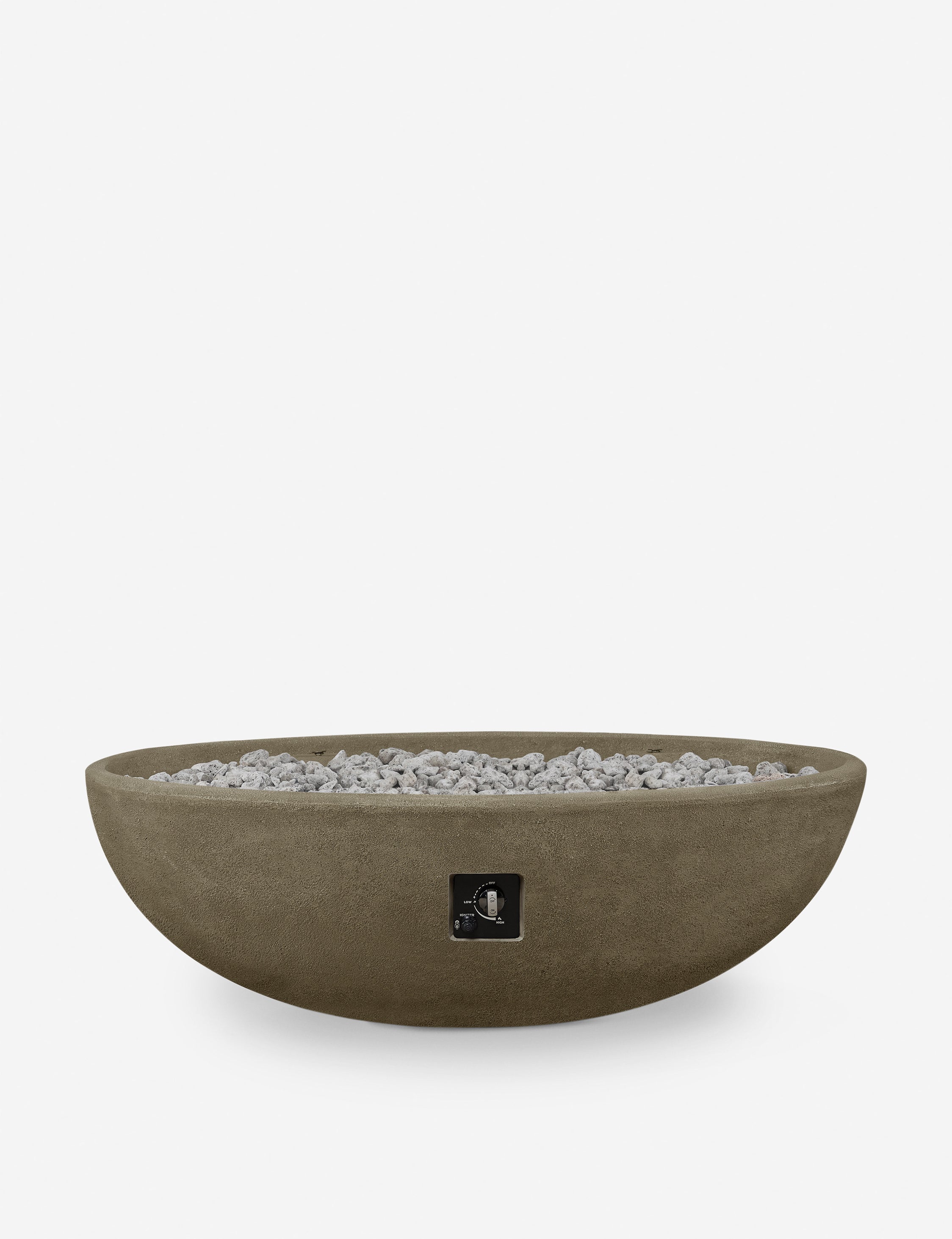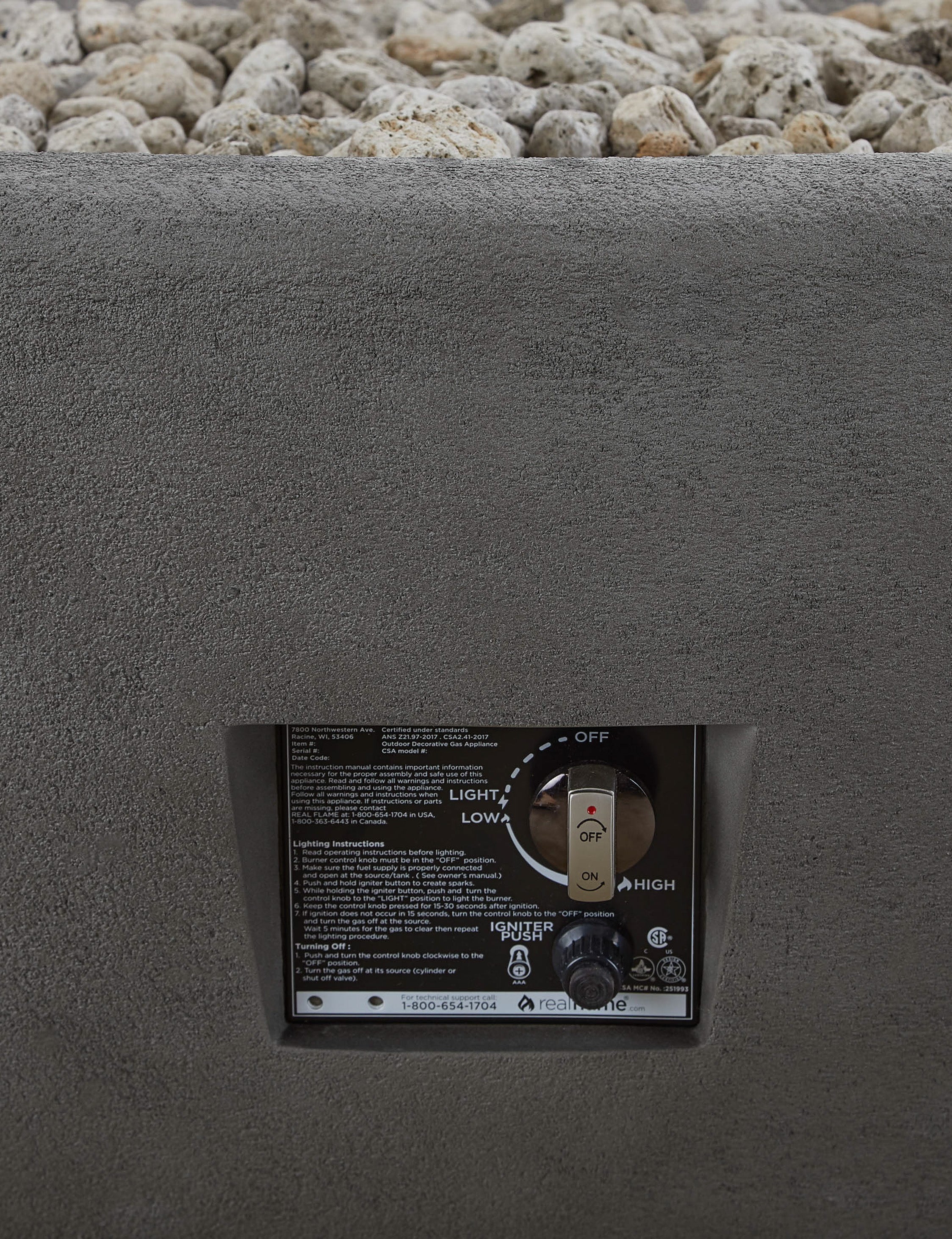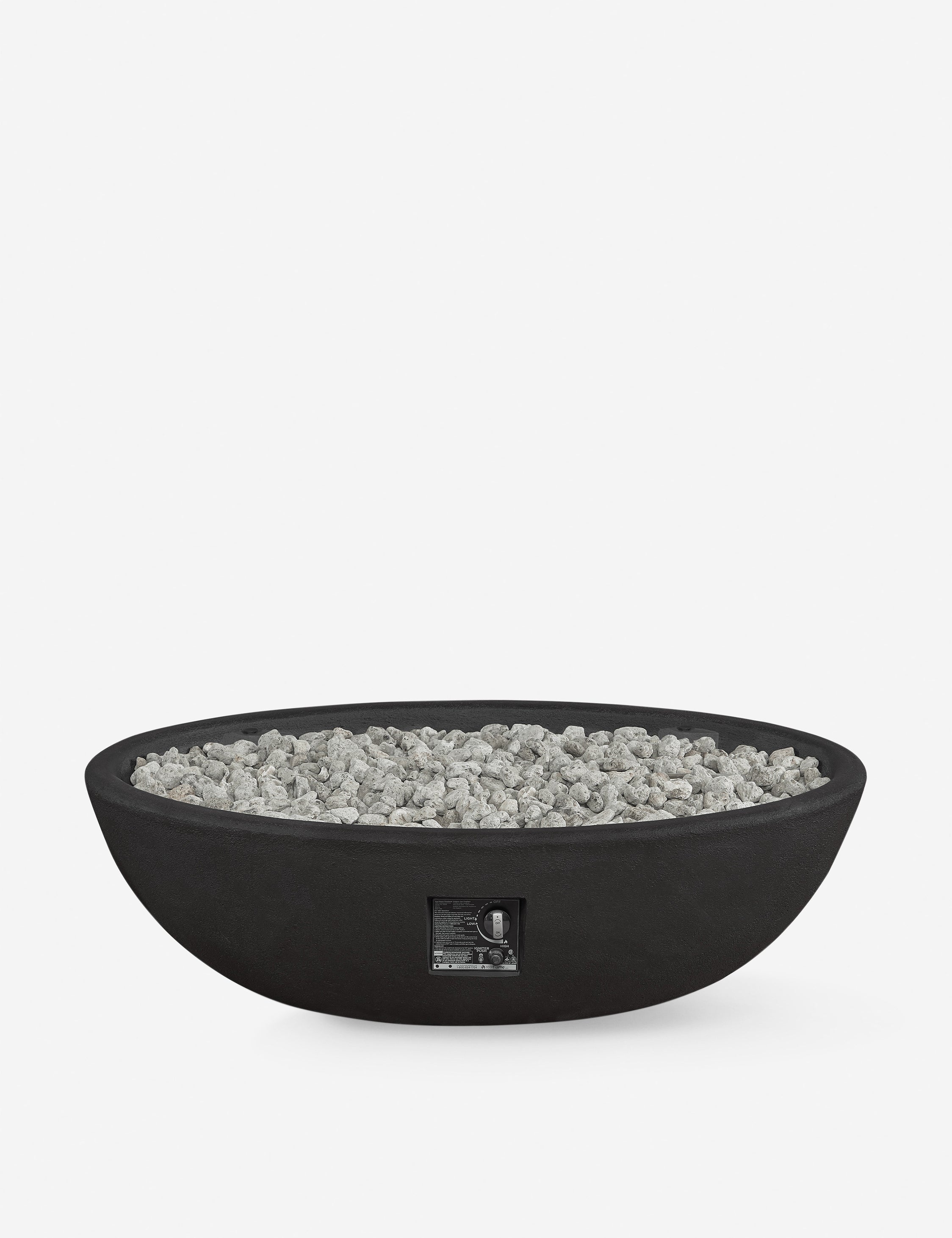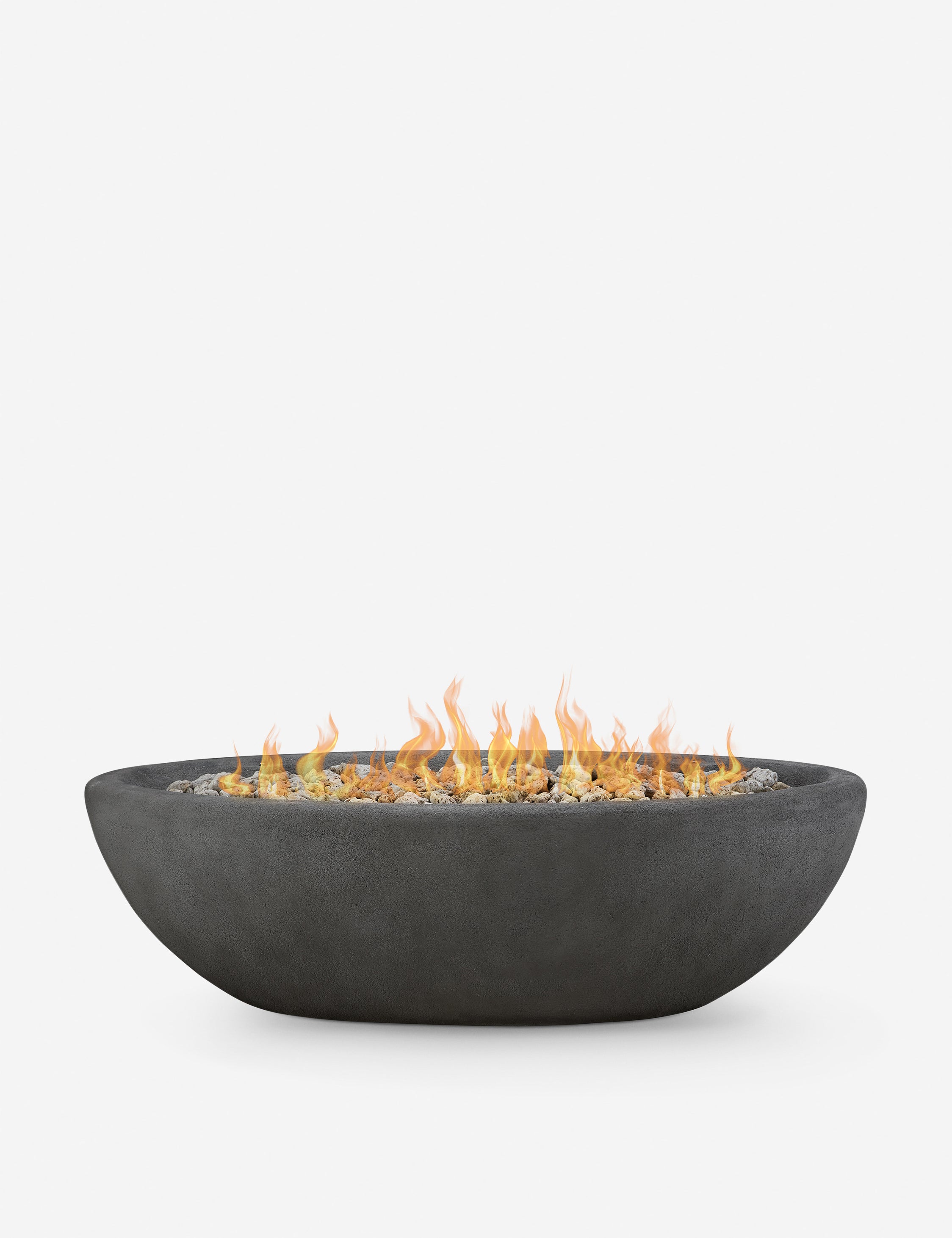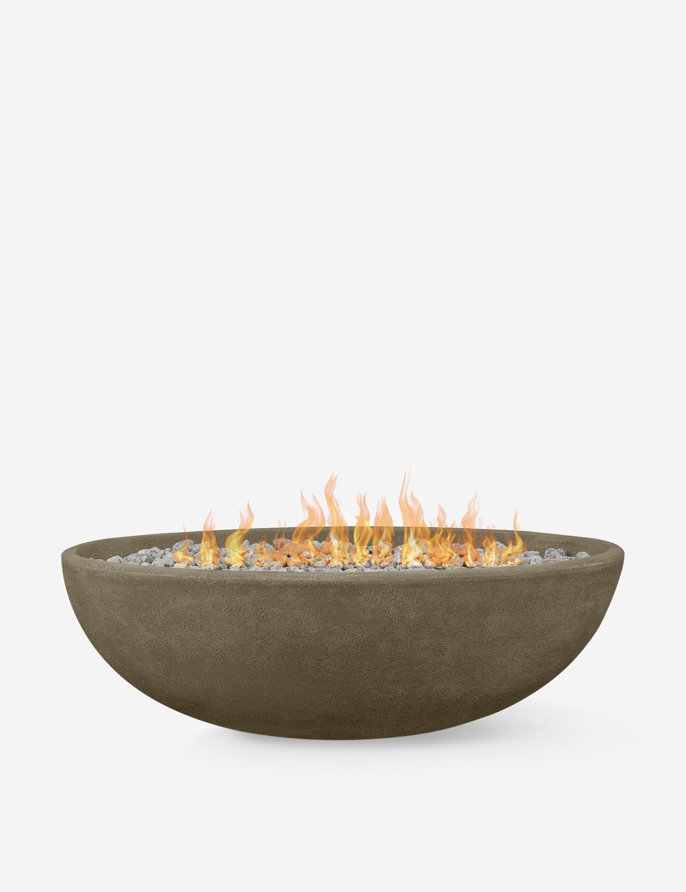 Soft lines and a rustic finish make this fire bowl a warm and stylish focal point for your outdoor space. Gather around with friends or enjoy a quiet night to yourself with this inviting patio feature. Crafted with durable concrete and fitted with a stainless steel burner featuring push-button ignition, this fire table pit offers seamless functionality in a lasting design.