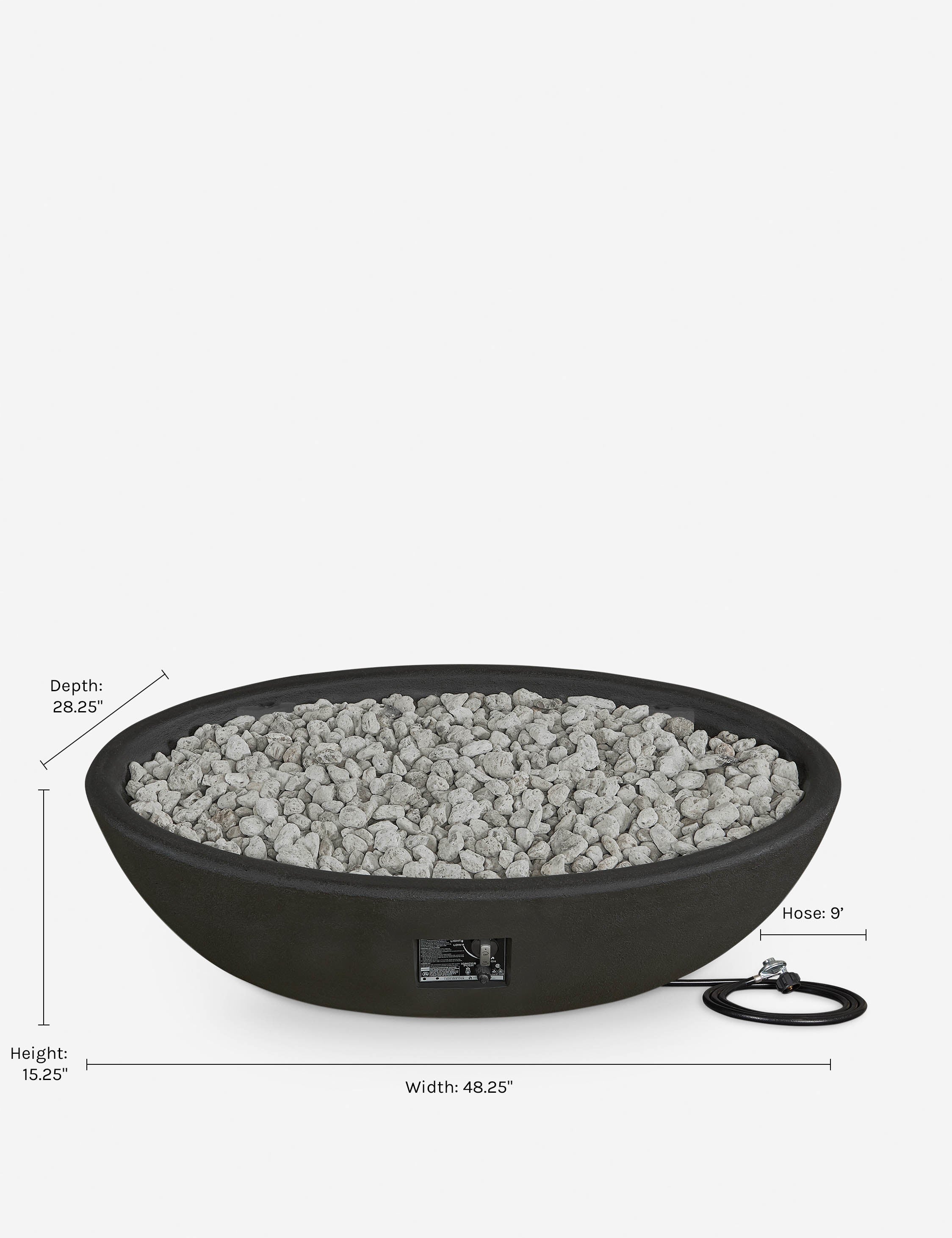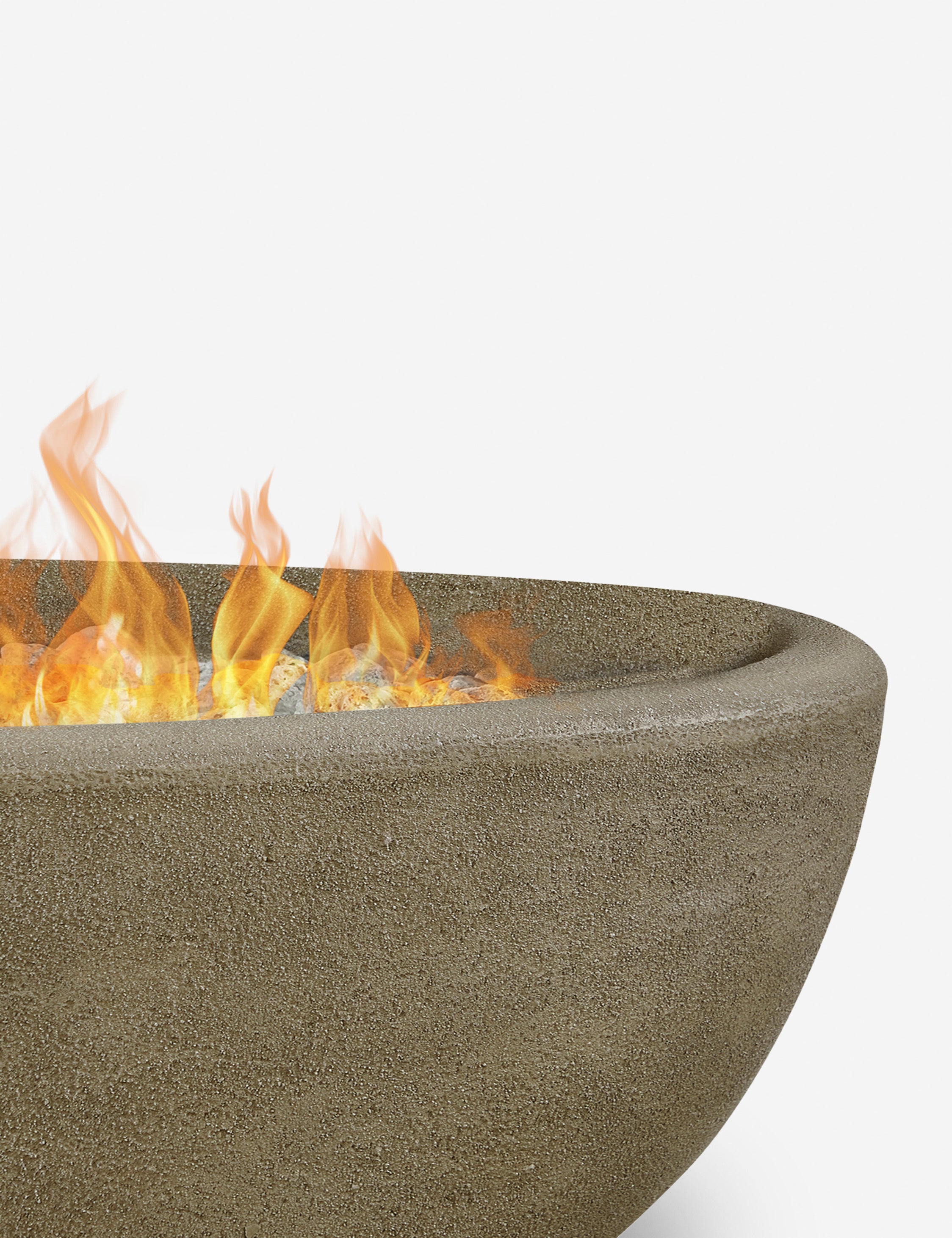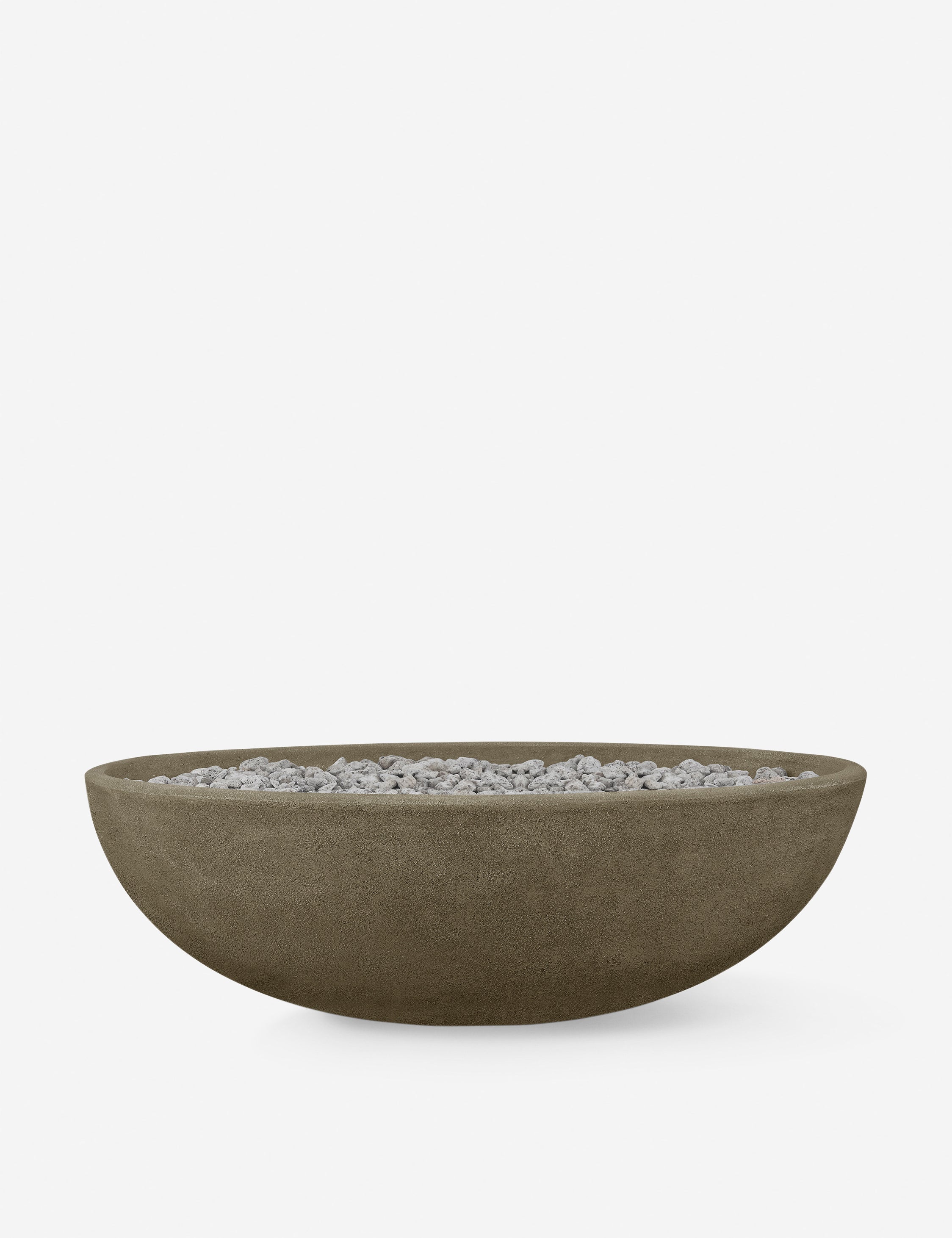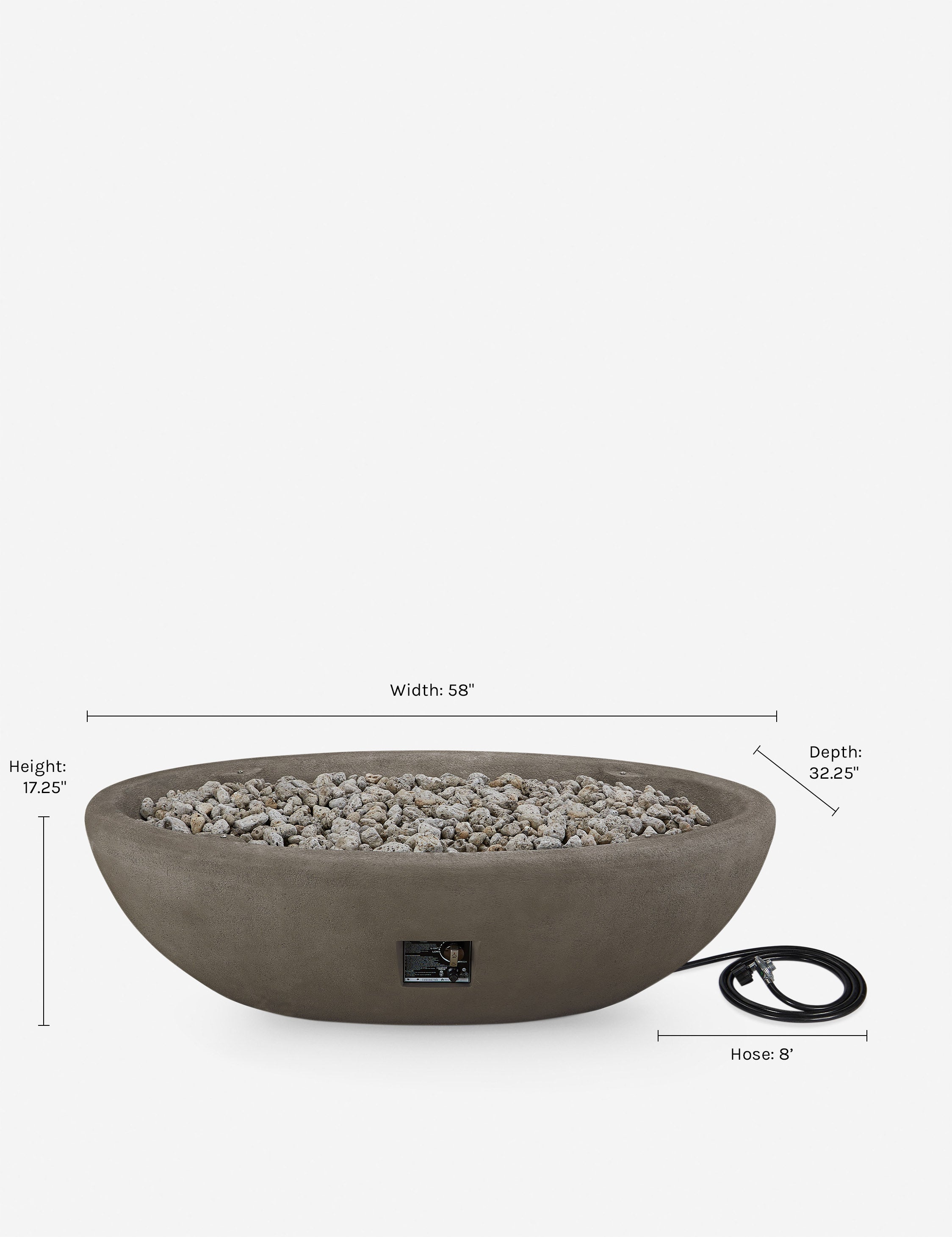 Soft lines and a rustic finish make this fire bowl a warm and stylish focal point for your outdoor space. Gather around with friends or enjoy a quiet night to yourself with this inviting patio feature. Crafted with durable concrete and fitted with a stainless steel burner featuring push-button ignition, this fire table pit offers seamless functionality in a lasting design.