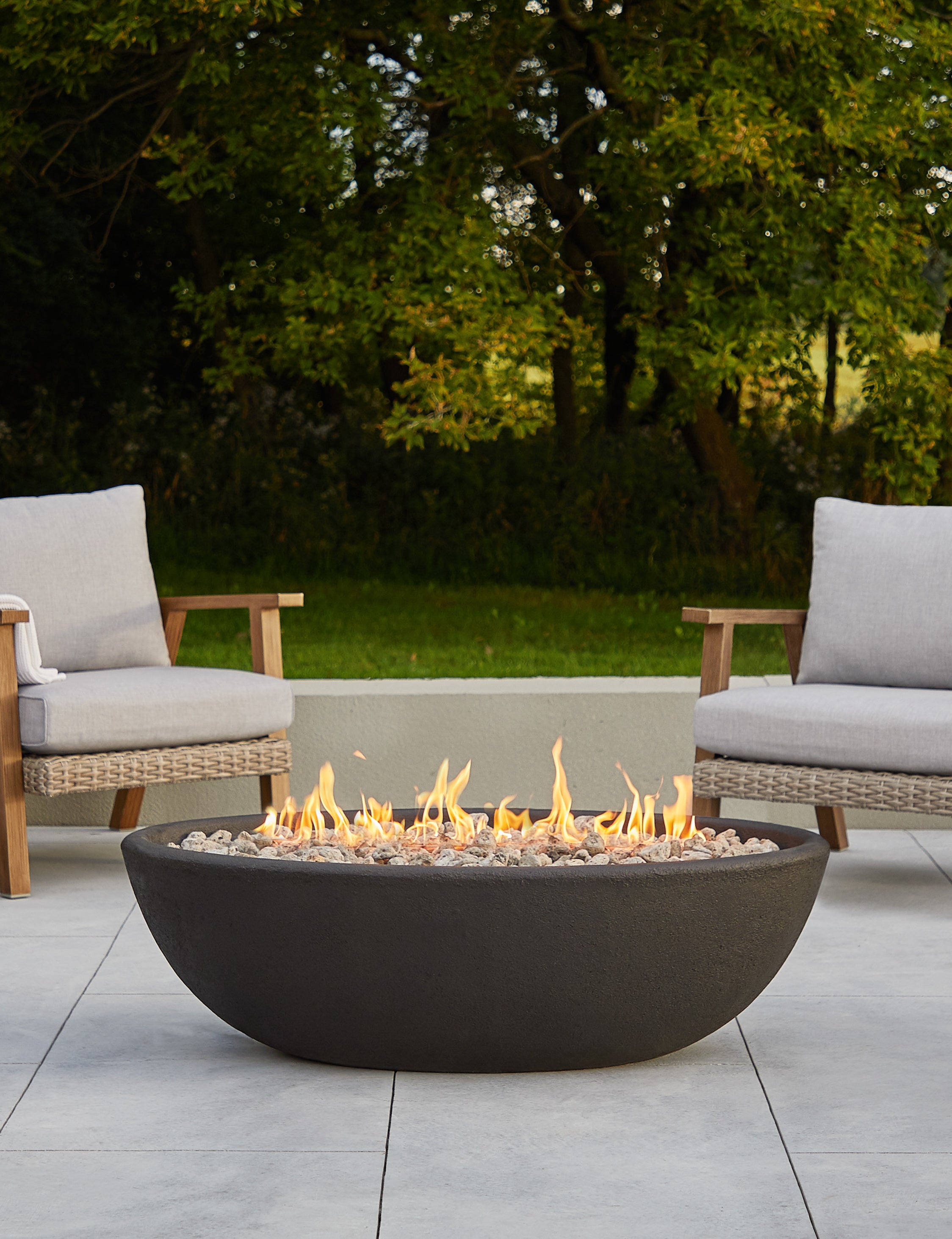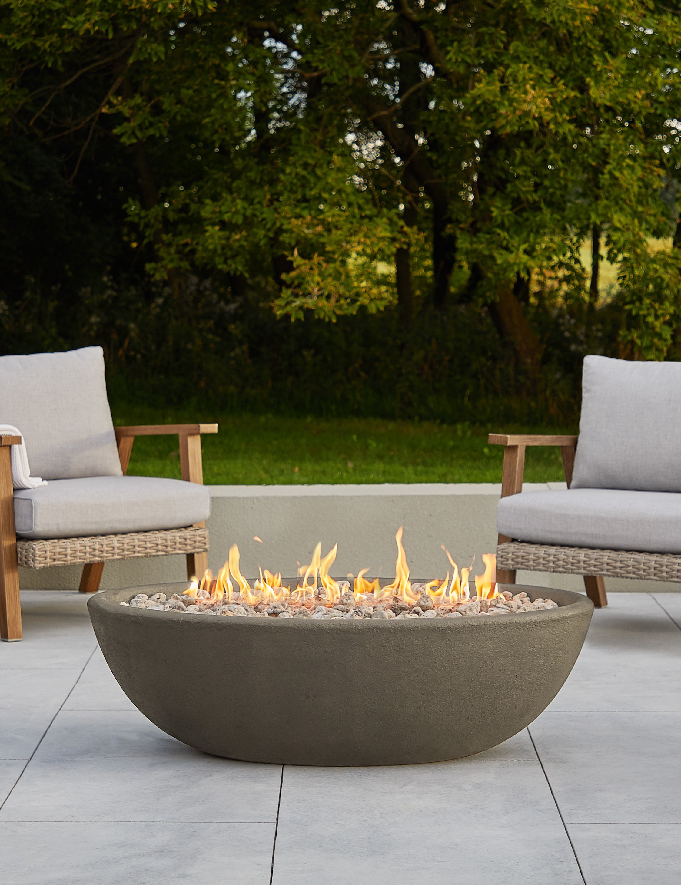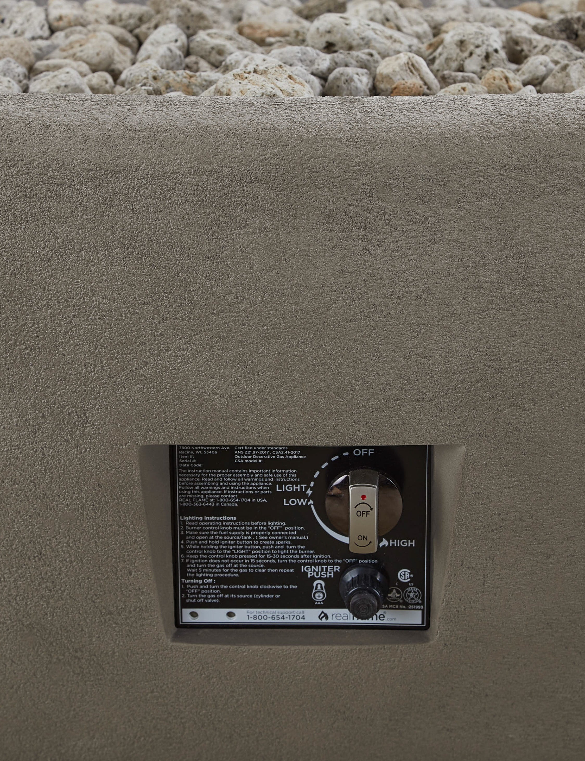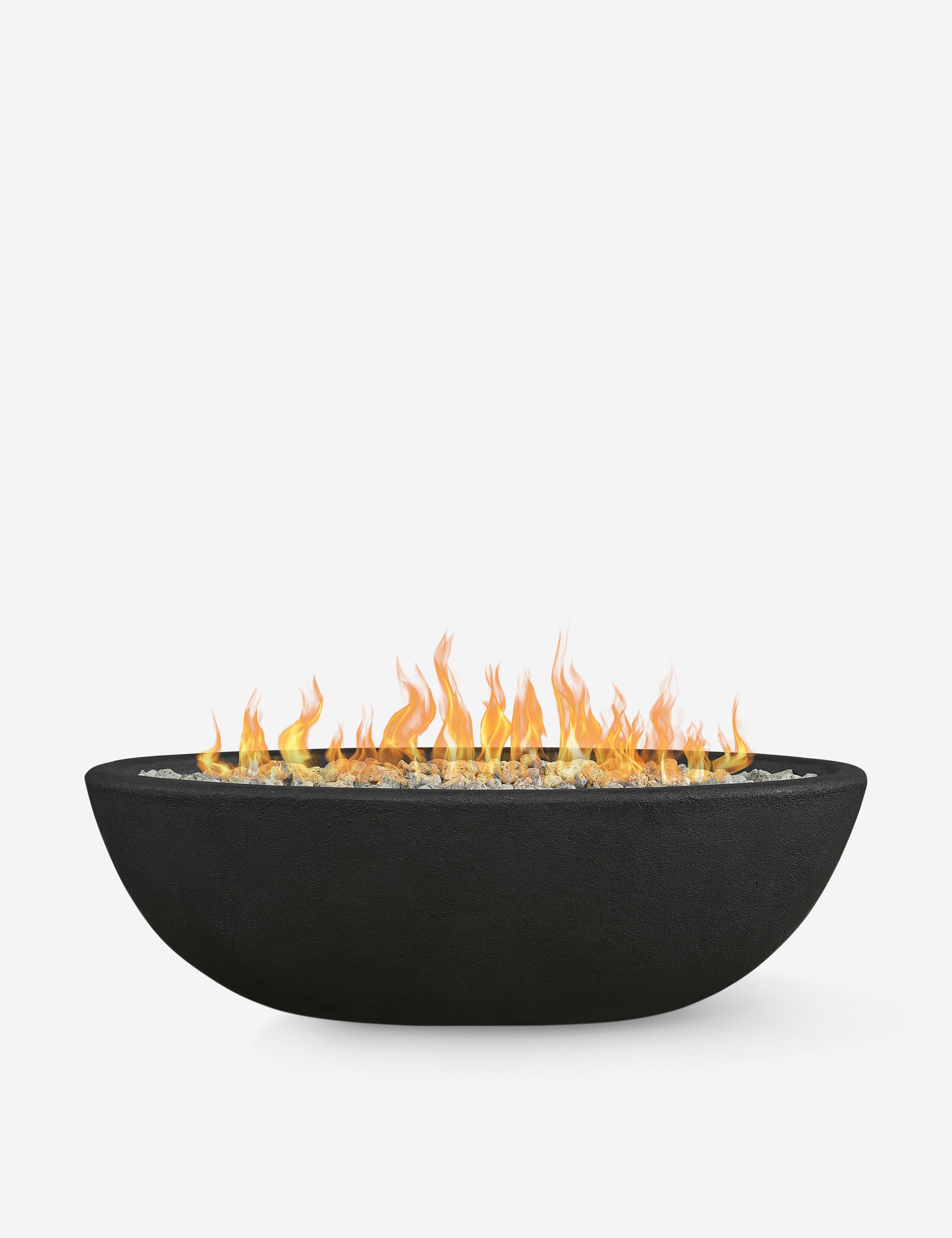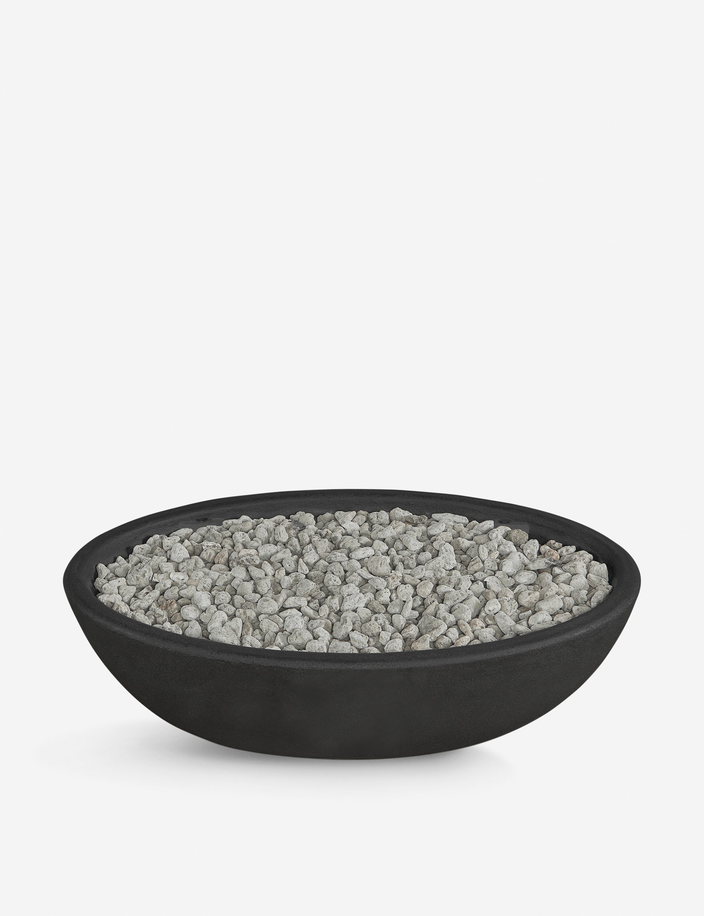 Soft lines and a rustic finish make this fire bowl a warm and stylish focal point for your outdoor space. Gather around with friends or enjoy a quiet night to yourself with this inviting patio feature. Crafted with durable concrete and fitted with a stainless steel burner featuring push-button ignition, this fire table pit offers seamless functionality in a lasting design.