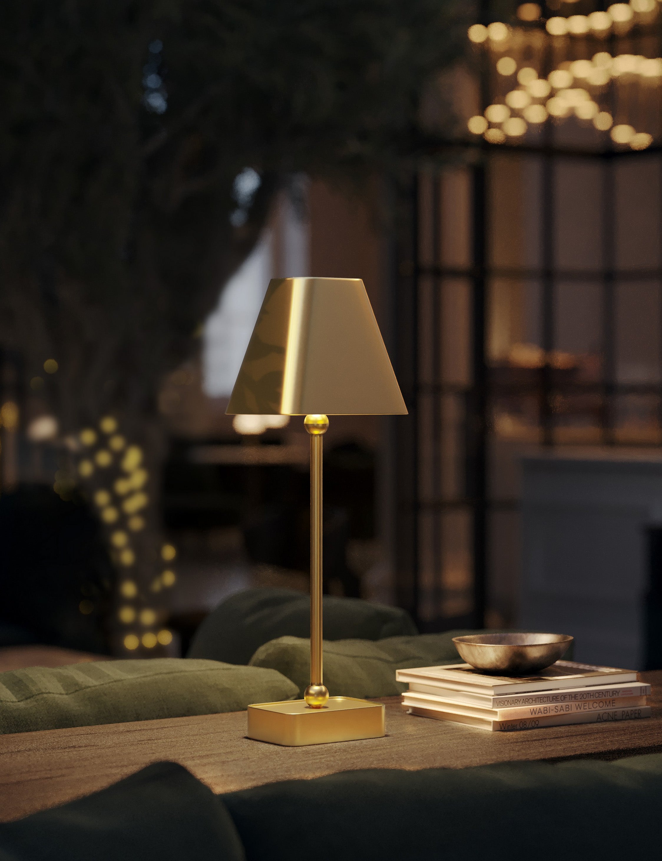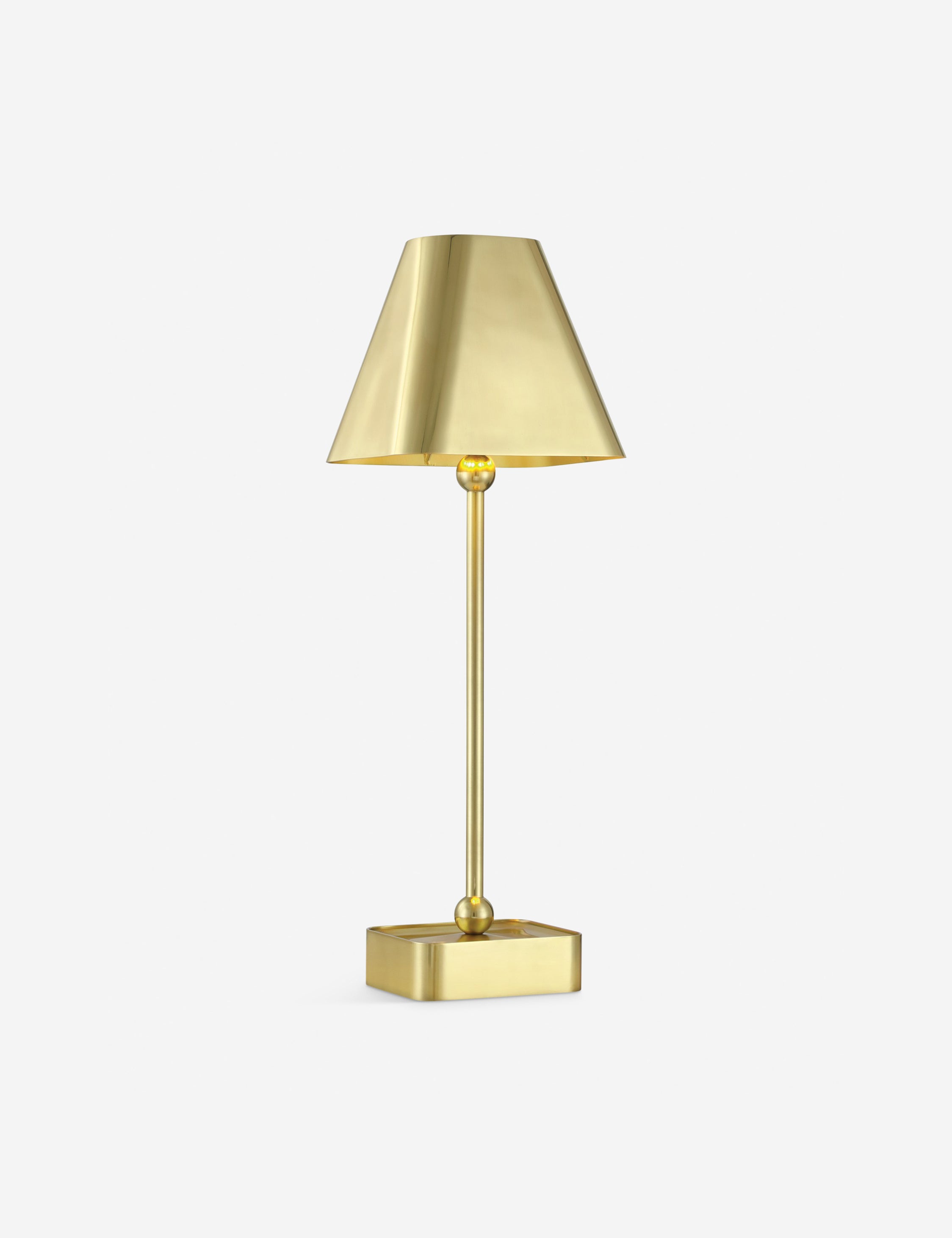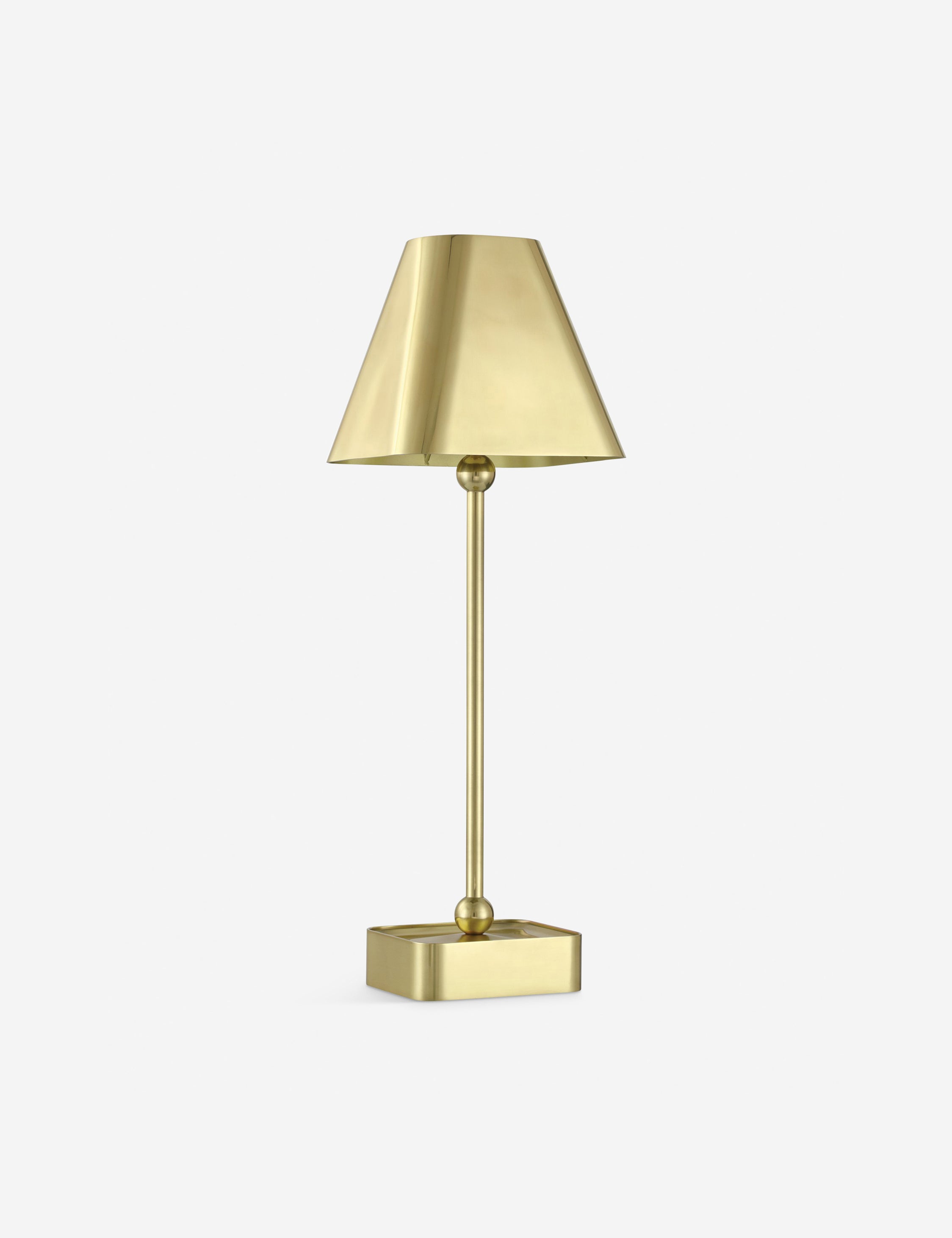 Hedley offers portable light in brass. A seamless finish covers the lamp’s petite silhouette, featuring ball finials at either end of the stem for a look that’s simply chic. With its rechargeable design, you can style this cordless lamp anywhere—the perfect touch of table light to elevate your style.