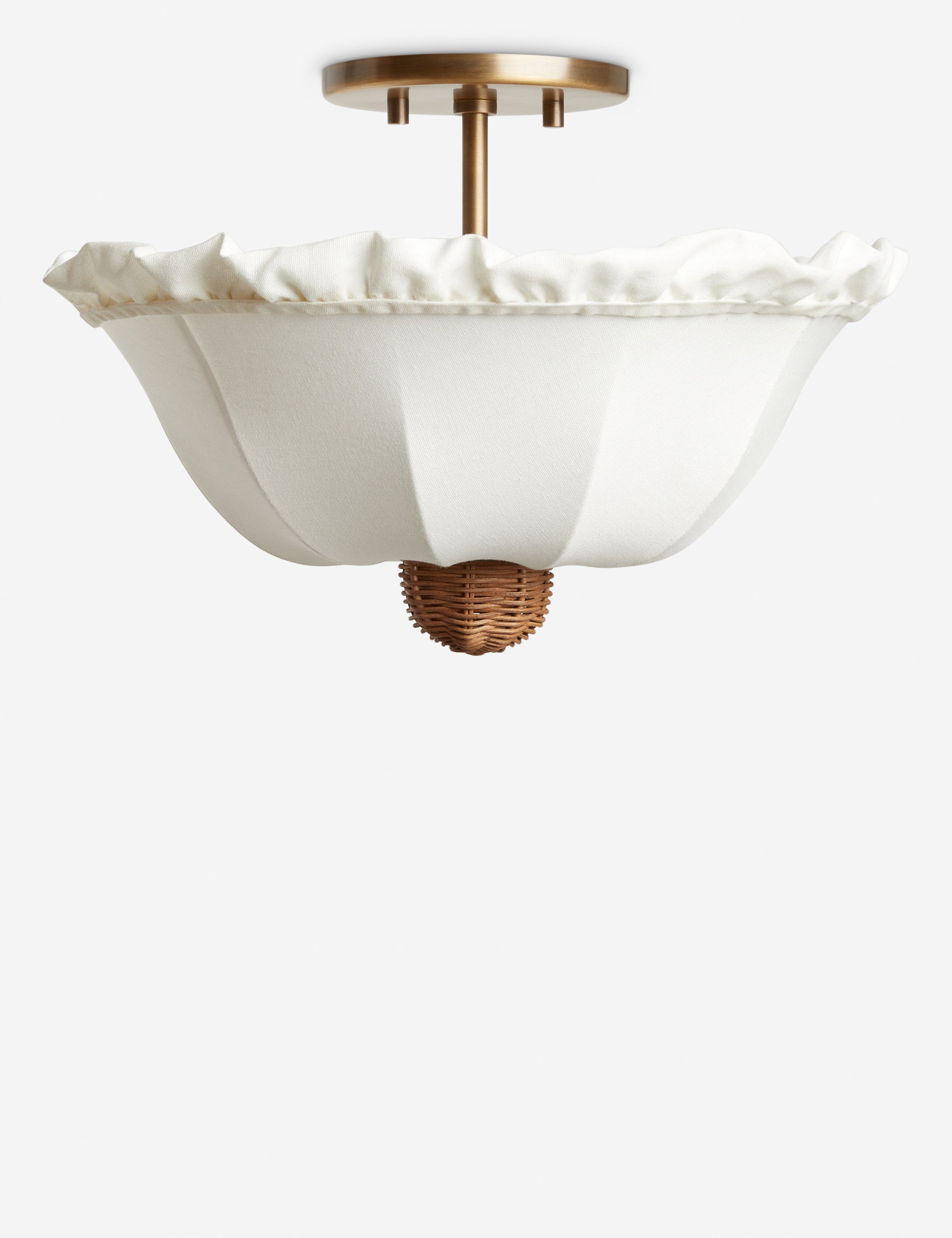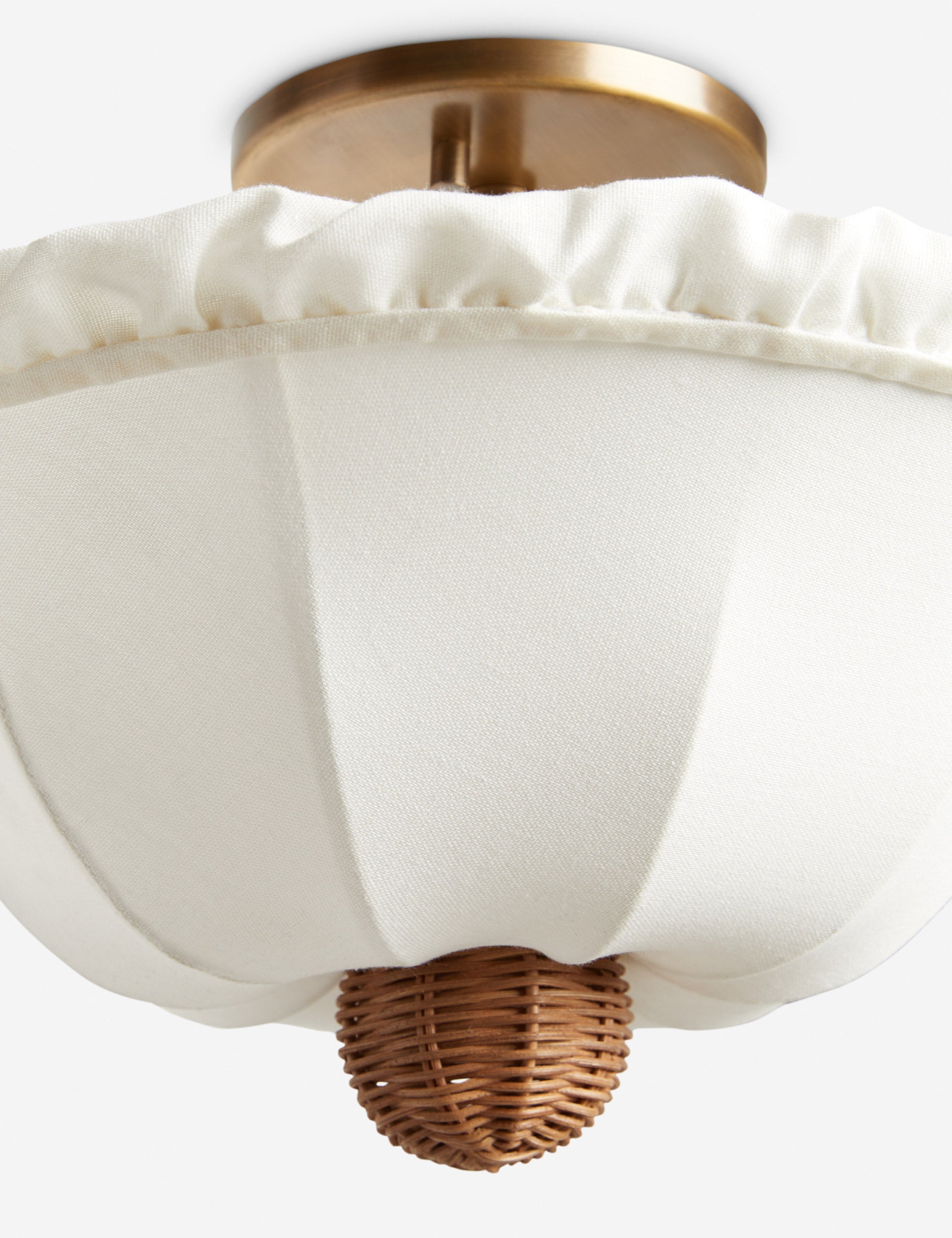 Helmi pairs touches of wicker with a parasol-like shade for an airy, timeless charm. The flush mount light styles an elegant silhouette with a compact profile perfect for small-space design. This ceiling light is from our exclusive Sarah Sherman Samuel collaboration and features all the trademarks of the designer's warm, edited style.