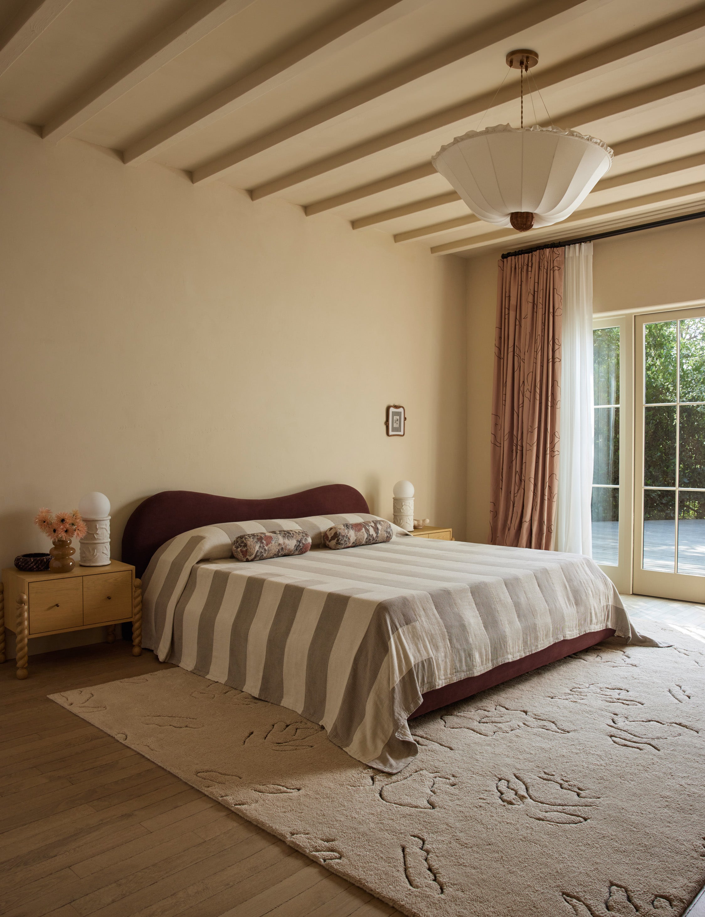 Helmi pairs touches of wicker with a parasol-like shade for an airy, timeless charm. The pendant offers a fresh look overhead with an elegant silhouette that floats over the room. This hanging light is from our exclusive Sarah Sherman Samuel collaboration and features all the trademarks of the designer's warm, edited style.