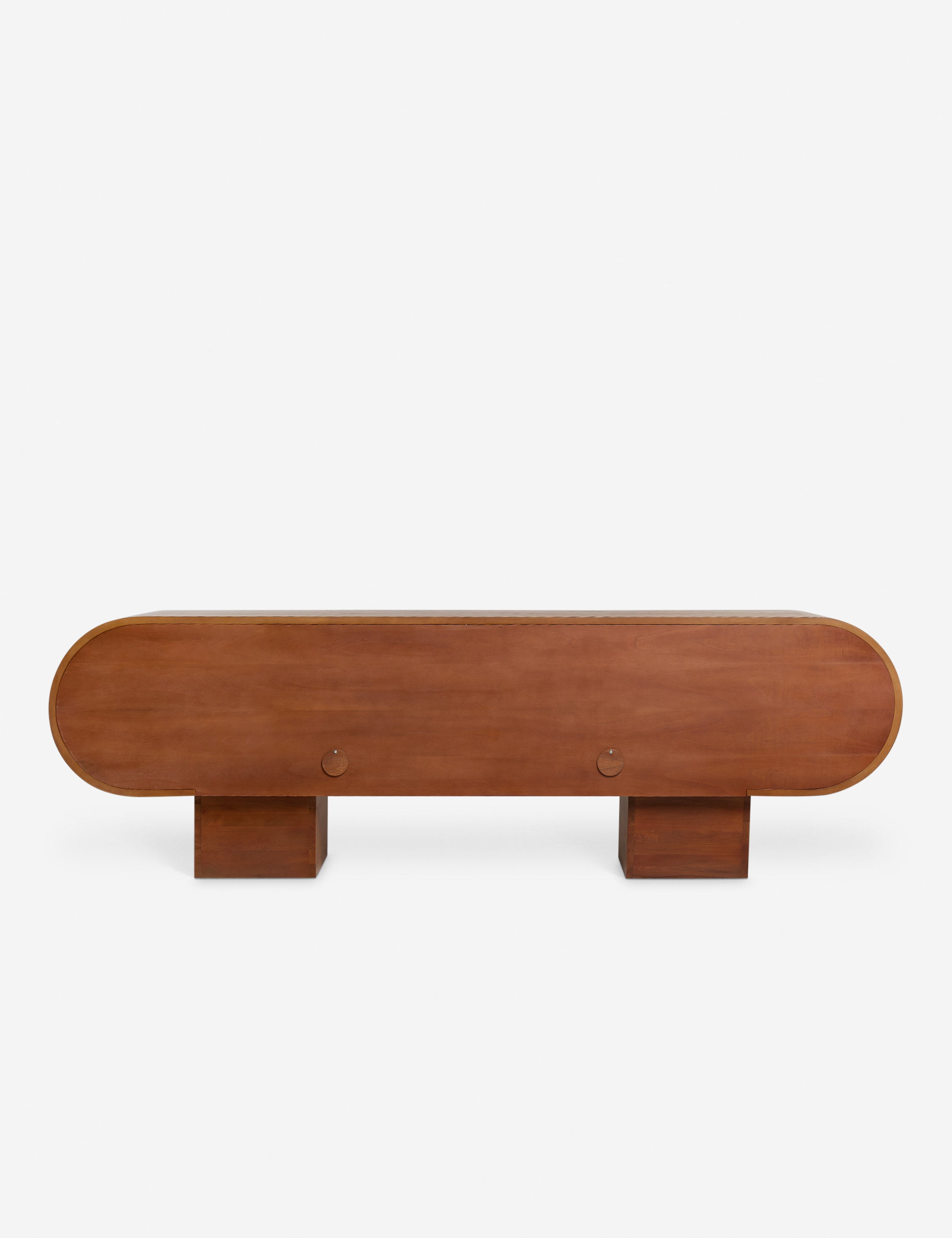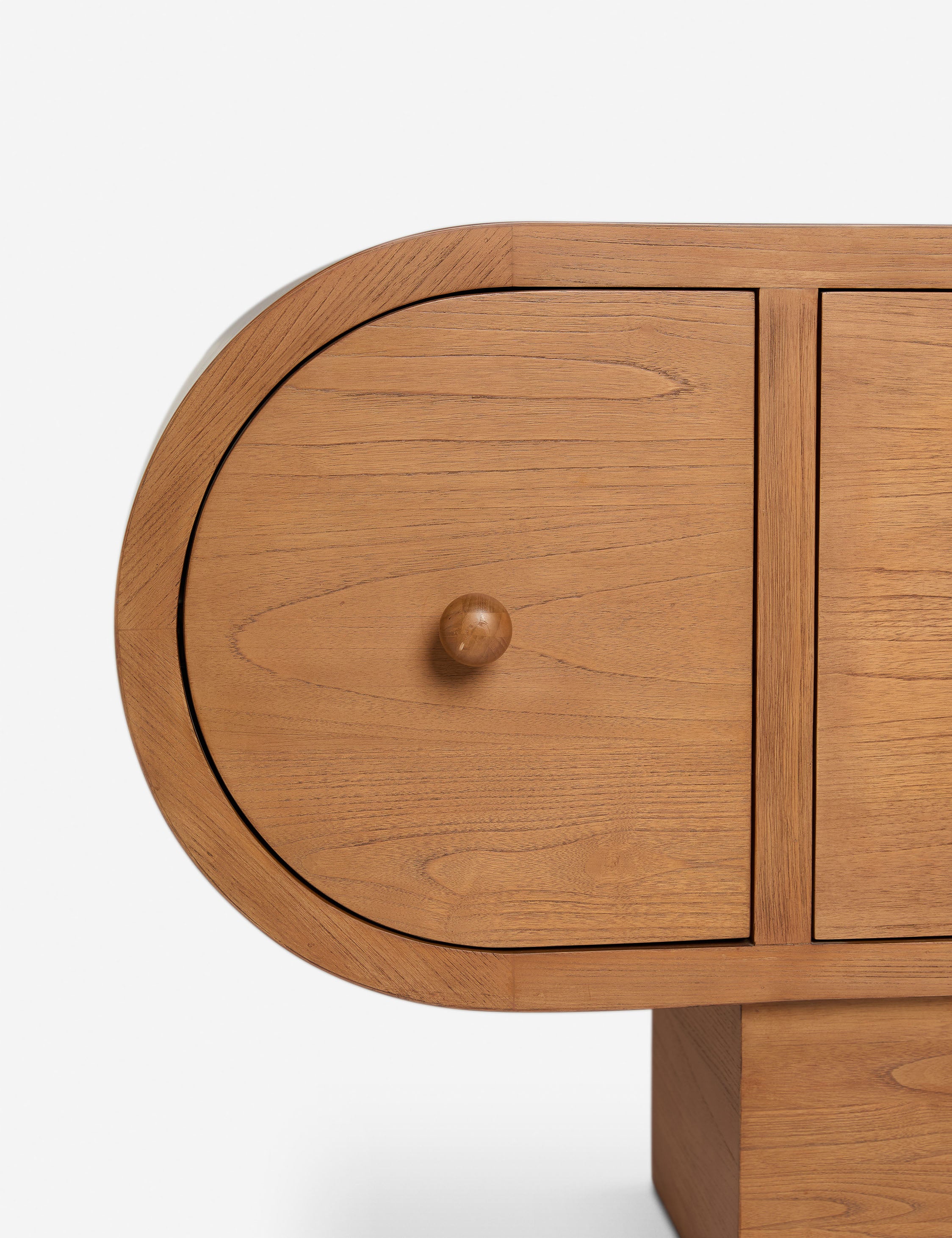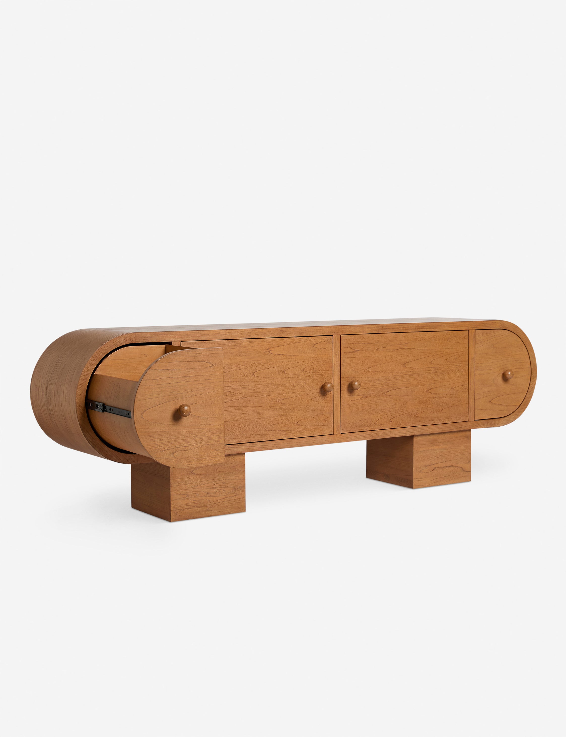 The Laughlin sideboard brings a fresh touch of sophistication to your dining room or lounge. The pill-shaped silhouette offers retro inspiration with soft close drawers for a strikingly modern design that can serve as a sideboard or media console. This piece is from our exclusive Sarah Sherman Samuel collaboration and features all the trademarks of her warm, edited style.