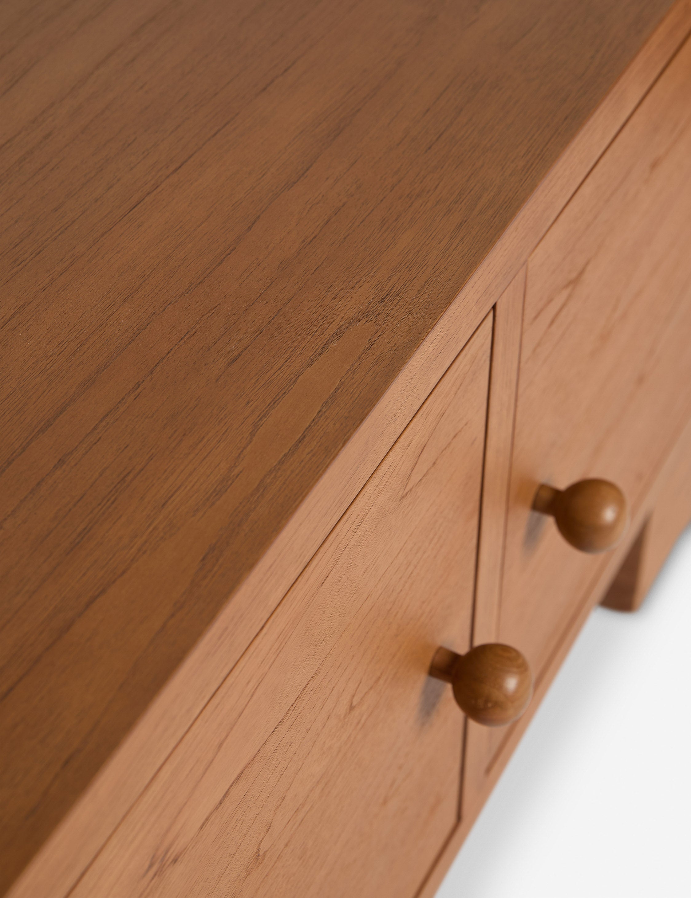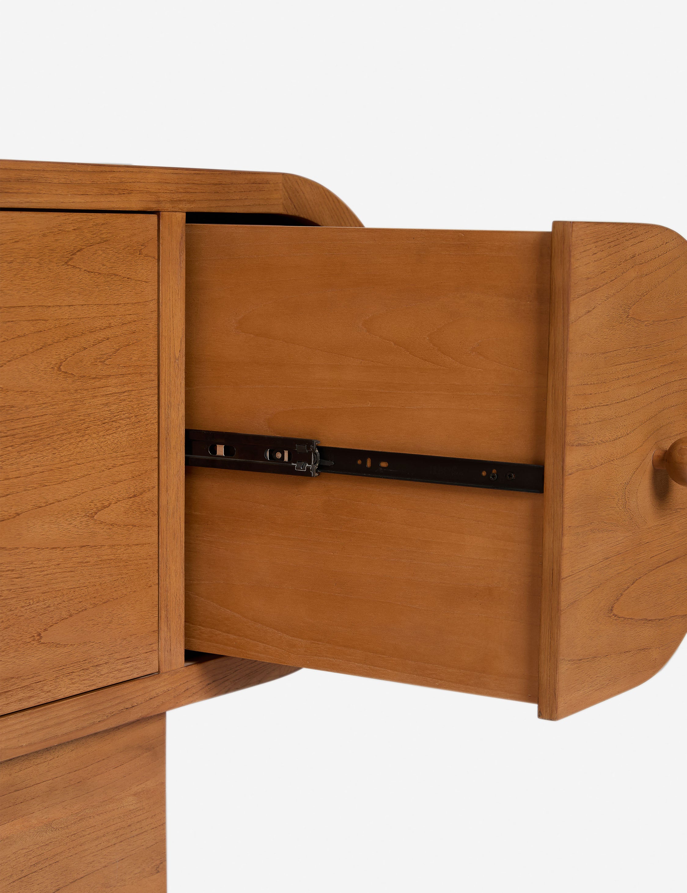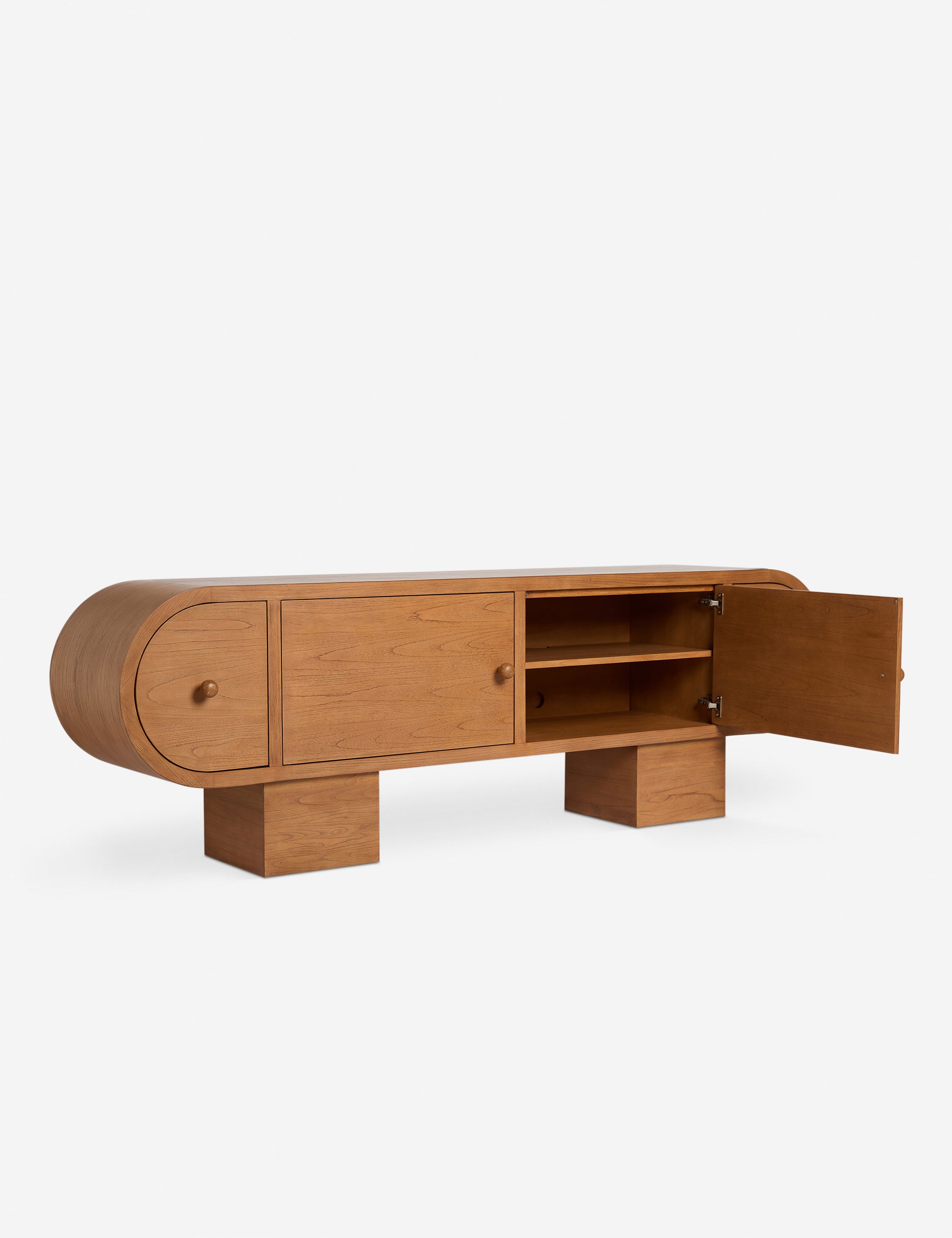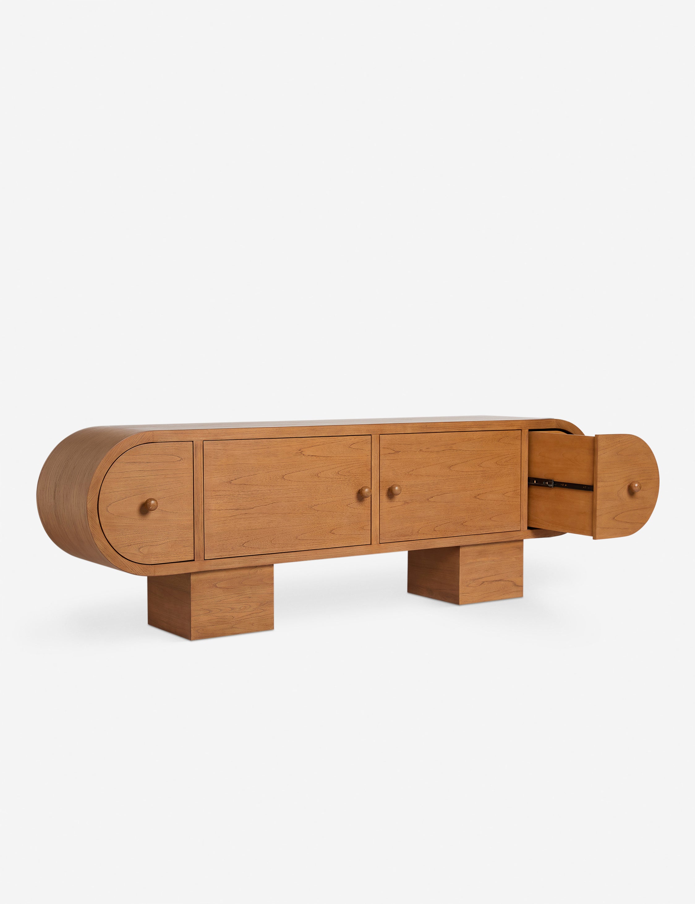 The Laughlin sideboard brings a fresh touch of sophistication to your dining room or lounge. The pill-shaped silhouette offers retro inspiration with soft close drawers for a strikingly modern design that can serve as a sideboard or media console. This piece is from our exclusive Sarah Sherman Samuel collaboration and features all the trademarks of her warm, edited style.