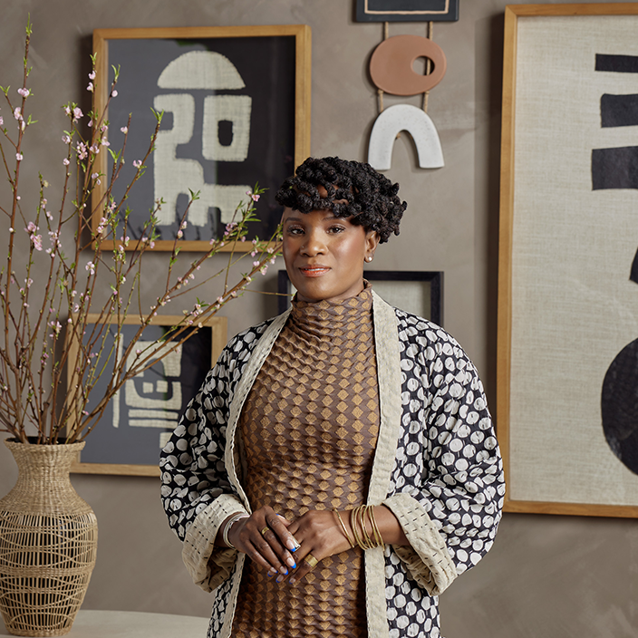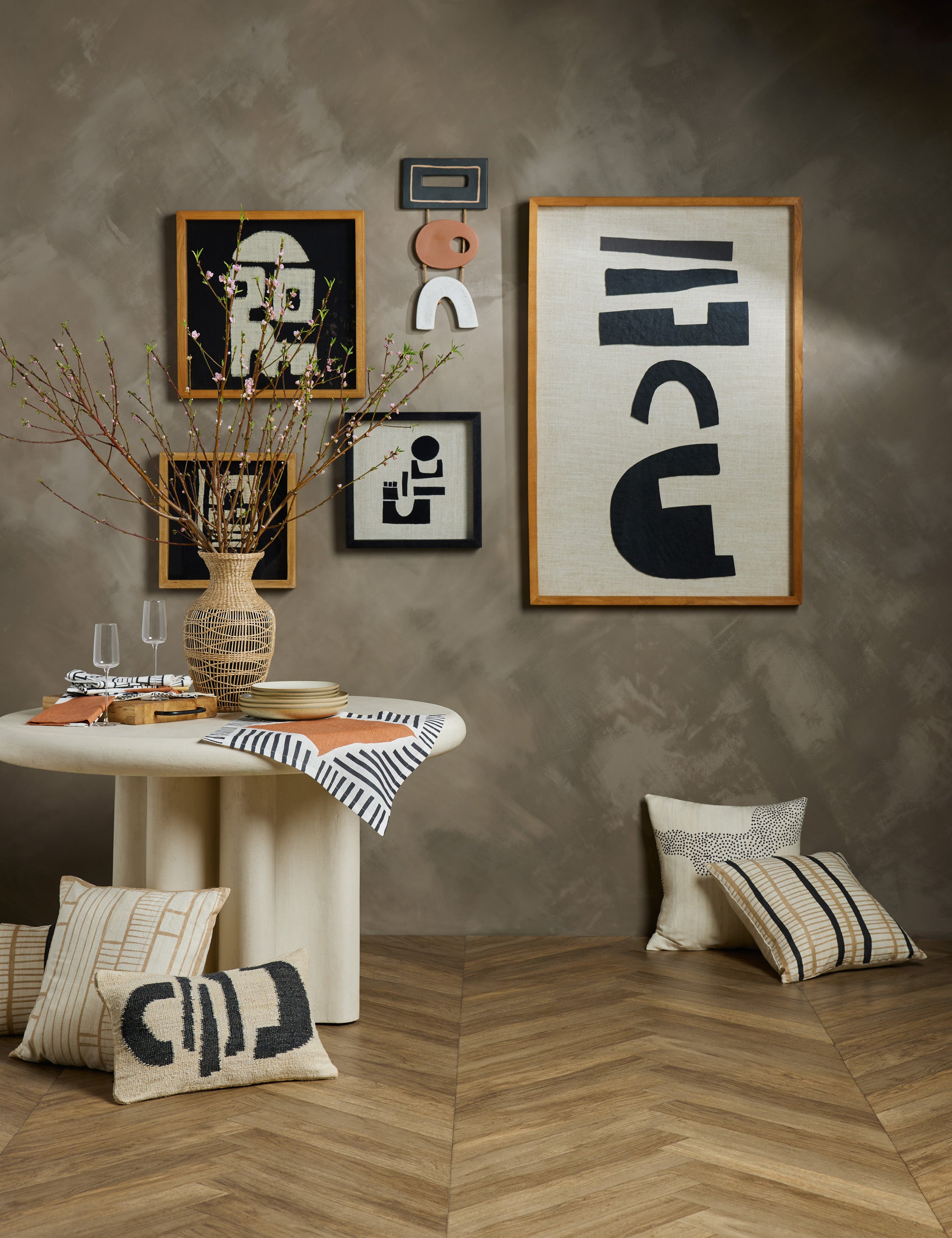 Hadiya Williams is the founder and artist behind Black Pepper Paperie Co. a Washington, DC-based mix-media art + design studio and lifestyle brand. In her exclusive collection for Brightselects, she uses clay, textiles, and other natural materials to tell visual stories inspired by the culture of the African diaspora. This capsule of wall art, pillows, and tabletop textiles will add a touch of bold pattern to your space.