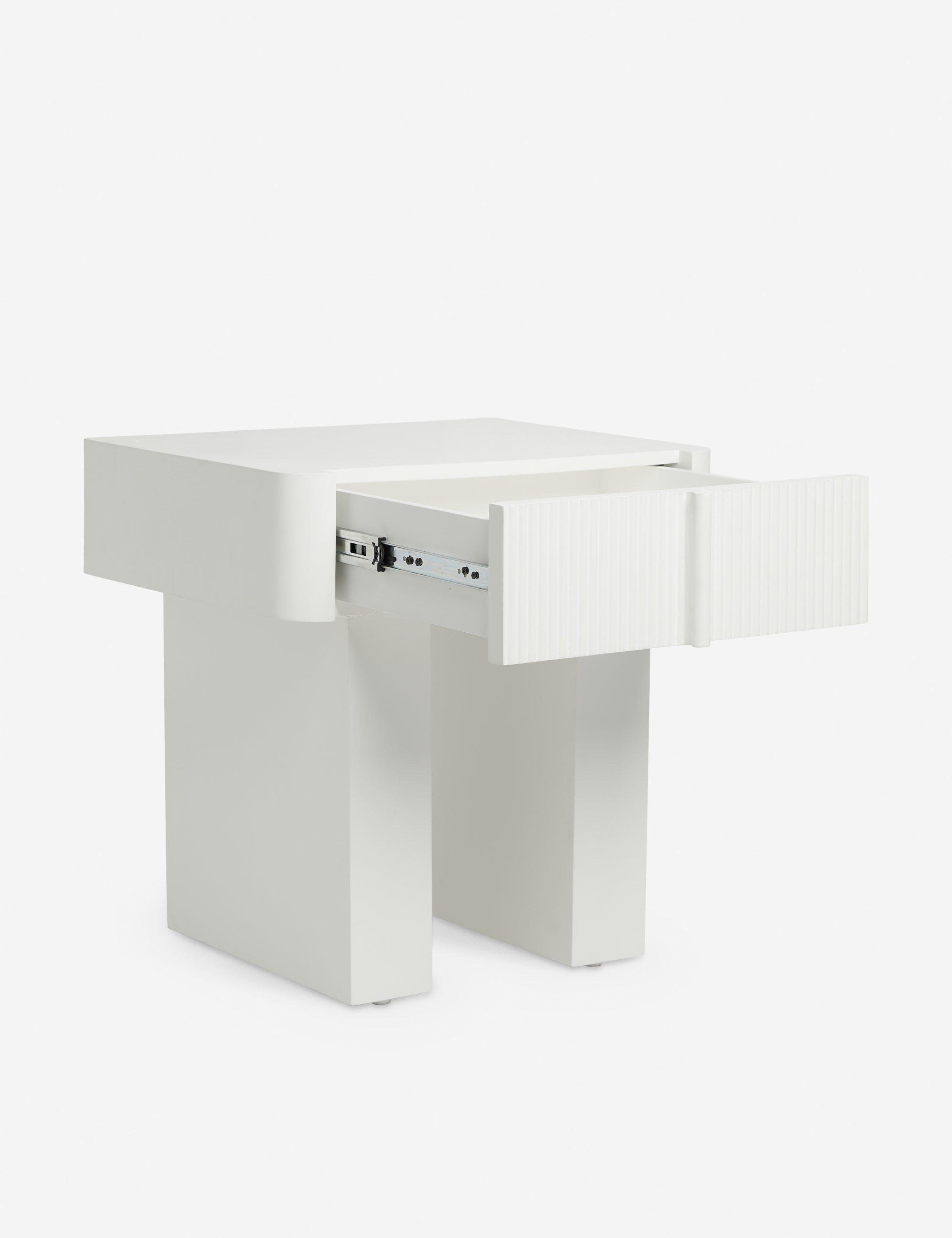 The Merrit nightstand features a deco-inspired woodwork construction that pairs crisp, curving lines with ridged detailing and a carved drawer pull. The drawer provides generous storage for a practical yet stylish bedside table. This piece is from our exclusive Sarah Sherman Samuel collaboration and features all the trademarks of her warm, edited style.