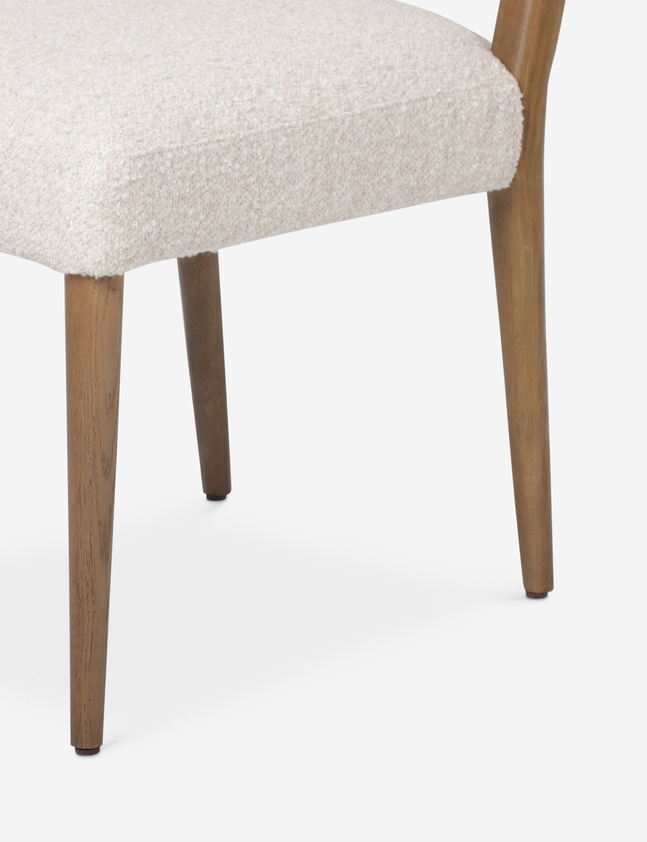 With its arched backrest and textural performance upholstery, this dining chair styles a plushly tailored look. The open-back silhouette adds a lightness that contrasts its generous padding, all grounded by a warm oak frame—a versatile dining seat that brings comfort and polish to any table.