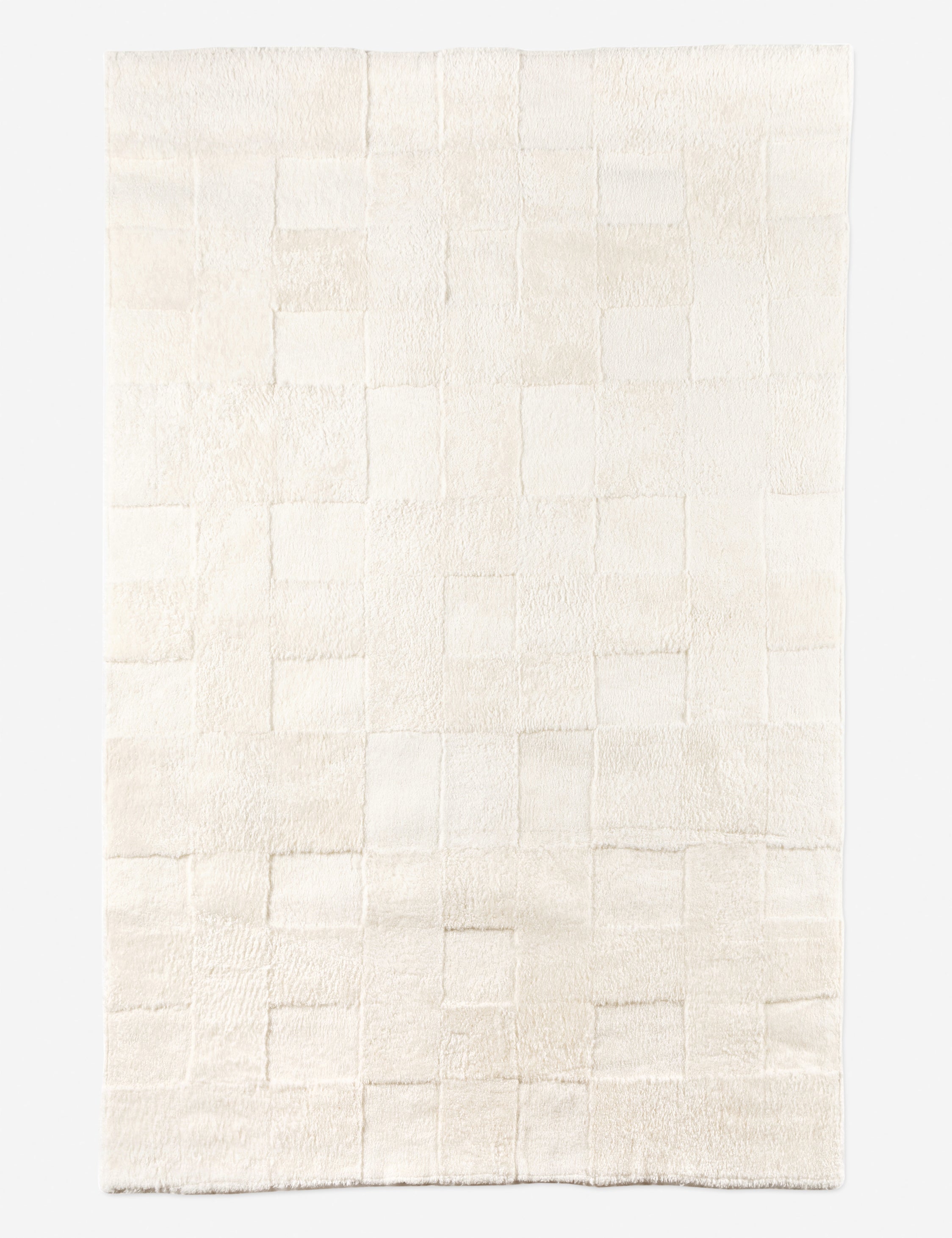 - Shearling is shaved to different heights and stitched together to create a tonal checked pattern for a modern yet classic look. Subtle color variations bring a natural, more organic feel to the rug.