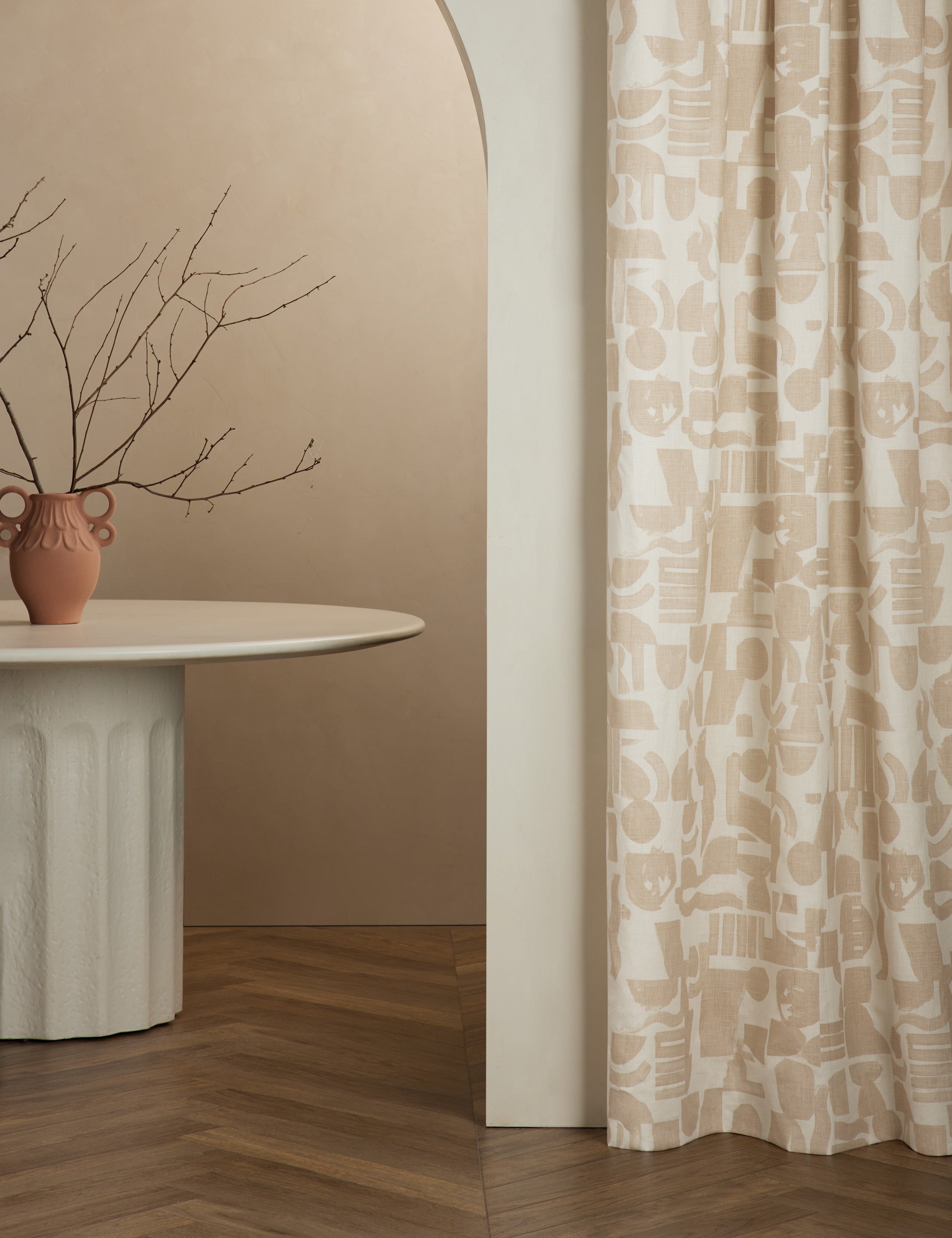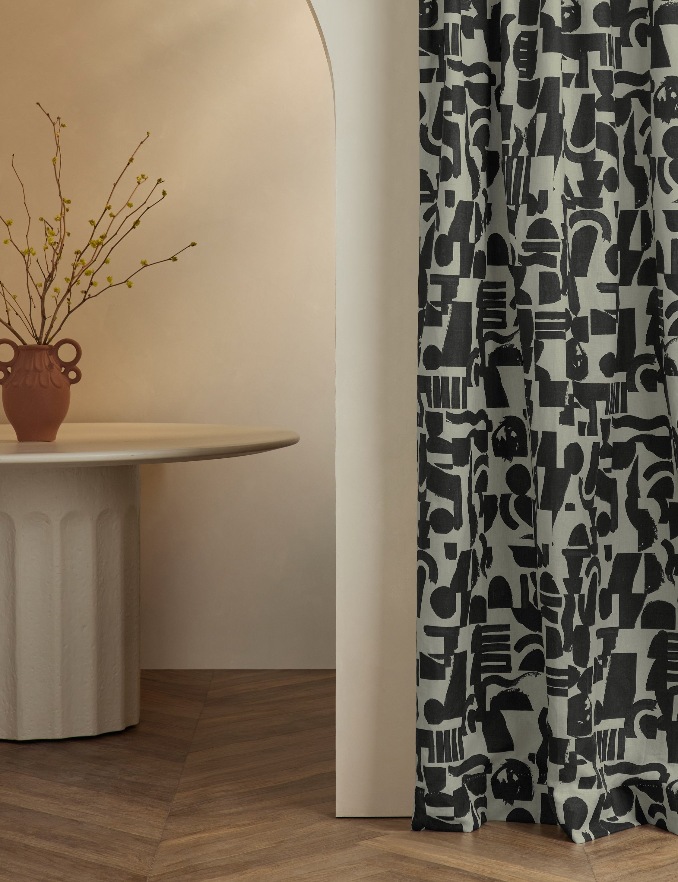 Create a laid-back space with the soft geometry of this curtain design. The organic shapes form an eclectic arrangement, blending effortless style with artful appeal. This window treatment is from our exclusive Sarah Sherman Samuel collaboration and features all the trademarks of her warm, edited style.