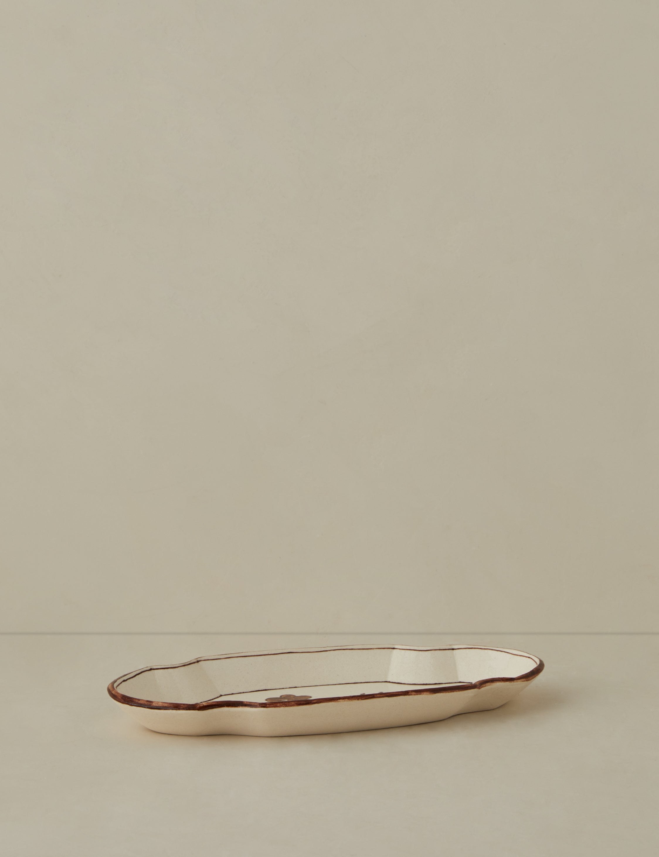 Los Angeles-based ceramicist Stephanie Dawn Matthias's work recalls the traditions of European folk art in small-batch, luxury ceramics—handcrafted and hand-painted to bring a timeless touch to modern interiors. This oval serving dish features a classic shape with a delicate floral design and painted trim. It can be used for dining or decor, but hand-washing is recommended.