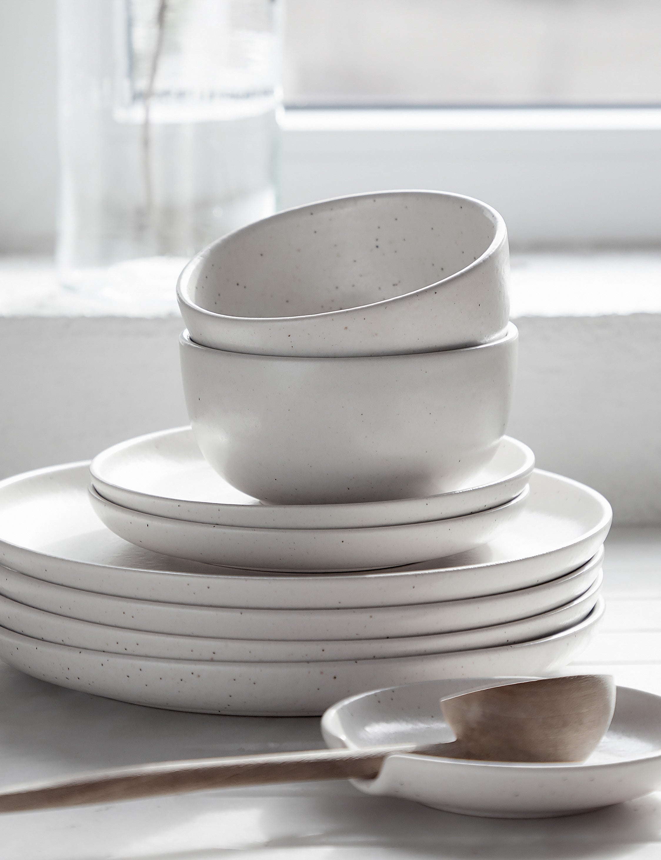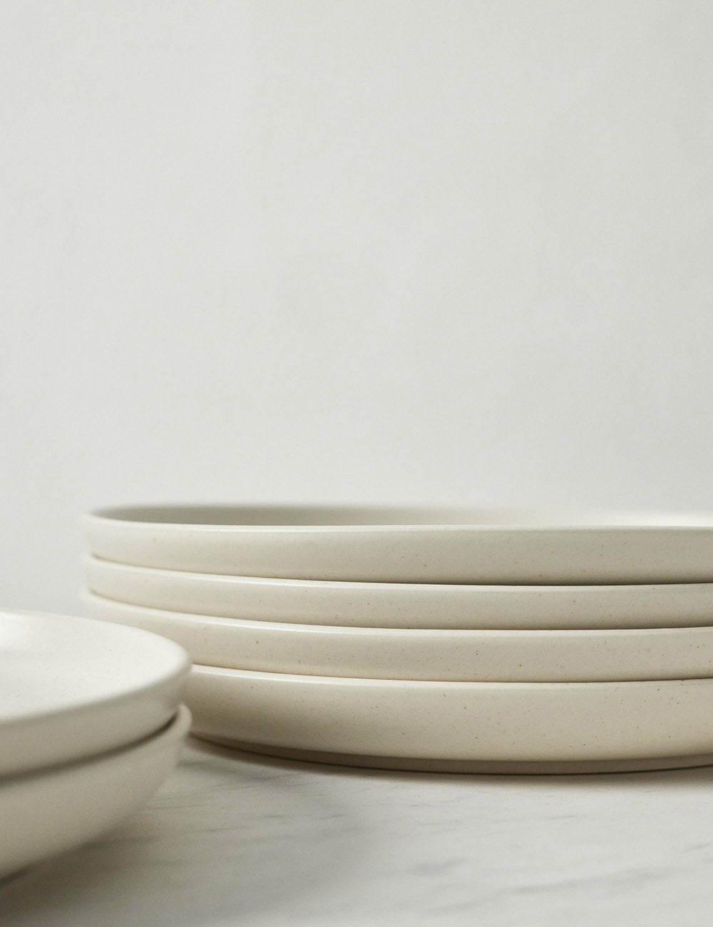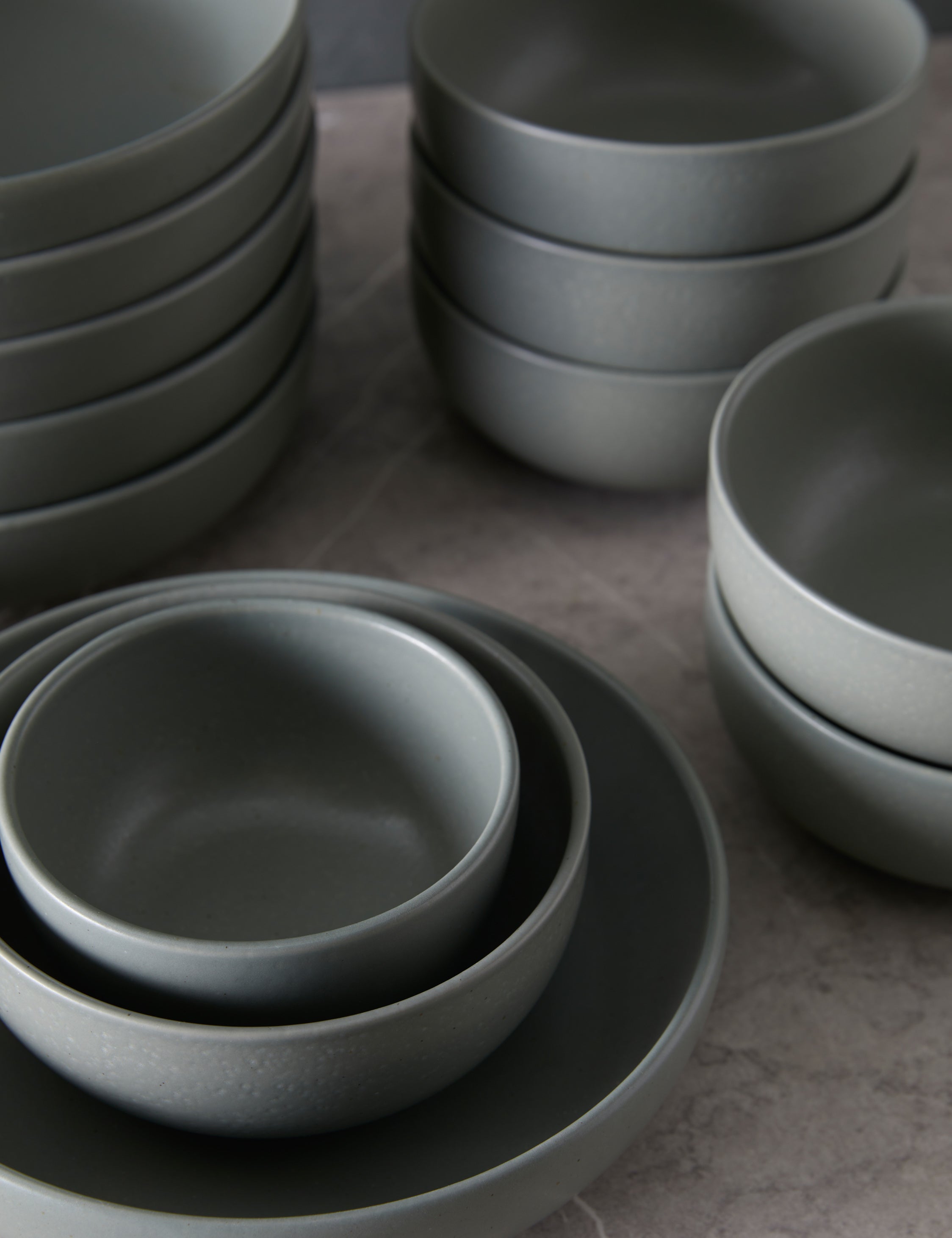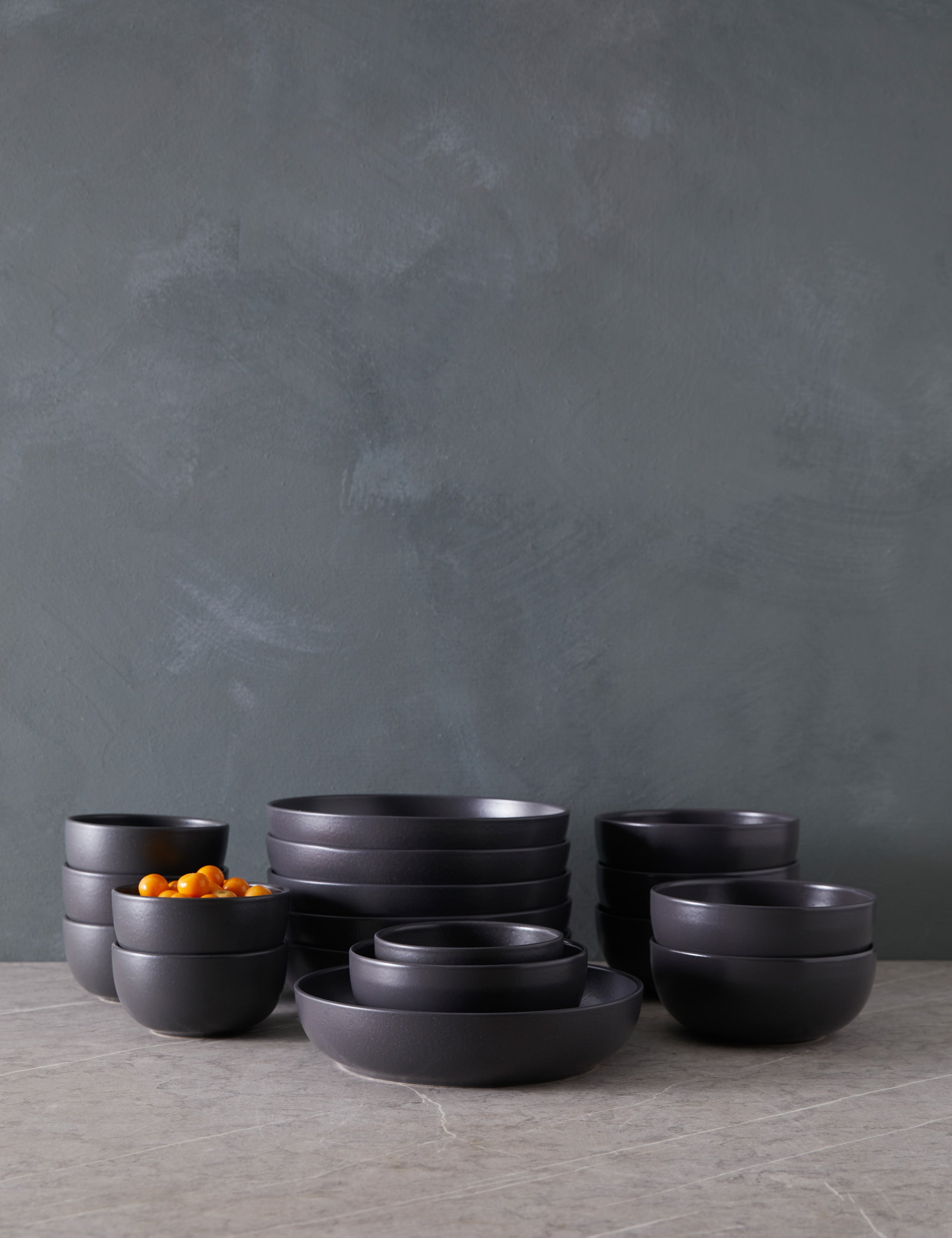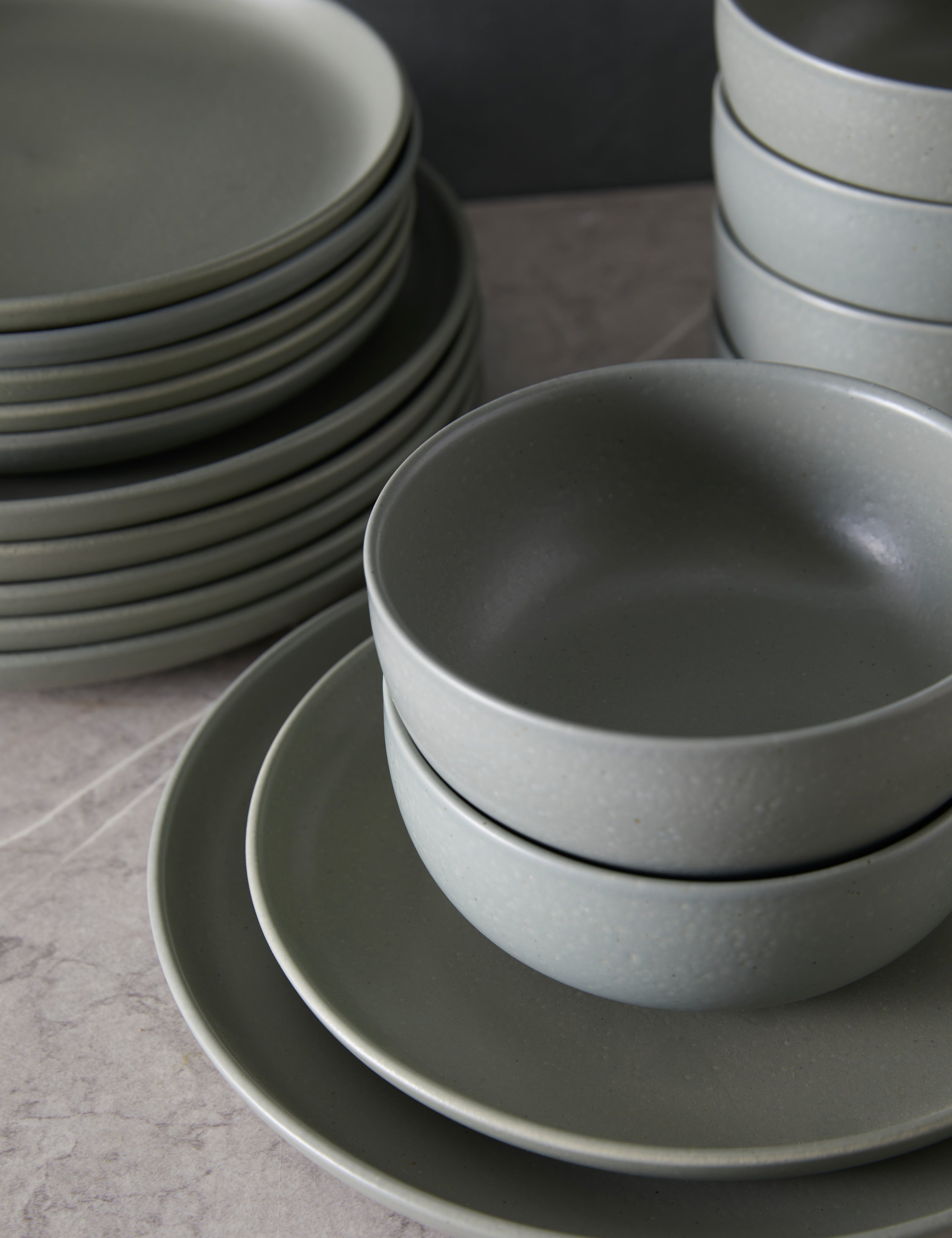 - Set of dinner plate, salad plate, pasta bowl, cereal bowl, mug
