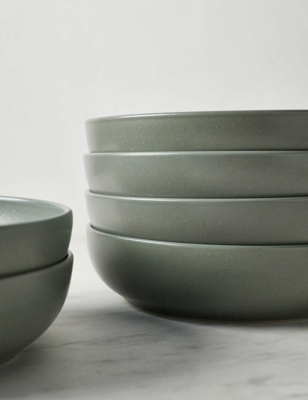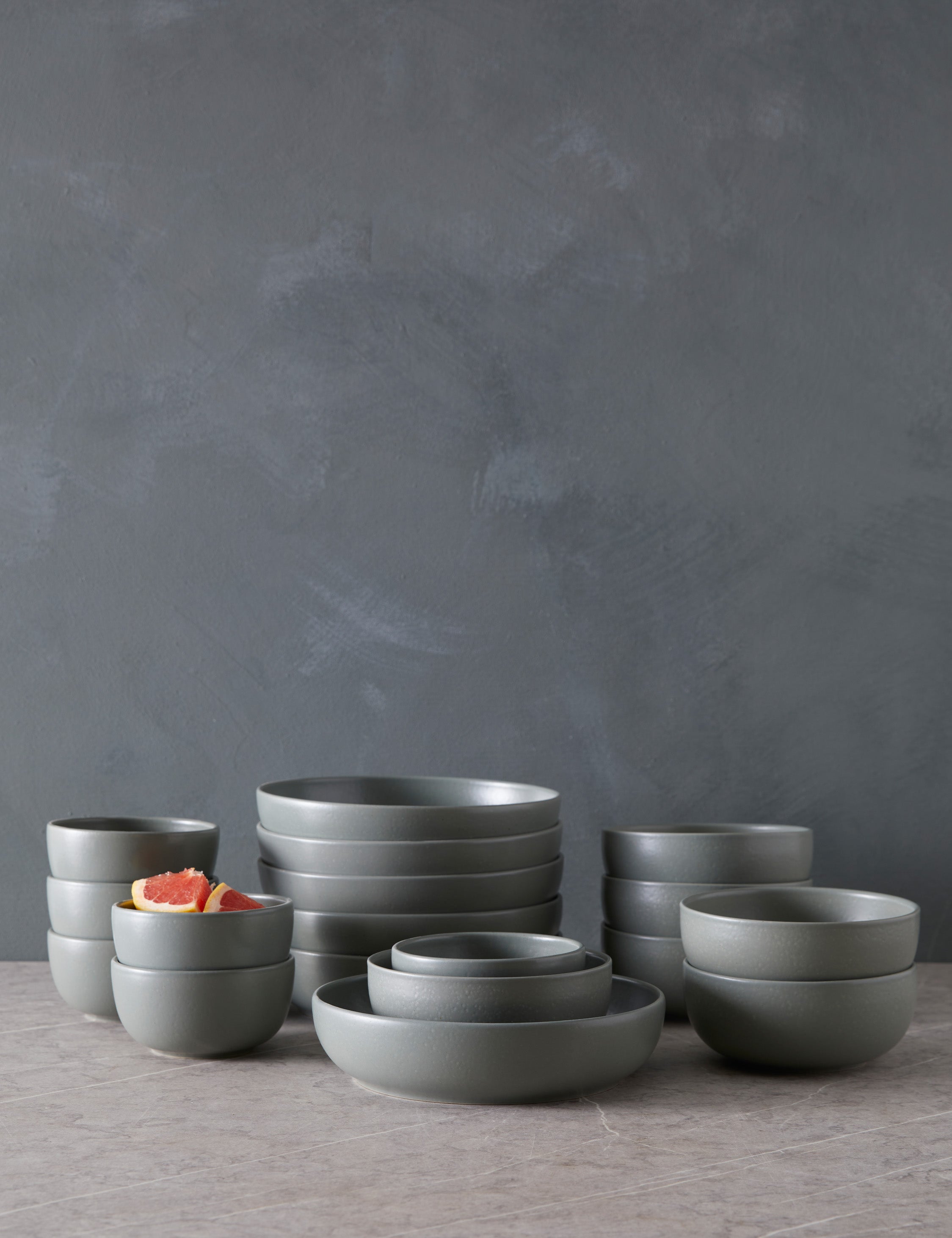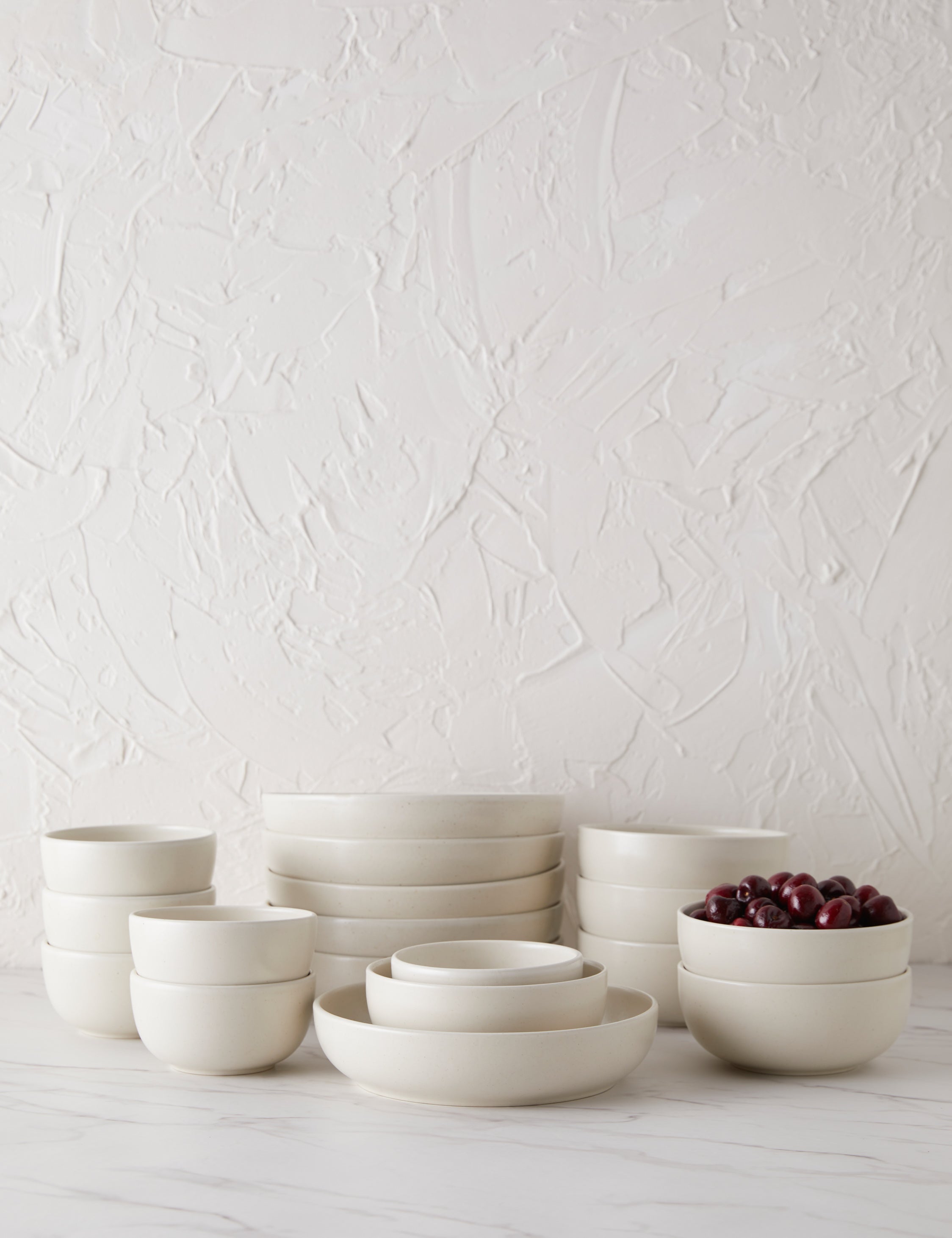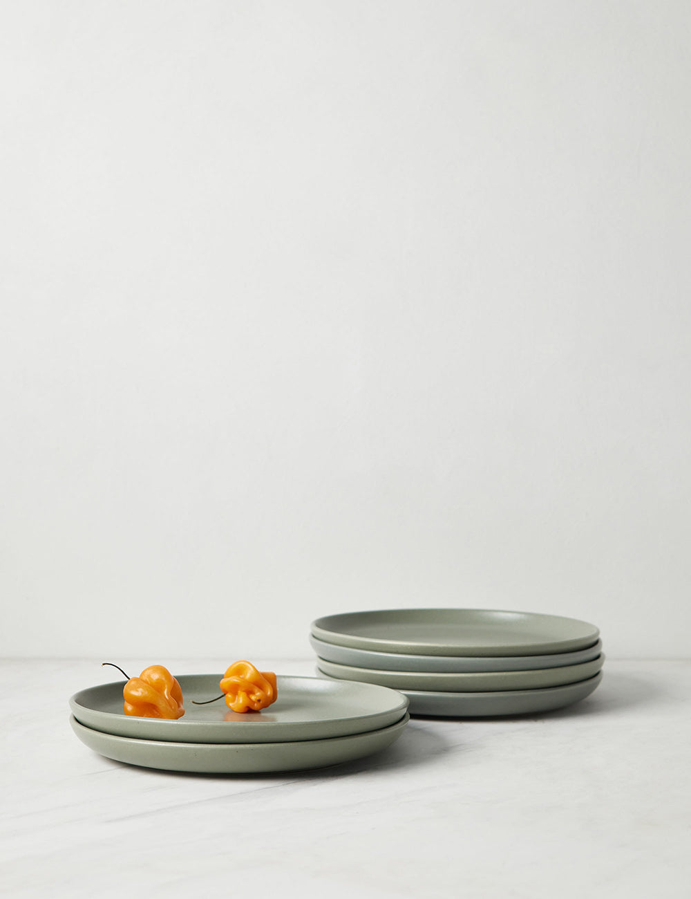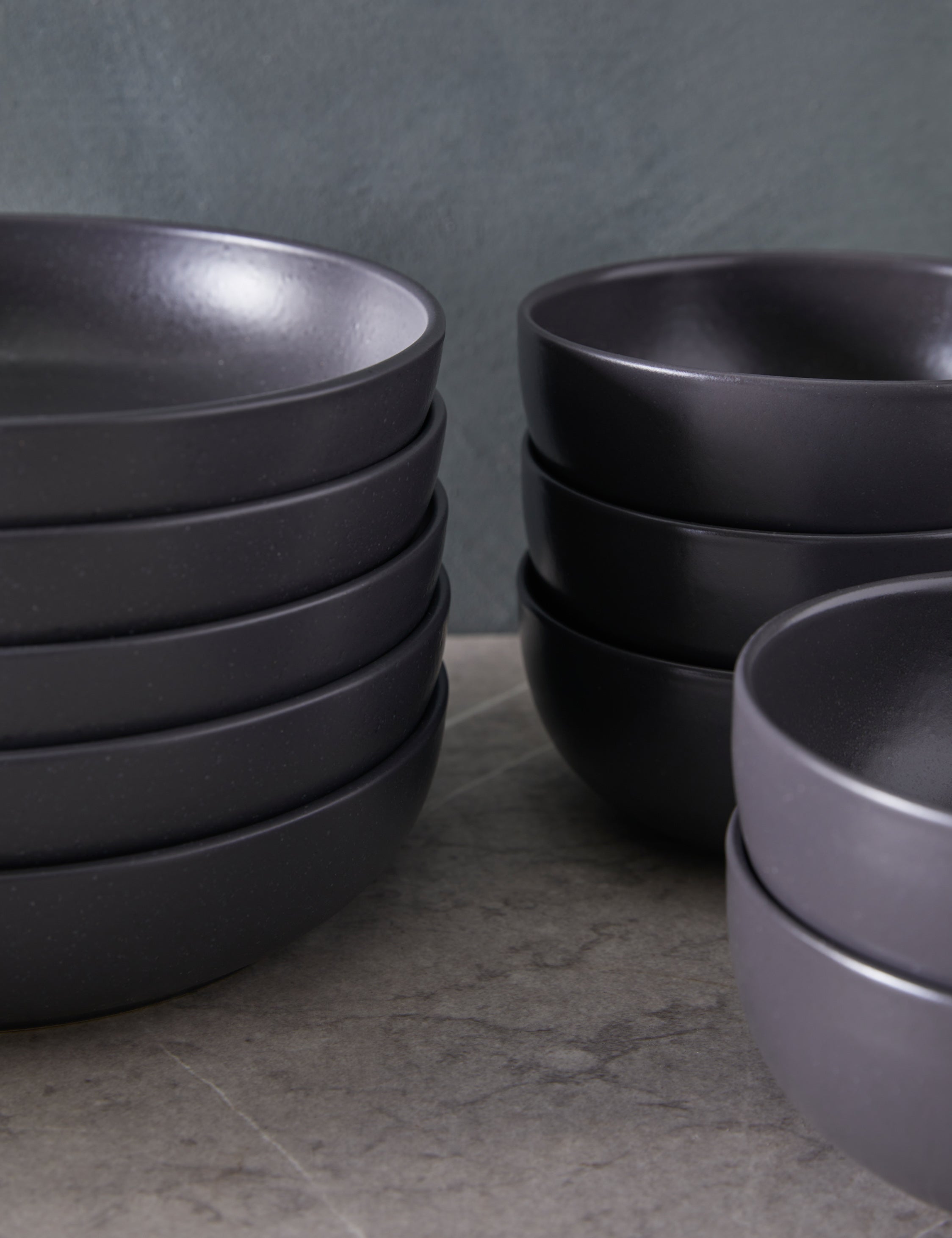 - Set of dinner plate, salad plate, pasta bowl, cereal bowl, mug