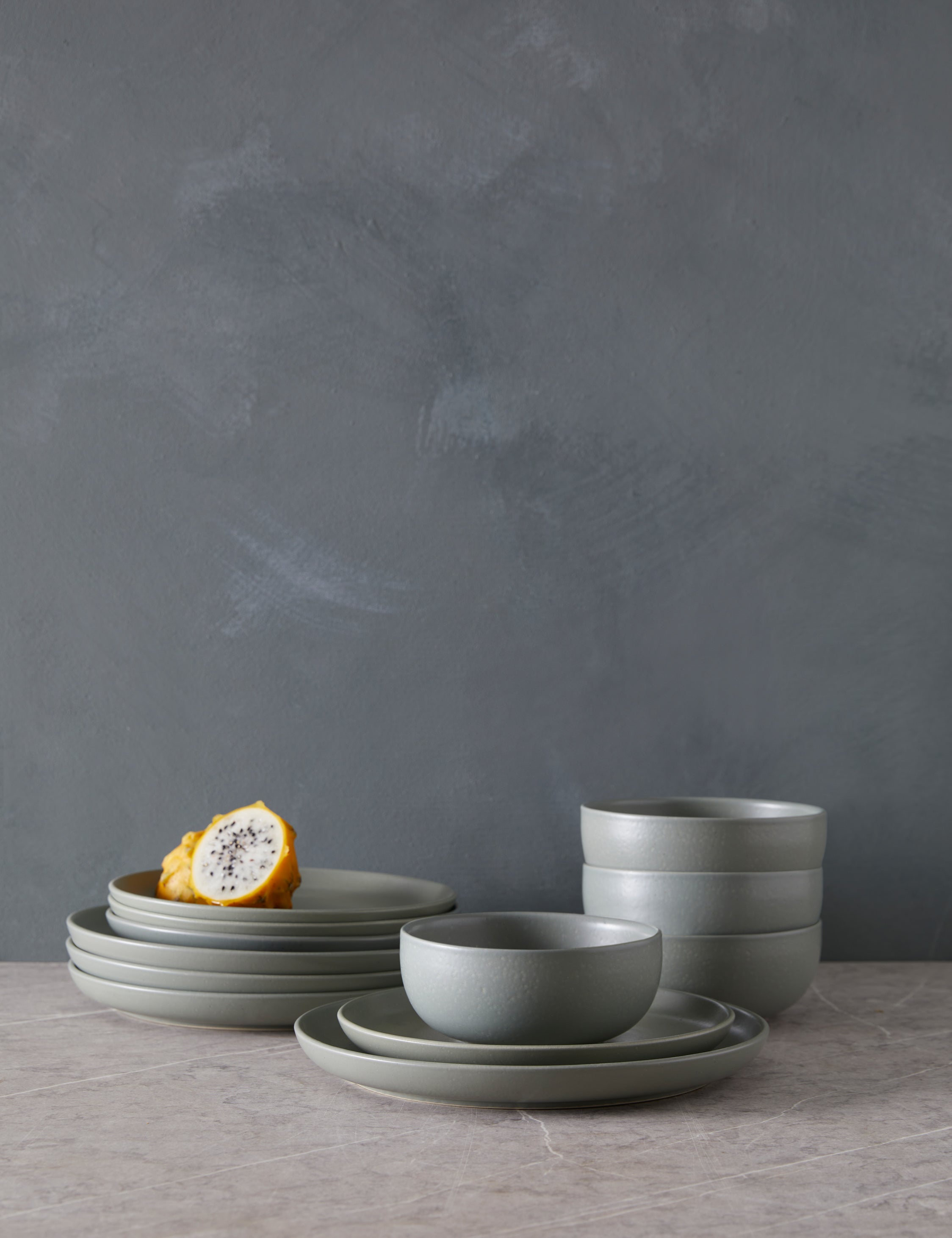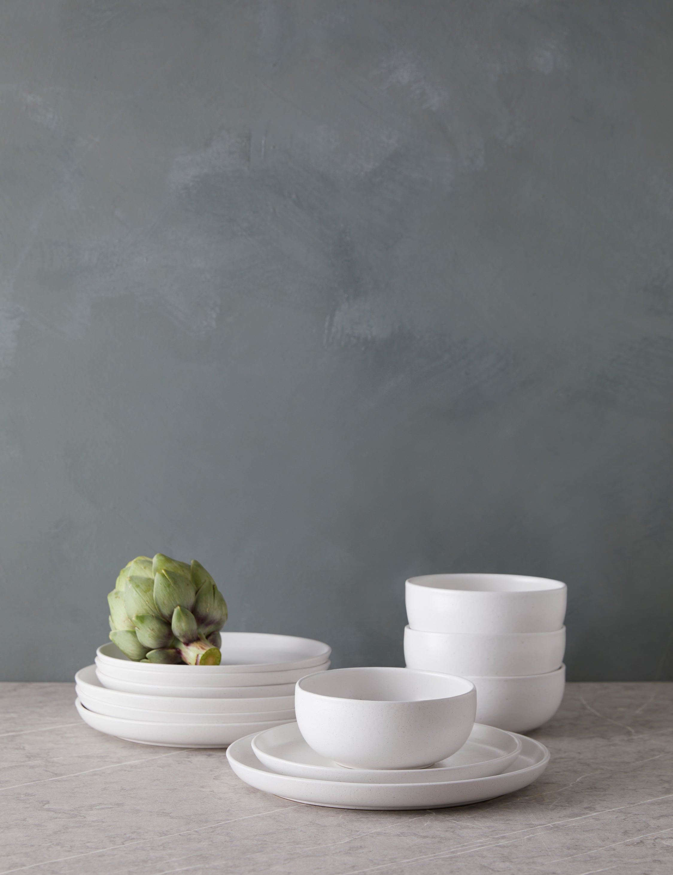 - Set of 12 pcs: 4 dinner plates, 4 salad plates, 4 cereal bowls