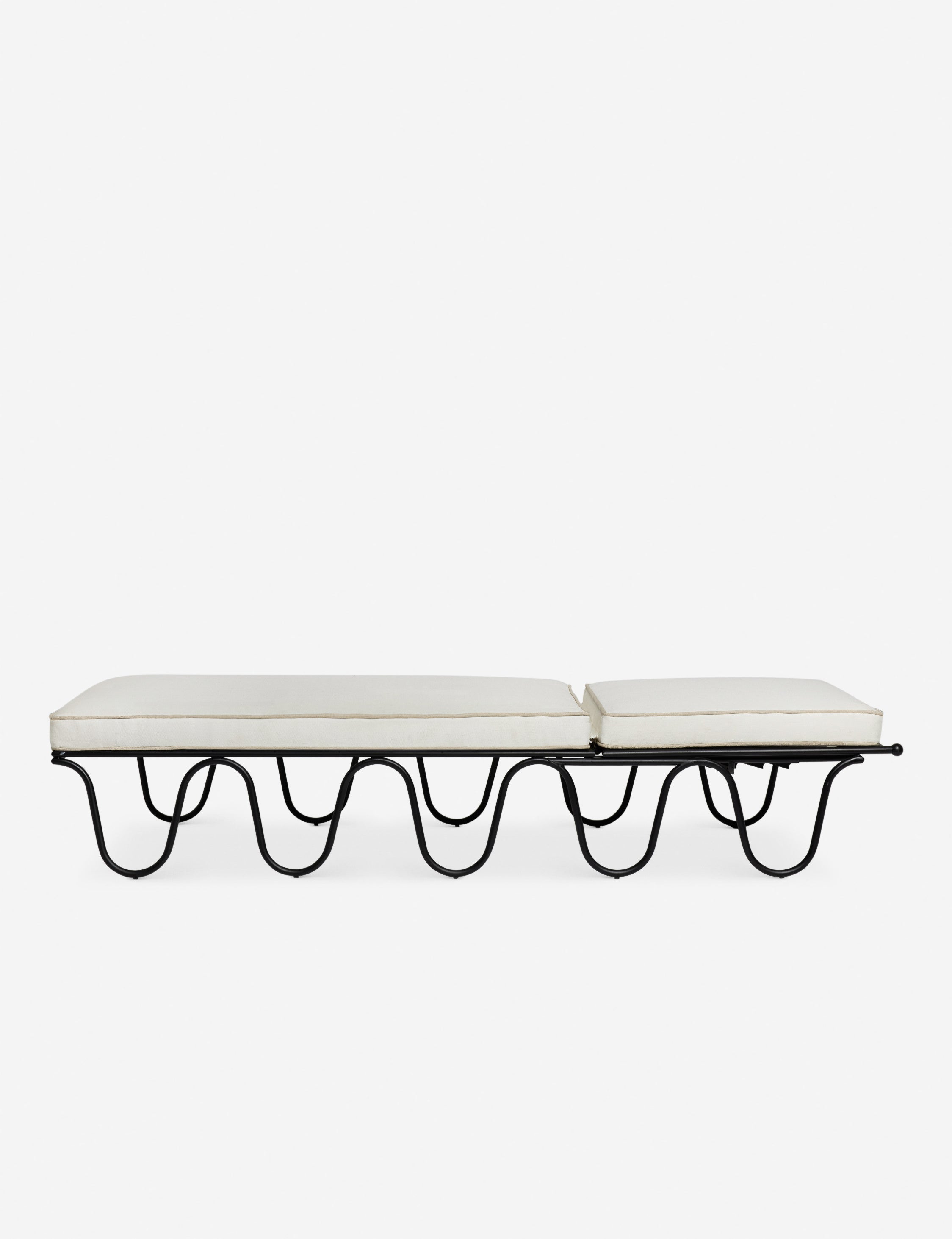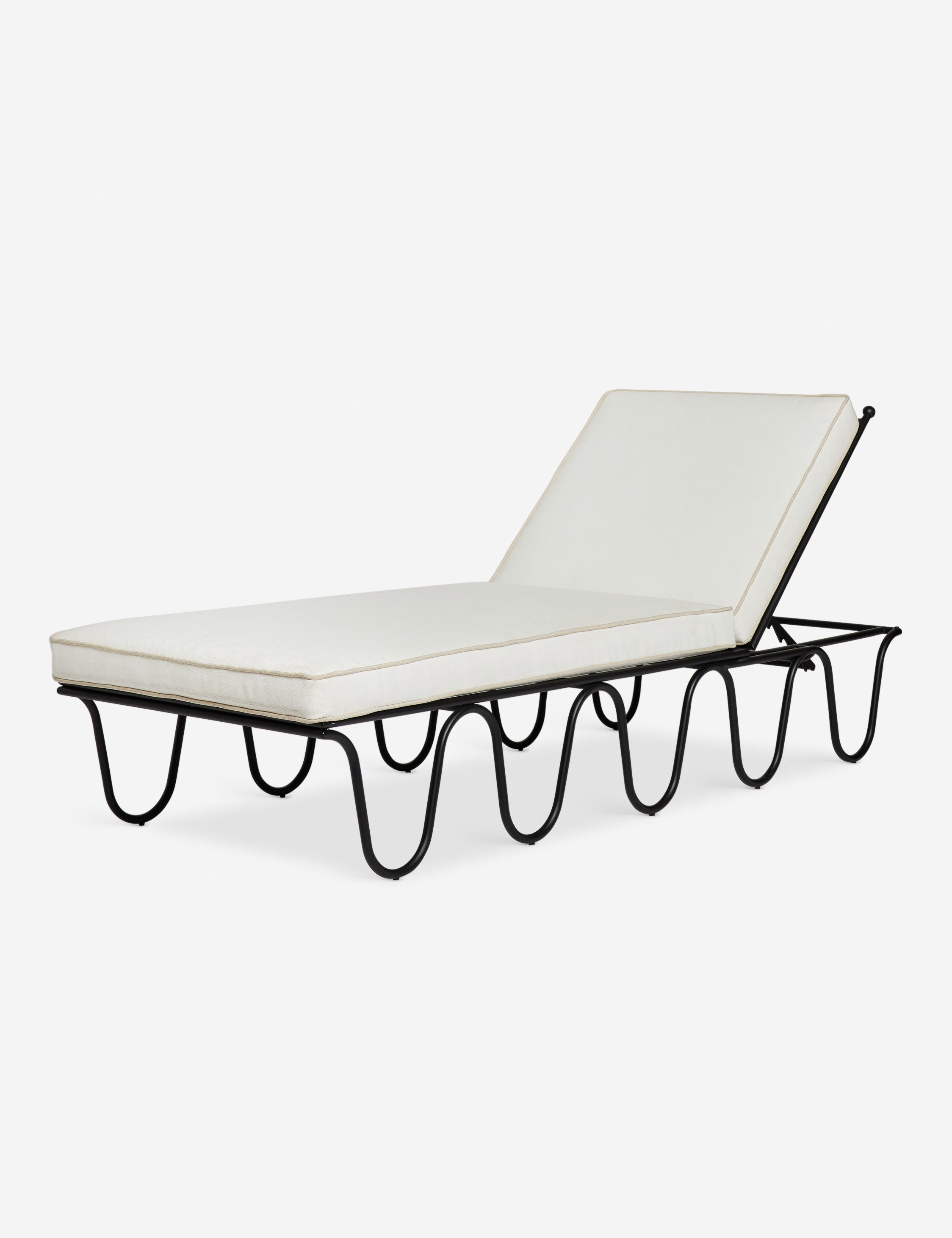 Make it a Sarah Sherman Samuel season with this exclusive outdoor collection. With boxy cushions and cylindrical arms on a shaped iron base, the Peggy chaise offers an airy, artful look set for comfort. This outdoor lounger is from our long-running collaboration and features all the trademarks of Sarah's warm, edited style.