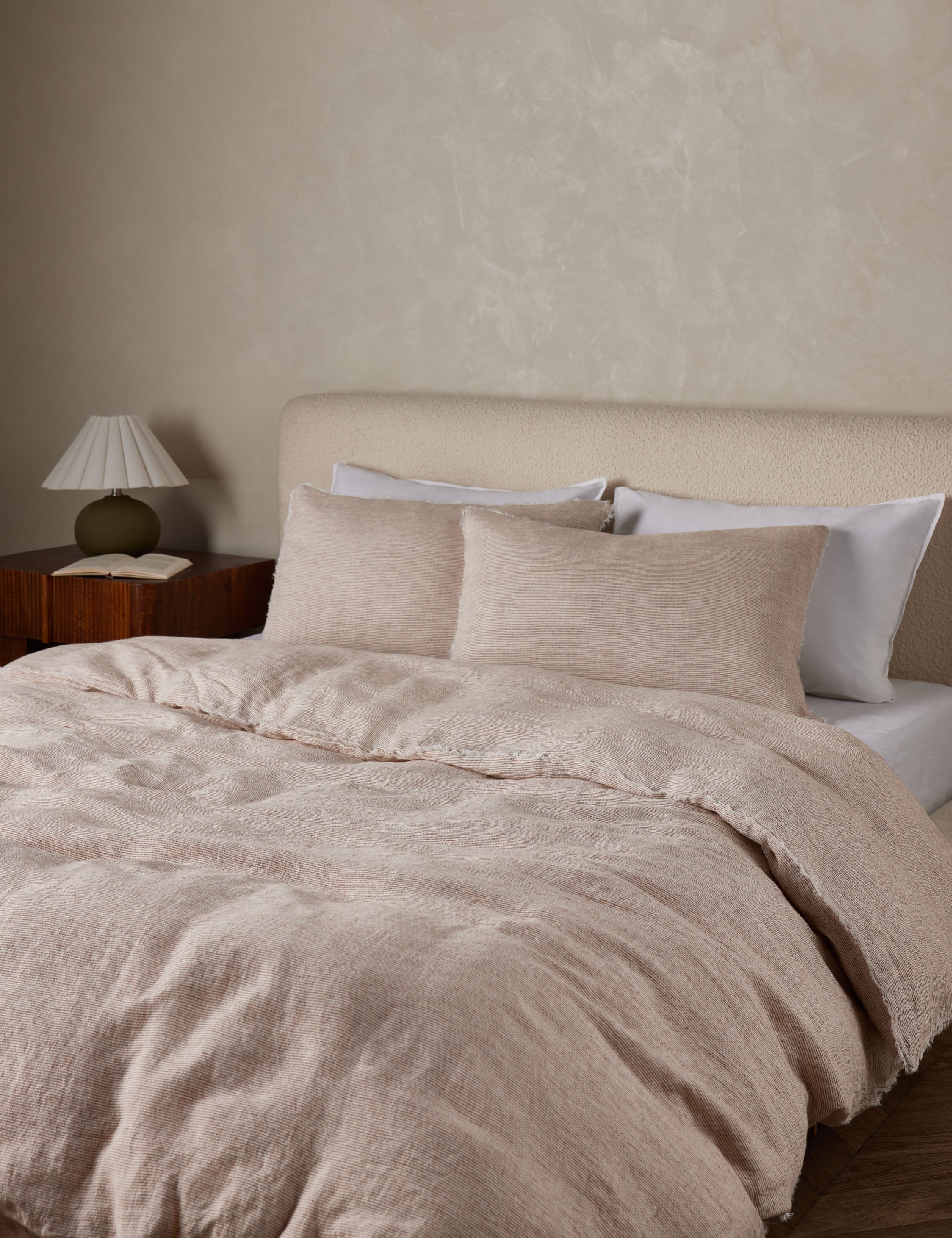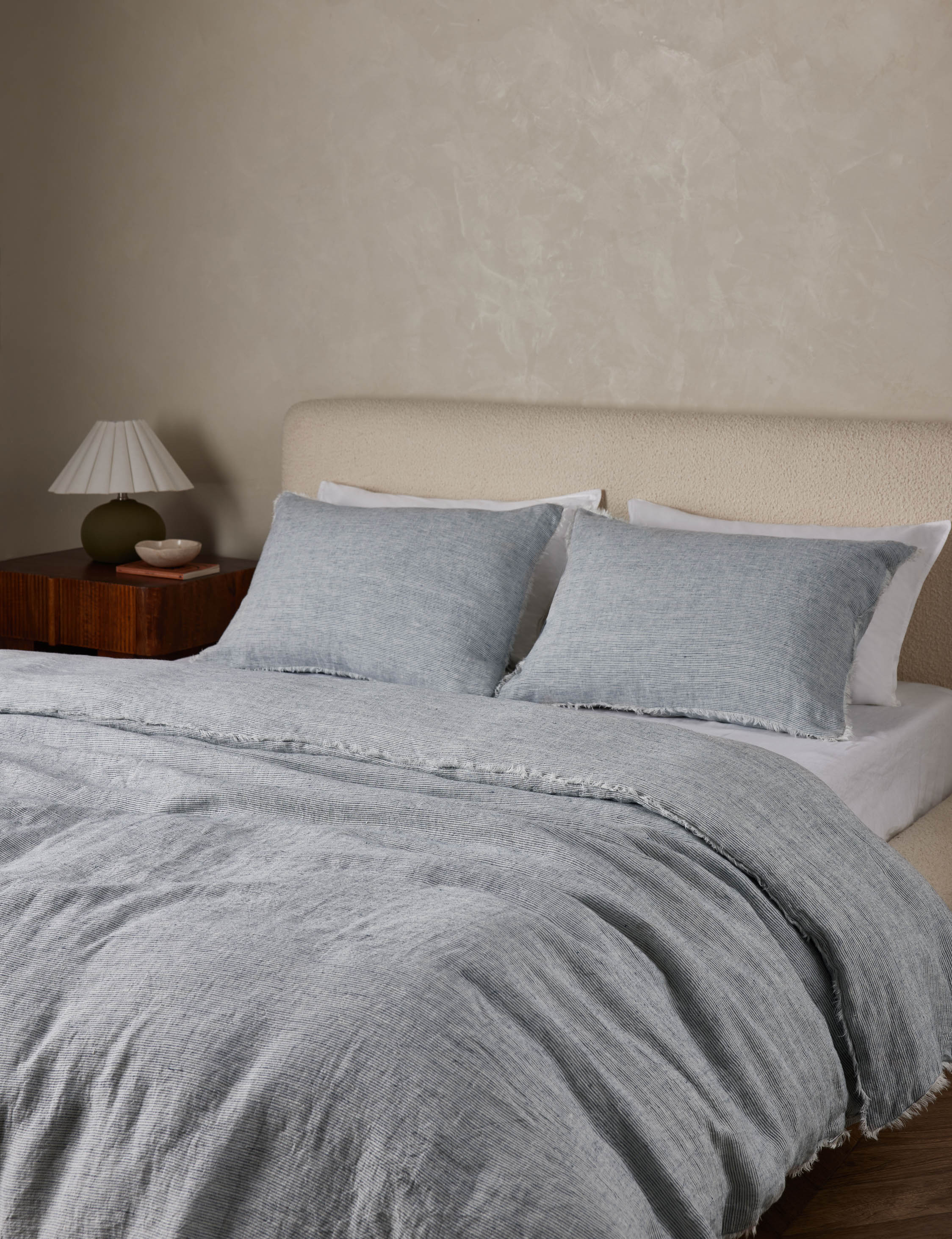 Pom Pom at Home offers superior linens and textiles made with the highest quality natural fibers for that relaxed, lived-in feel. Simple yet stylish, the Logan duvet cover features a subtle heathered effect for added texture in any bedroom. Made from linen, its frayed edges add a touch of unexpected detail. Finished with shell button closures.