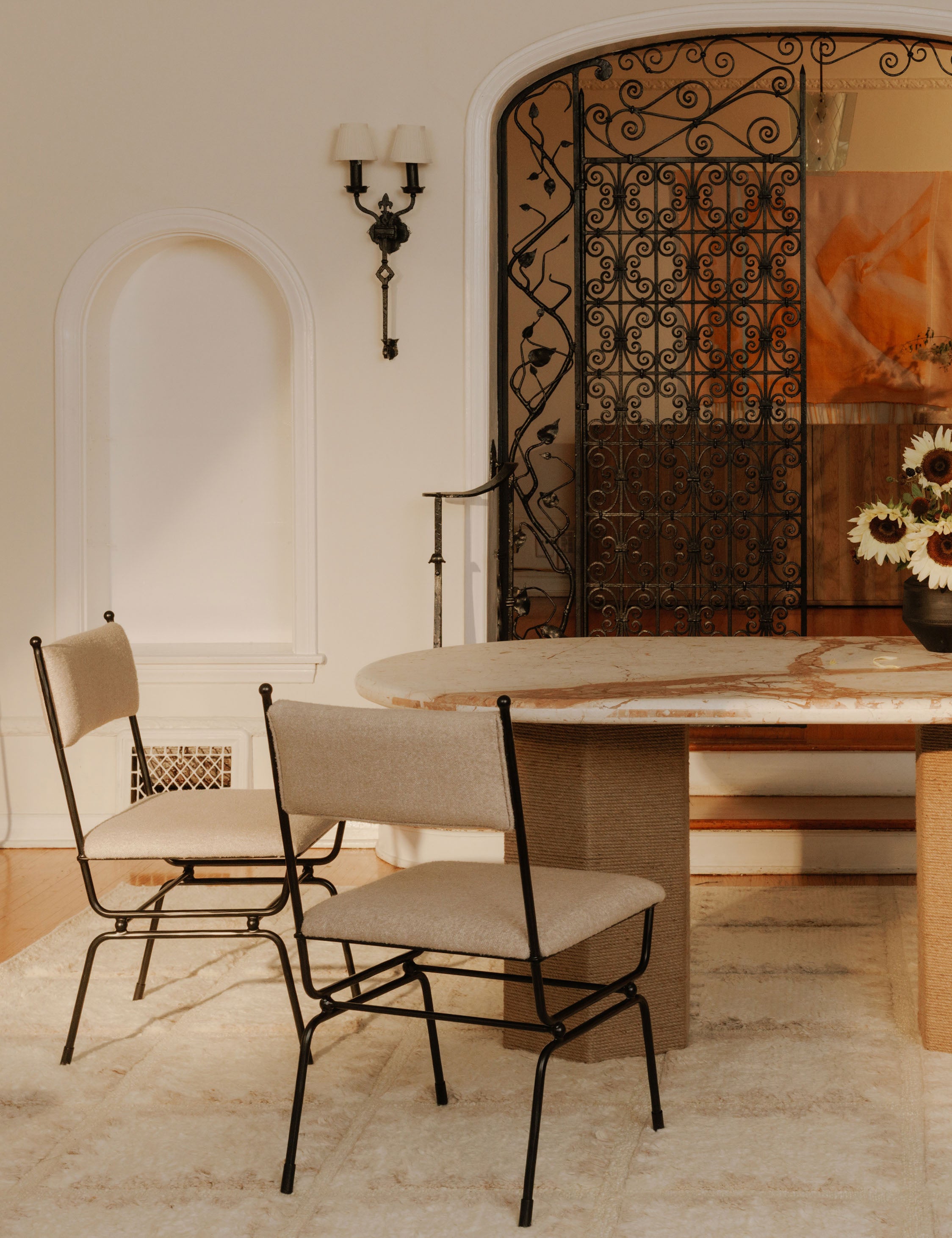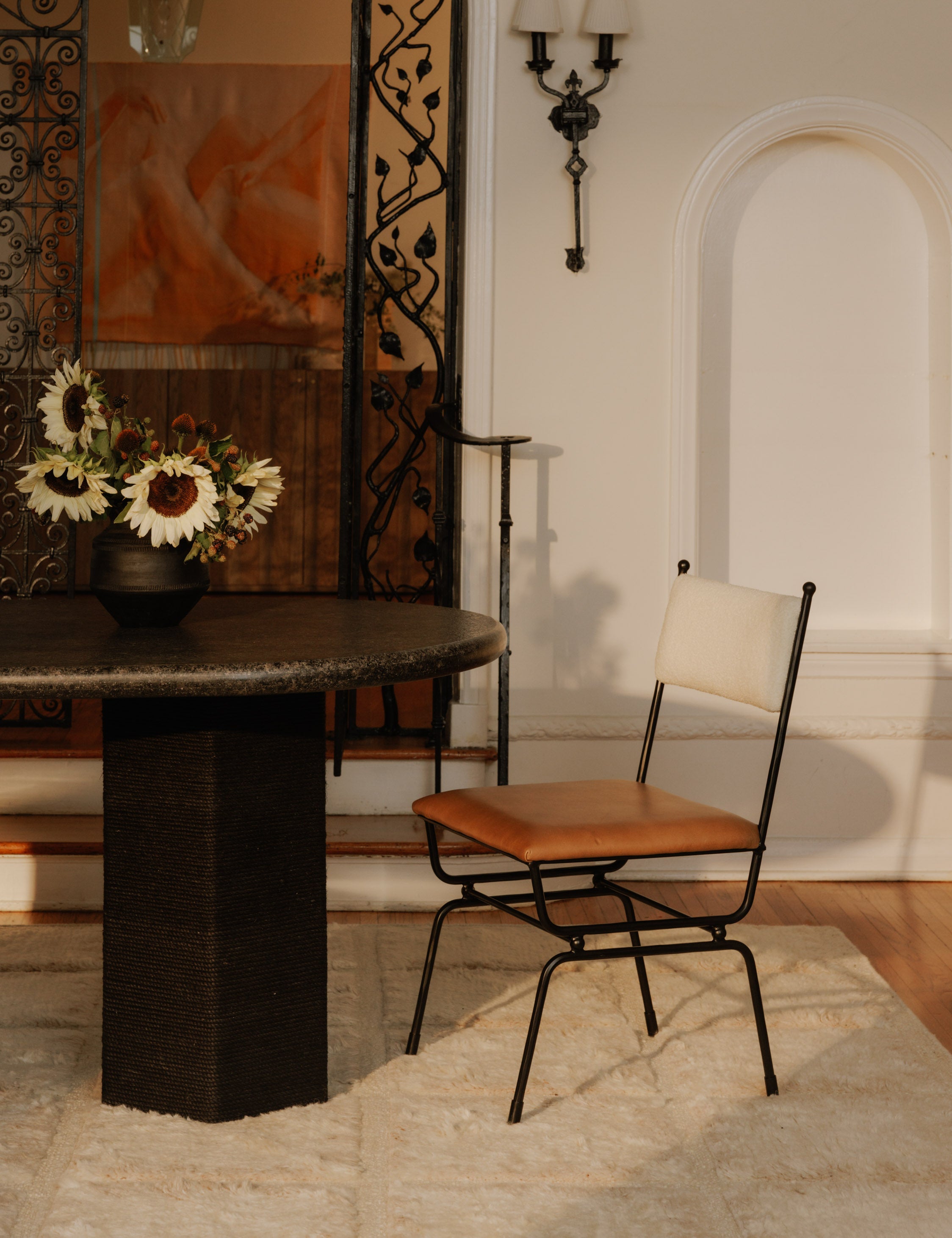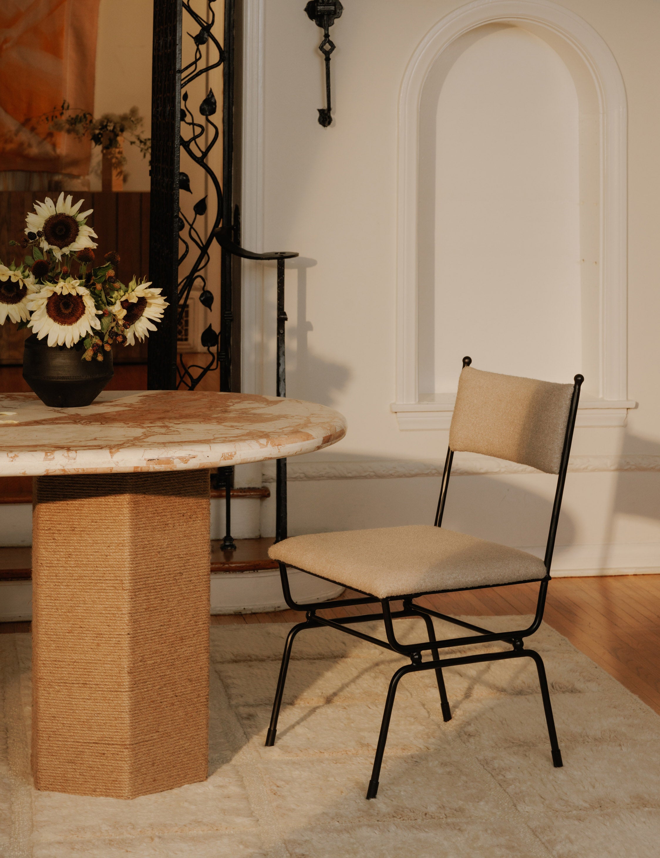 Gillian Segal brings her distinct blend of modern eclecticism and keen eye for delivering the unexpected to this collection for Moe’s. The Posta dining takes its name from Italy's Posta Vecchia hotel, steeped in historical elegance. The hammered metal frame fashions a sturdy dining seat with finial details and fine upholstery for a touch of Italian finesse at your table.