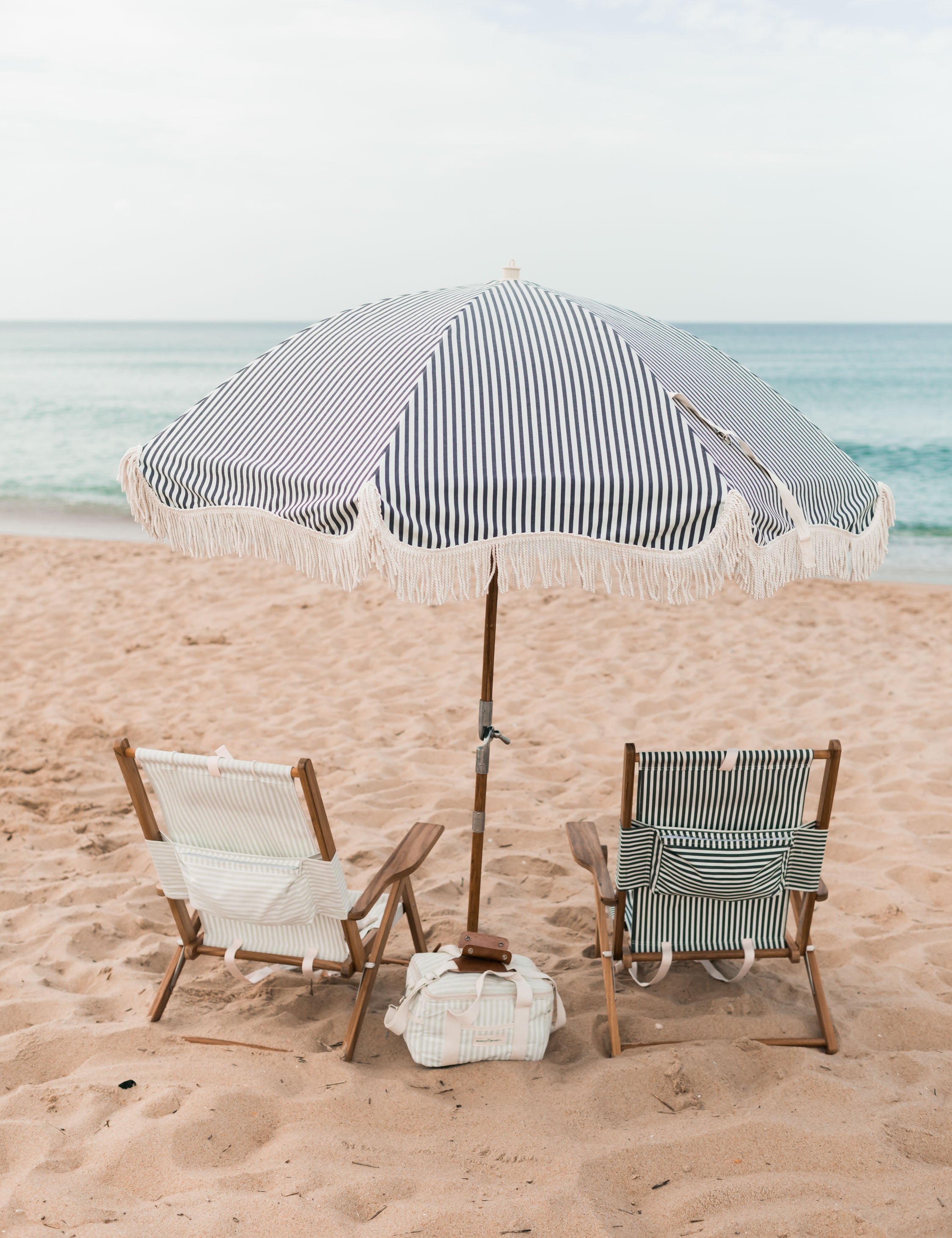 Inspired and influenced by the California coastal lifestyle, Business & Pleasure Co. produces luxe beach accessories. Founded by two Australian friends and based in Los Angeles, the brand started with the mission to create the world's best beach umbrella. Crafted from UV-, mold, and water-resistant cotton canvas and finished with fringed detailing and a reclaimed timber pole, their umbrella is an elevated summer essential. Business & Pleasure Co. has since expanded its line with refined beach towels, chairs, and accessories.