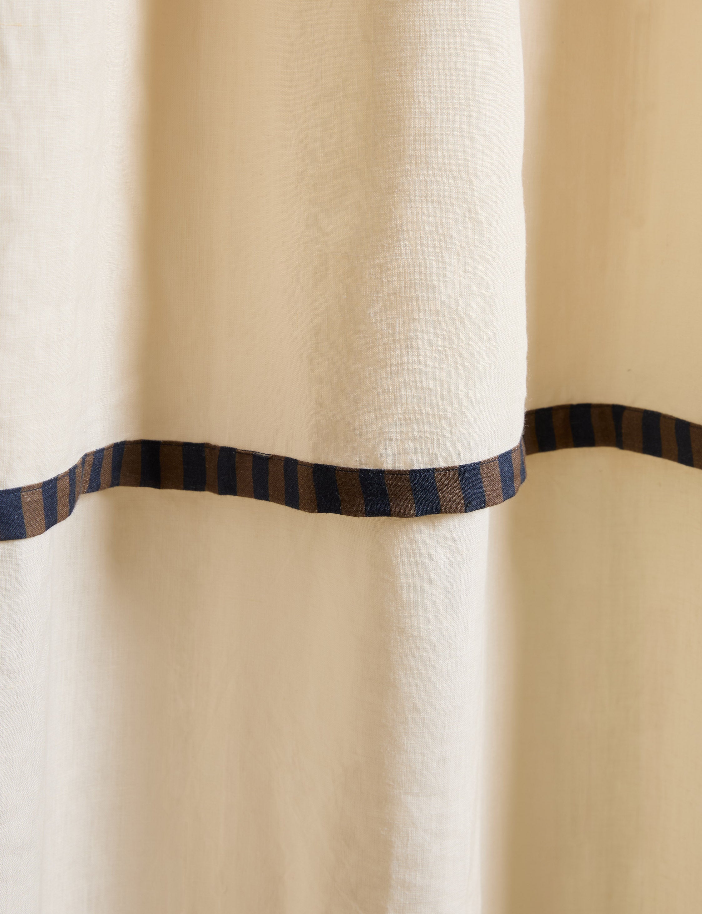 This curtain pairs lightweight linen with a striped border for a look that's airy yet crisply defined. The sheer fabric softens the light, while the tailored edge brings a clean finish to the room. This window treatment is from our exclusive Sarah Sherman Samuel collaboration and features all the trademarks of her warm, edited style.