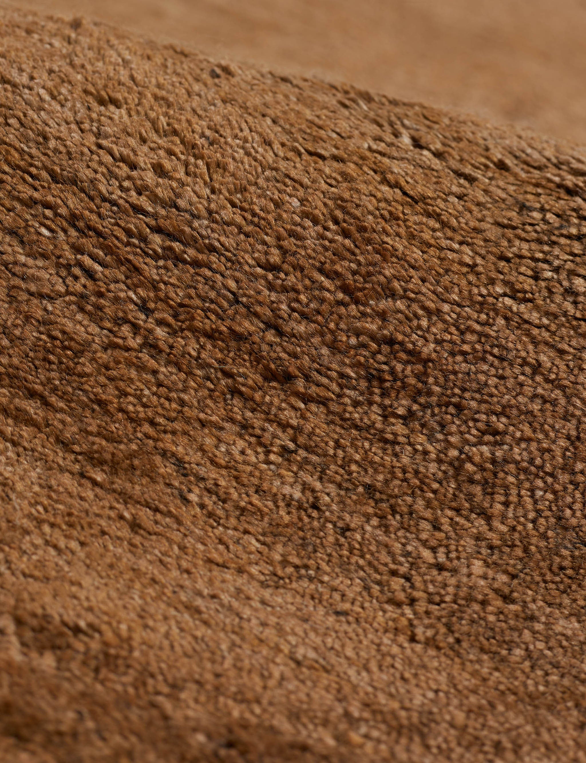 An organic, irregular shape and a deep umber color inspire earthy appeal in this ultra-modern rug by Jake Arnold. This plush rug is hand-knotted with lustrous viscose fibers—the perfect accent to add signature style to a cozy space. Exclusively for Brightselects, Jake has developed a luxe rug collection that experiments with materiality, texture, and striated earth tones.