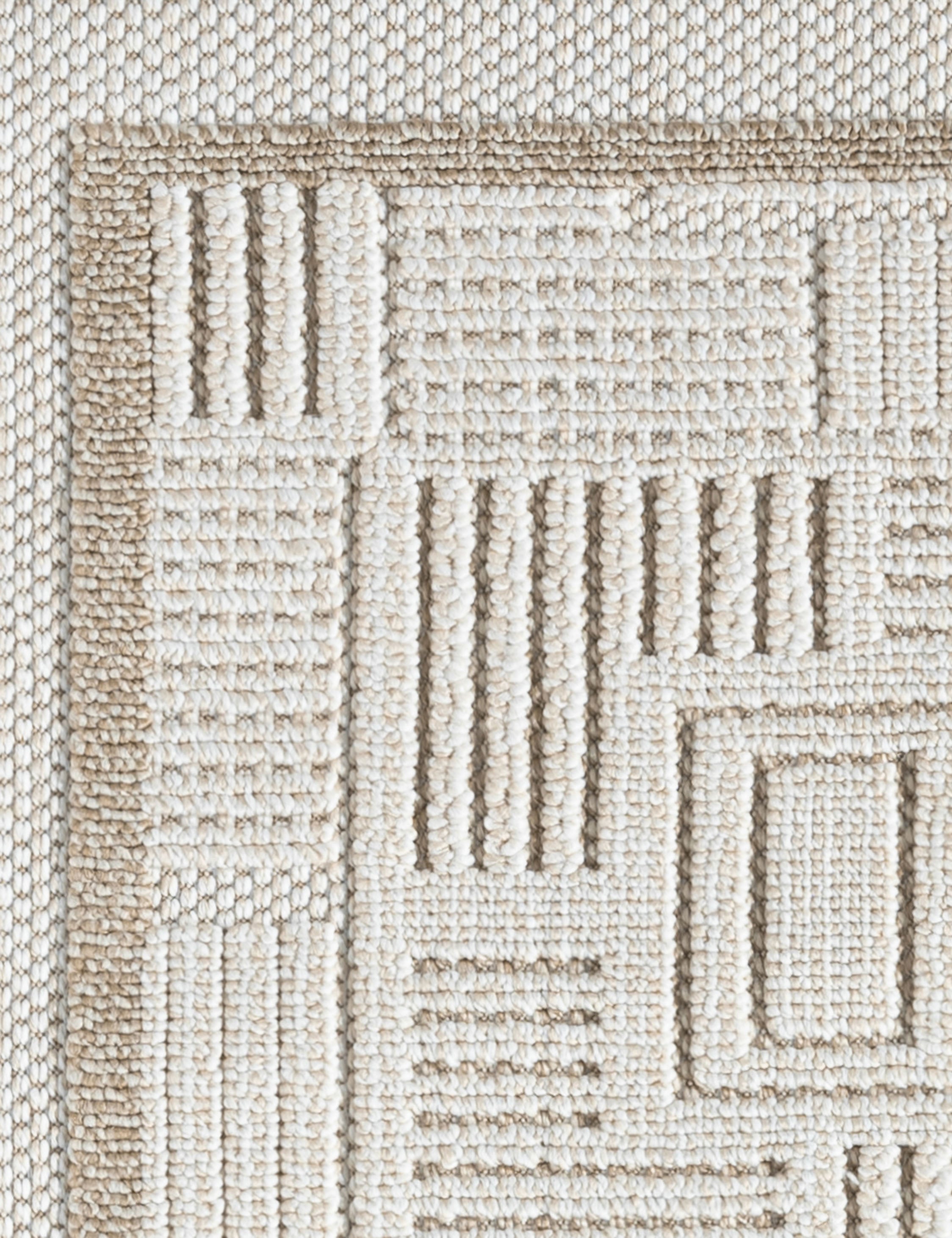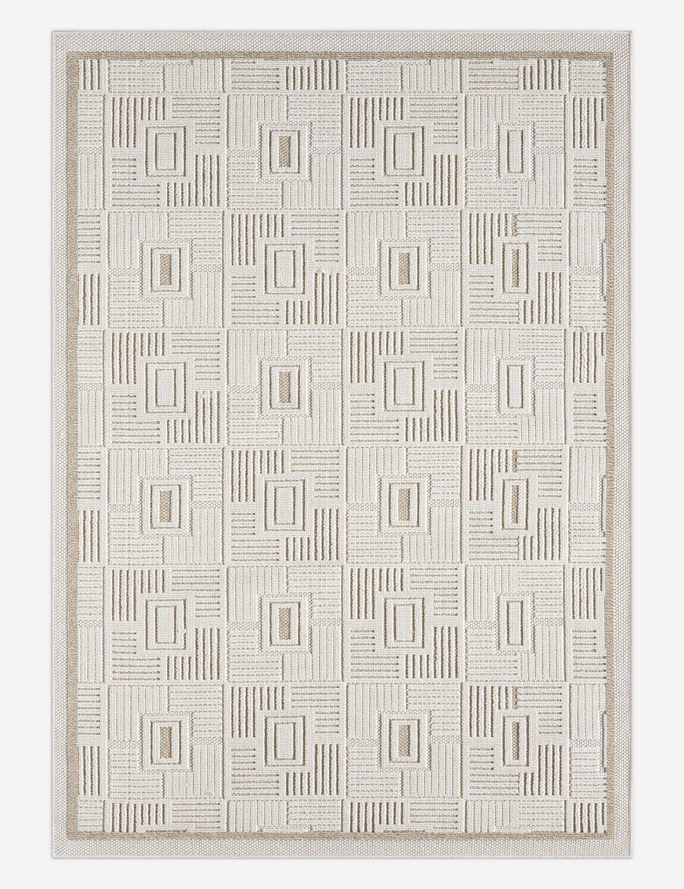 Clean-lined with a subtle graphic texture, the Regan rug sets a versatile base for high-traffic spaces. Its modern construction and neutral palette make it a strong foundation for hallways, patios, or a casual lounge. This area rug is designed for durability underfoot while keeping the look elegant and light.