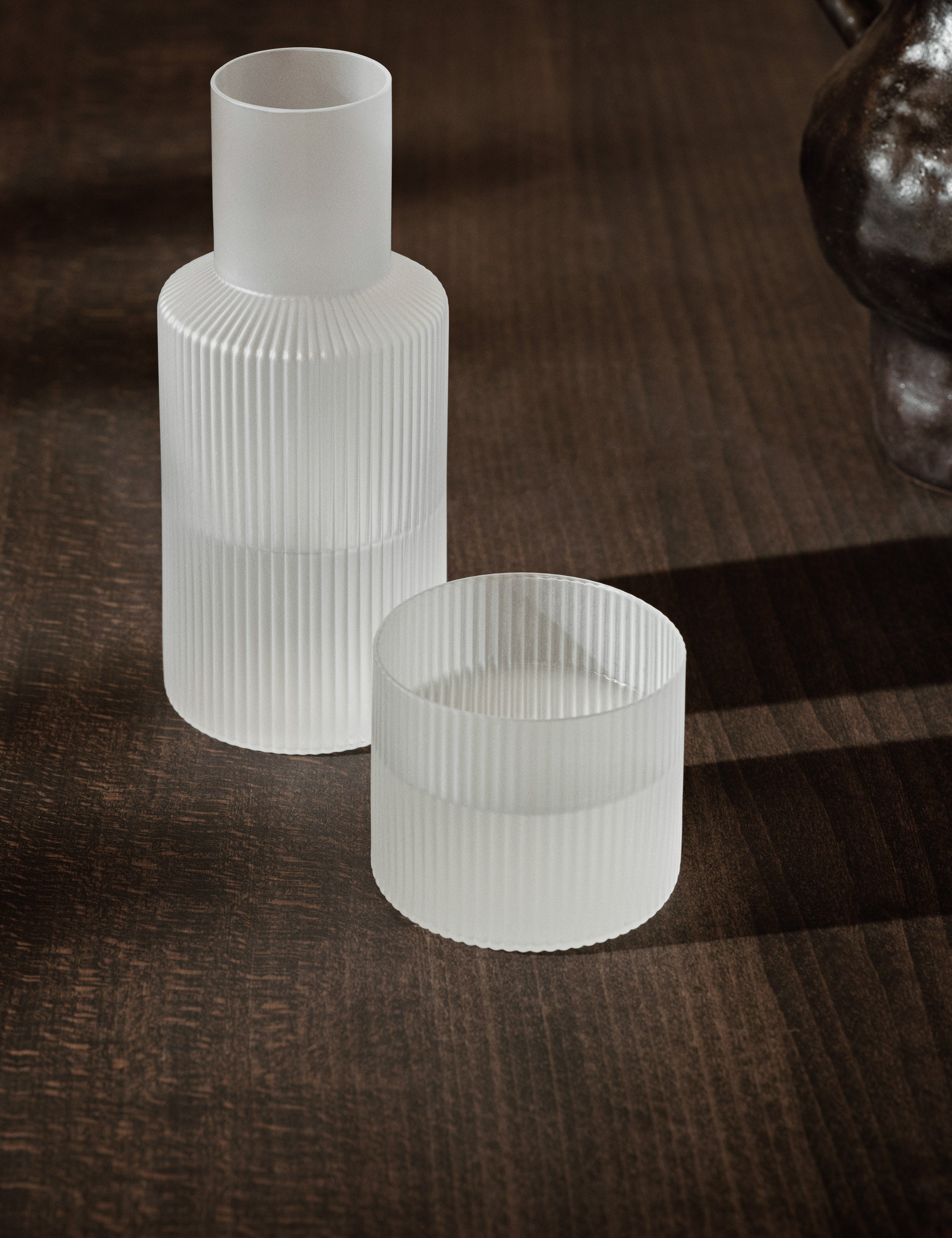 - Stackable glasses features a beautiful vertical ripple surface; Each piece has a unique geometric shape on the bottom