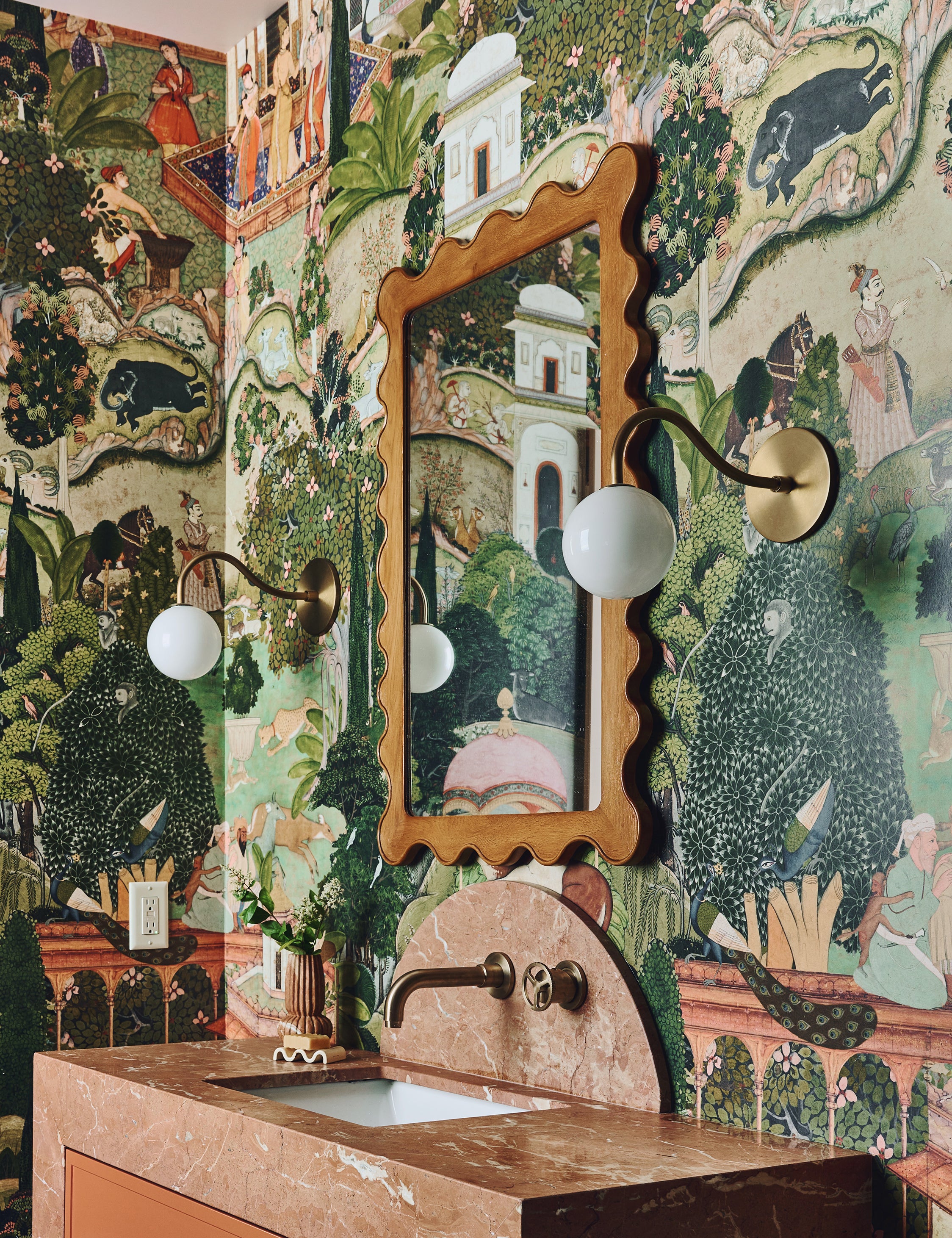 Wavy lines create a distinctive profile in this oak-framed mirror, clad in a honey finish to highlight the natural grain. This wooden mirror's undulating shape offers some signature flair to your look and lends it organic appeal. This piece is from our exclusive Sarah Sherman Samuel collaboration and features all the trademarks of her warm, edited style.
