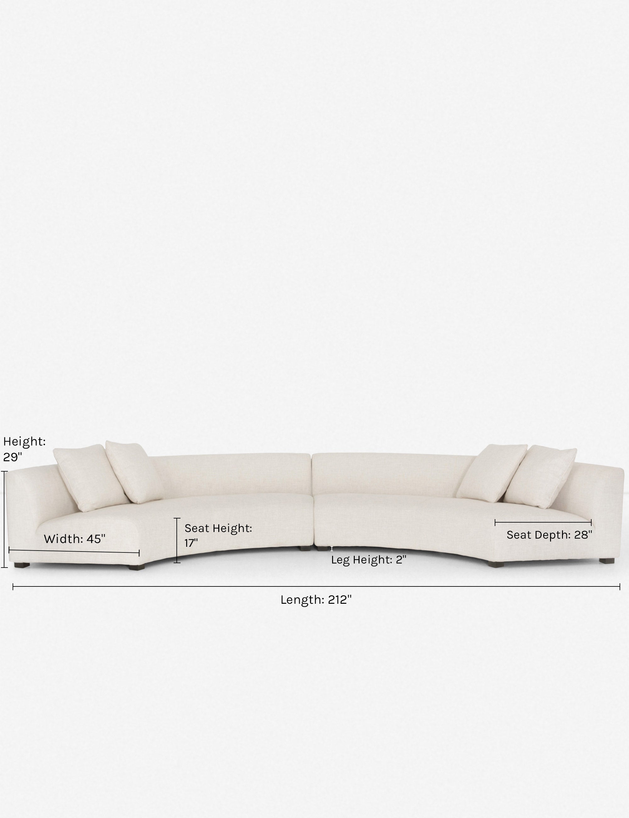 - Outer Curve Width: 212"