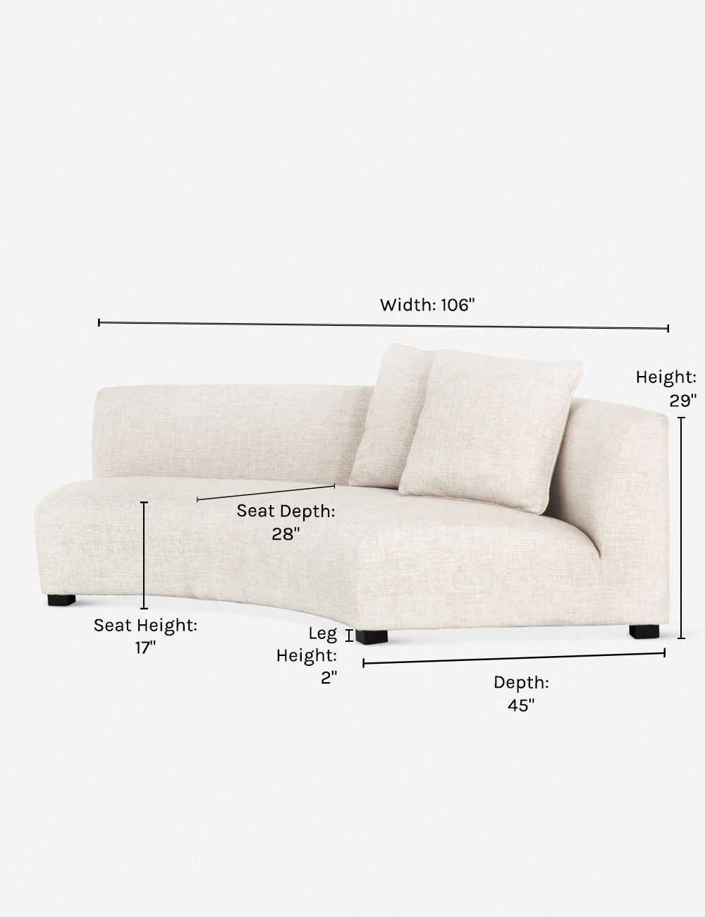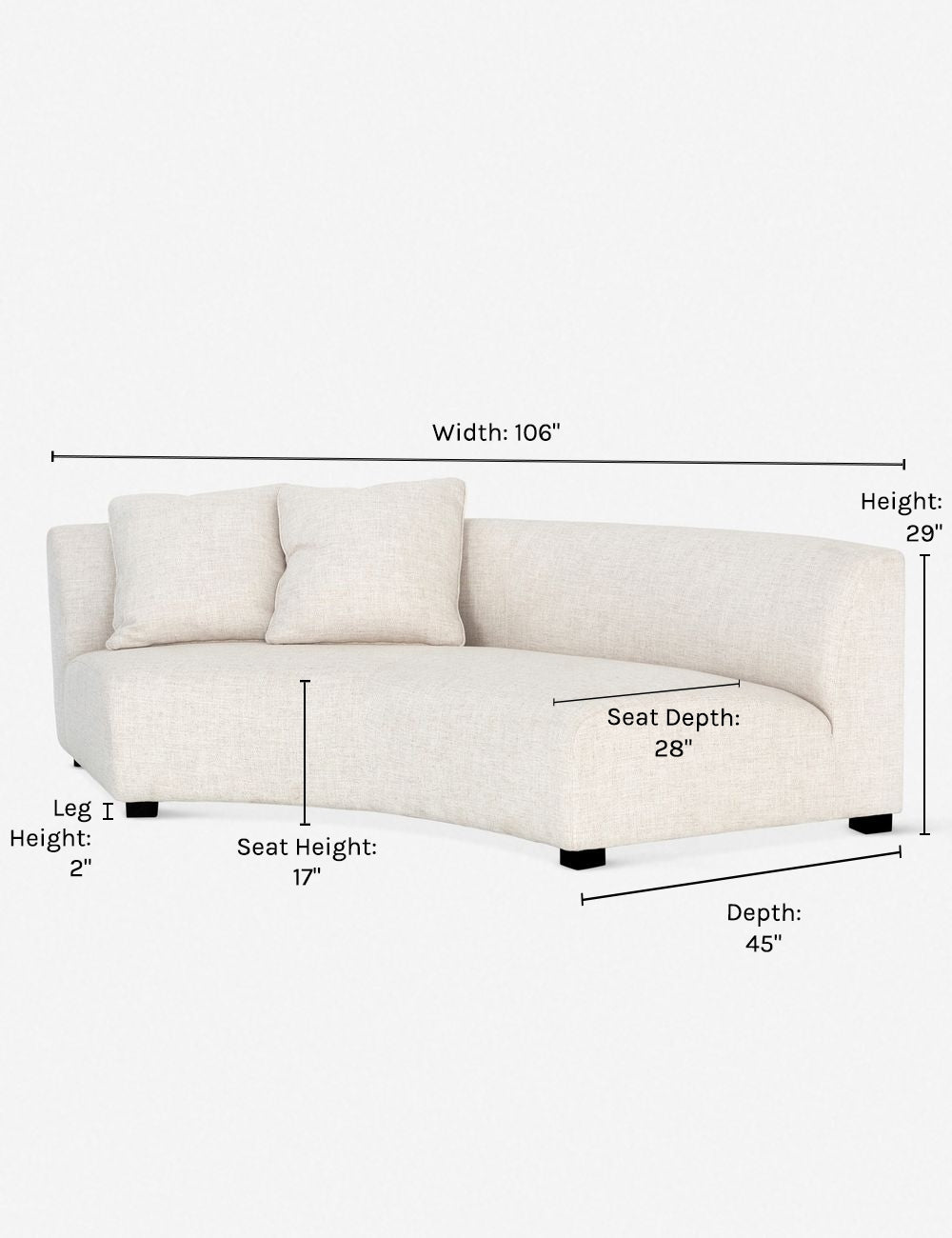 - Interior Dimensions: 69"; Outer Curve Width: 106"; Distance Between Front Legs 1: 31"; Distance Between Back Legs 2: 51"