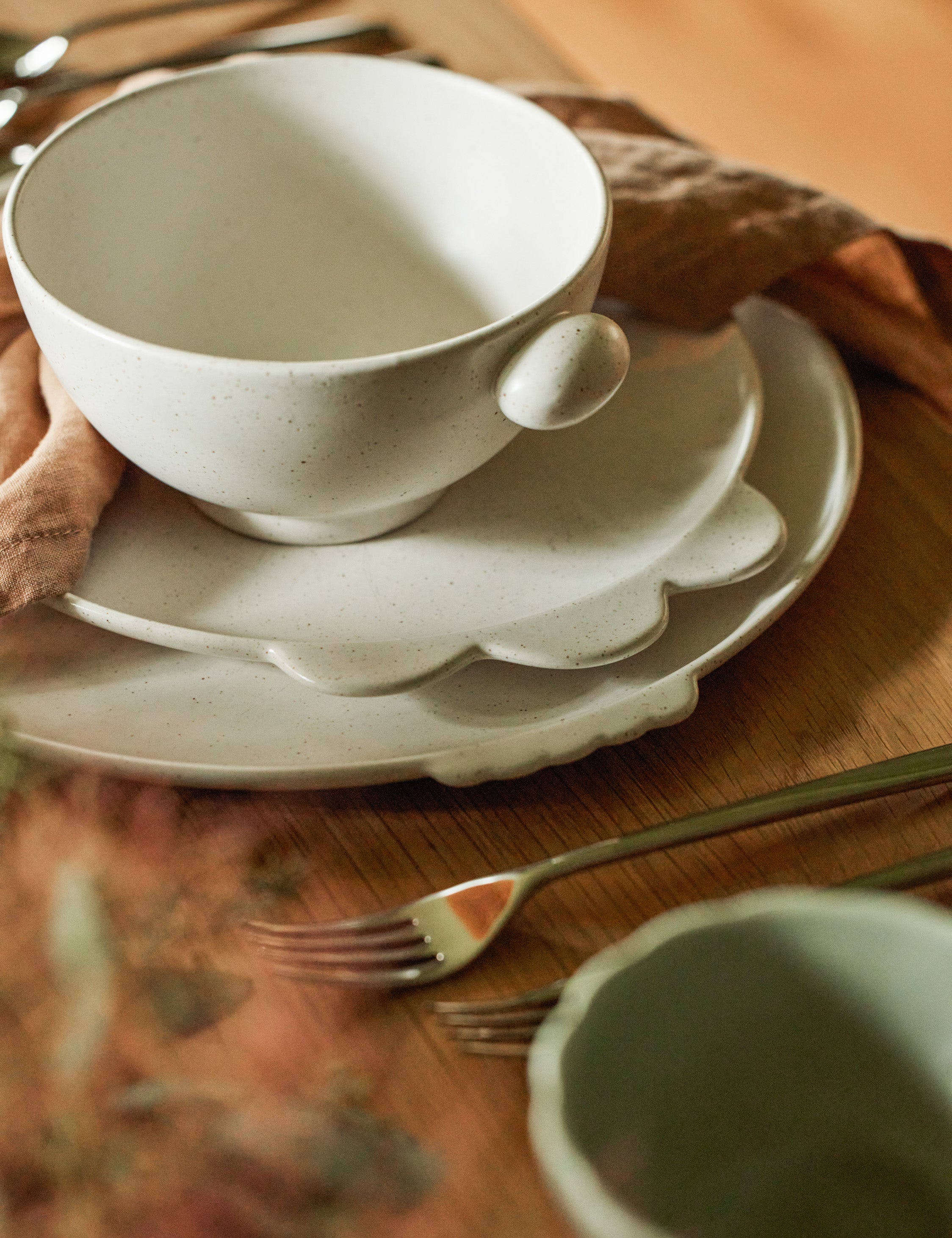 Bring a playful touch to your table with the Shapeshifter dinnerware set. Scalloped detailing and artful accents offer a unique yet cohesive collection ready for daily elegance. This dish set is from our exclusive Sarah Sherman Samuel collaboration and features all the trademarks of her warm, edited style.