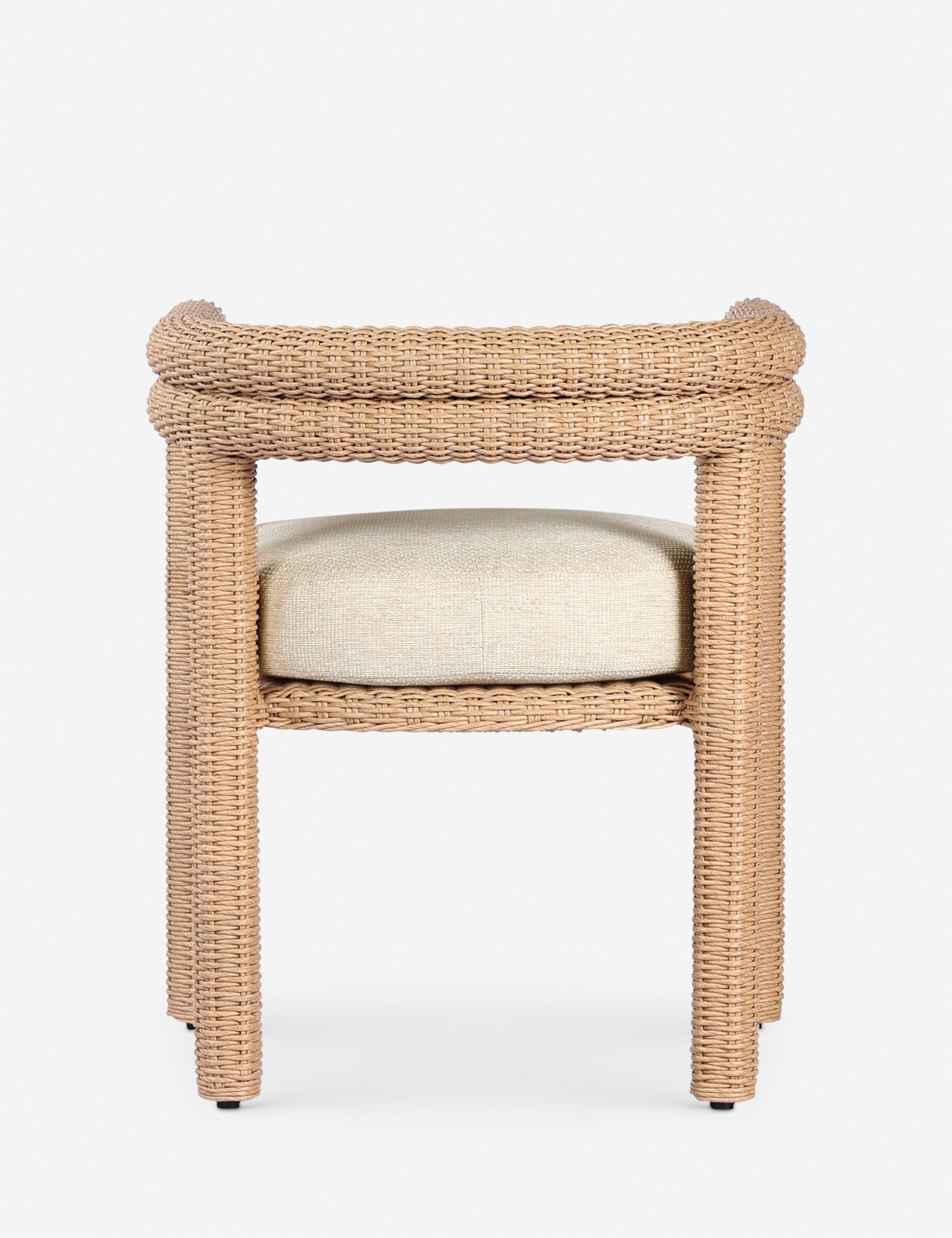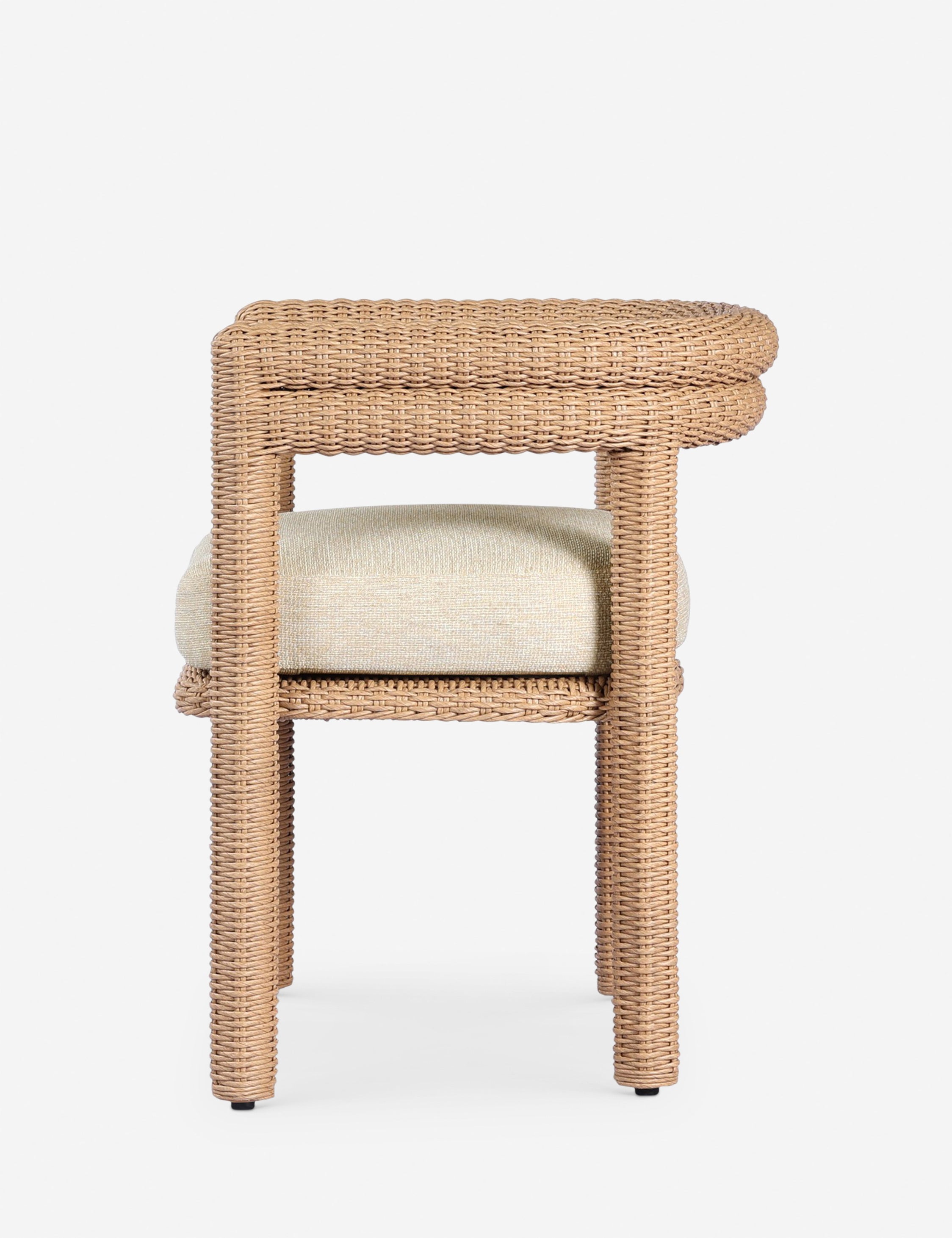 Woven texture styles the Sola dining chair for al fresco elegance. The vintage-inspired design brings chic character to your patio or terrace, with all-weather wicker providing durability and comfort. We love this sculptural dining seat paired with a modern table to set off your outdoor living space with an artful edge.