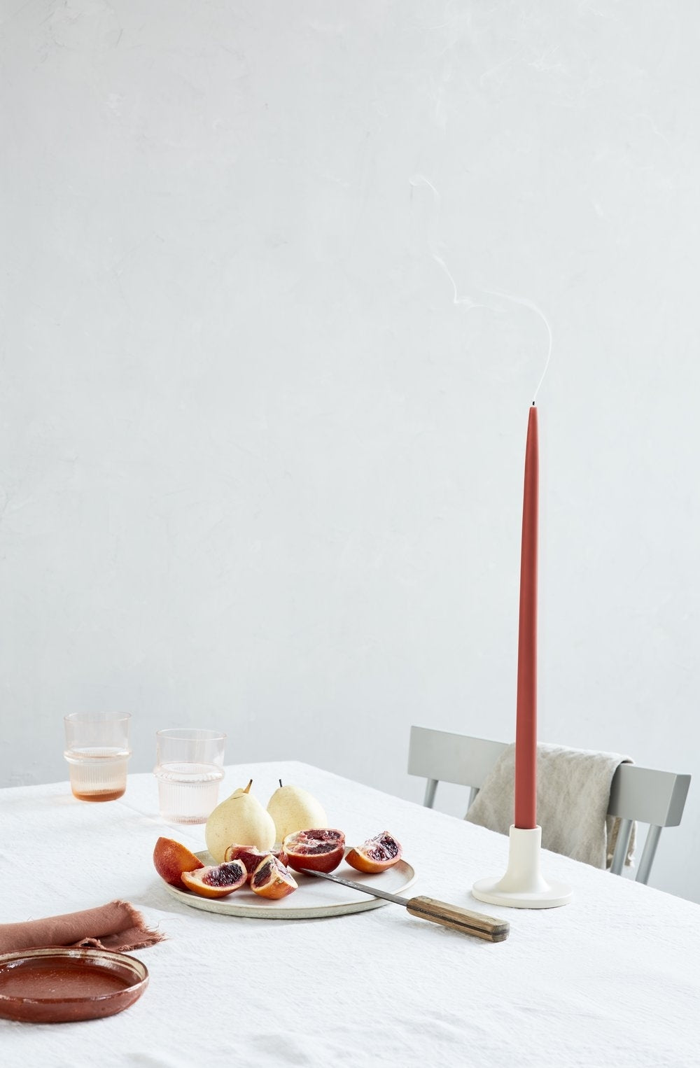 - Candles should be placed on a heat-safe surface in a well-ventilated space and extinguished with a snuffer.